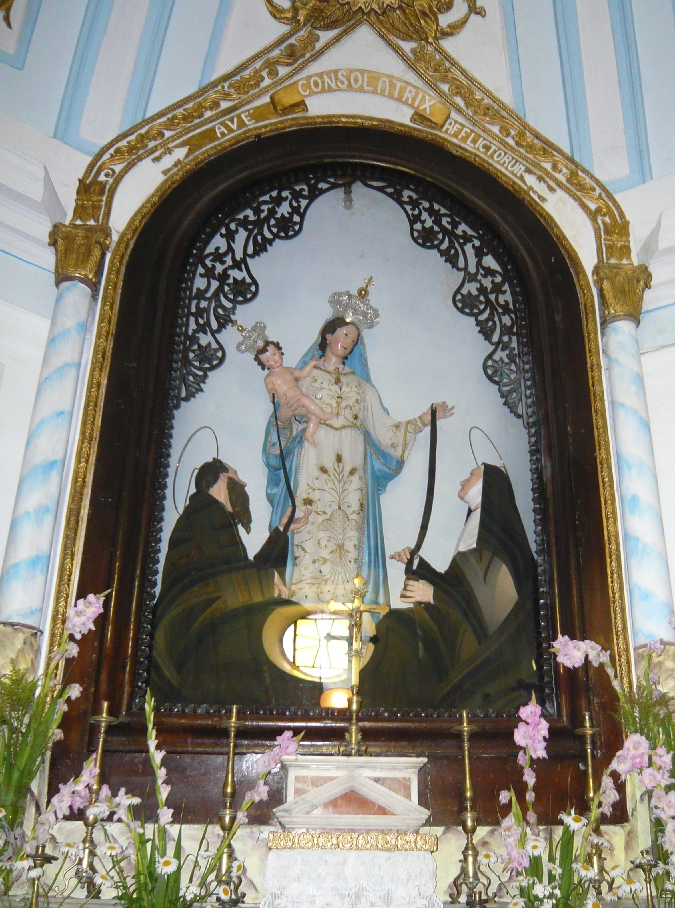 The Church has an unusual facade lining and a single nave interior decorated according to Baroque mannerism. Inside there are several statues including the imposing statuary group of Our Lady of Consolation with the Child Jesus in her arms and at the feet of Saint Augustine and Saint Monica.