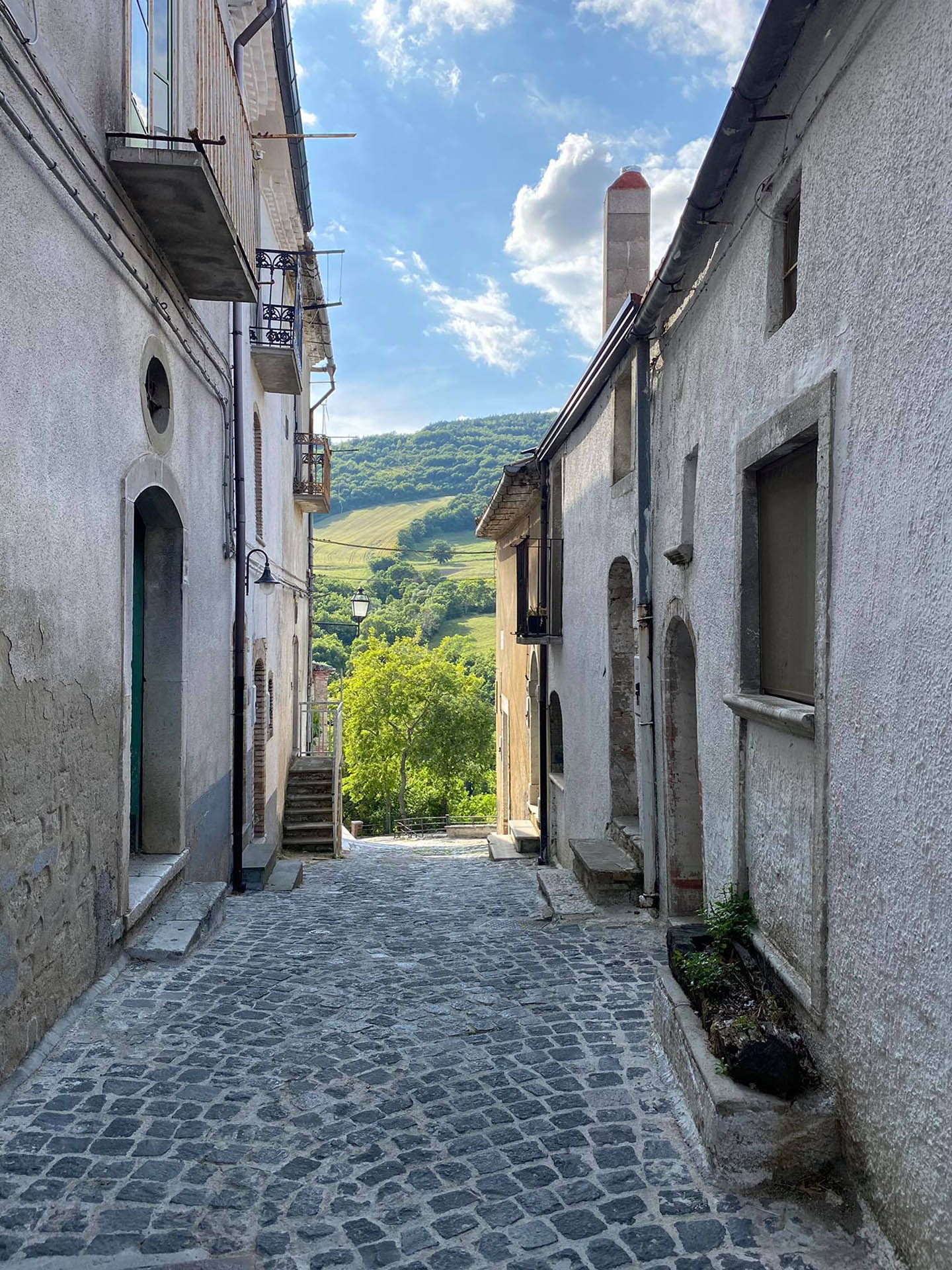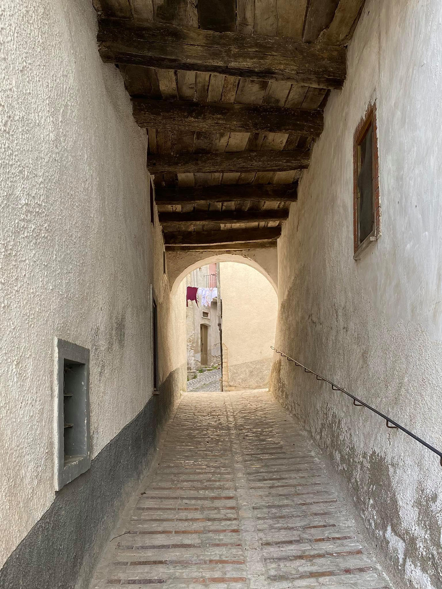 Il centro storico è caratterizzato da un intreccio di strascionele, vicoletti con pavimentazione in ciottoli di fiume e mattoni, dal bianco candore delle casette, dalle tante fontane ed archi storici, oltre i quali inaspettati belvederi regalano sognanti atmosfere, create dalla rigogliosa natura circostante, costellata di freschi torrenti e fitti boschi di querceti.