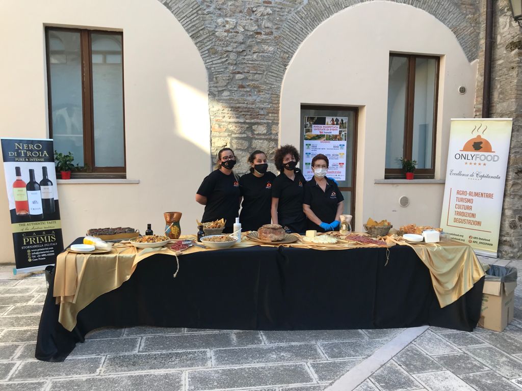 Al termine della visita, all’interno del chiostro quattrocentesco, ti aspetterà un ricco percorso a tema con prodotti enogastronomici a Km0, a cura dall’A.P.S. Only Food, e una macchina del tempo, sì perché ti troverai di fronte a guerrieri e cittadini dell’antica Daunia grazie all’associazione Ausculum in Apulia, gruppo di esperti rievocatori storici, che ti mostrerà reperti antichi