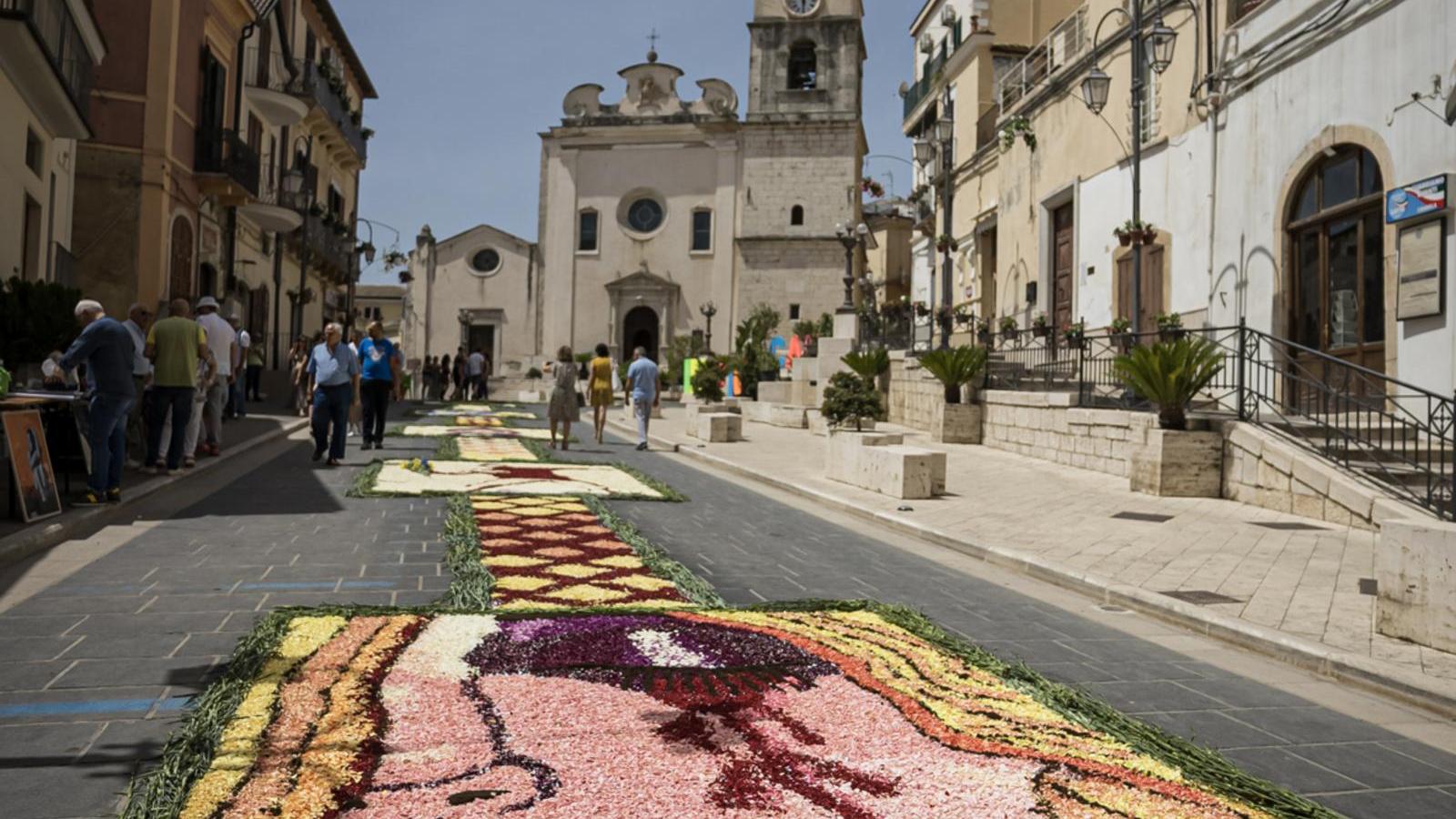 La suggestiva tradizione dell’infiorata, in Italia, risale al 1600 ed è legata alla festa cristiana del Corpus Domini in occasione della quale vengono realizzati tappeti utilizzando petali di fiori a comporre immagini per lo più sacre e decorazioni. Nel tempo la tradizione dell’infiorata è stata in parte rivisitata diventando un evento culturale non più legato esclusivamente alla festività del Corpus Domini.