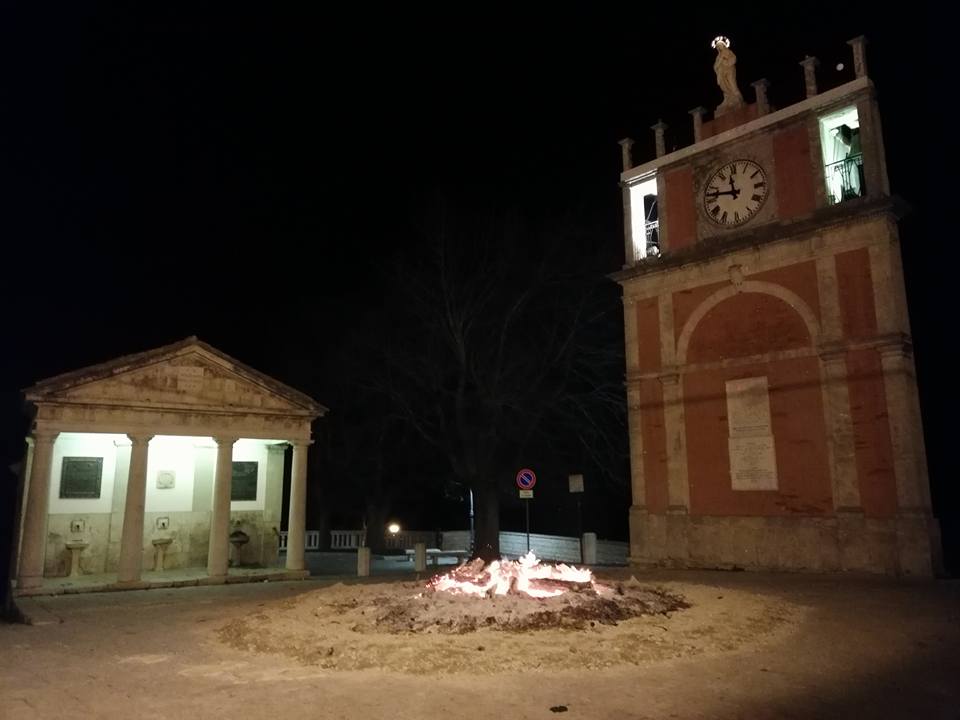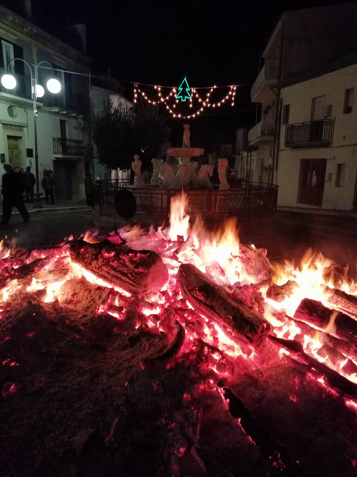 Quindi in ogni rione e frazione, si accendono i falò costituiti da grandi strutture in legno che vengono poi giudicati dalla commissione che ne premia il più suggestivo, quello che meglio rappresenta gli usi e i costumi tradizionali.