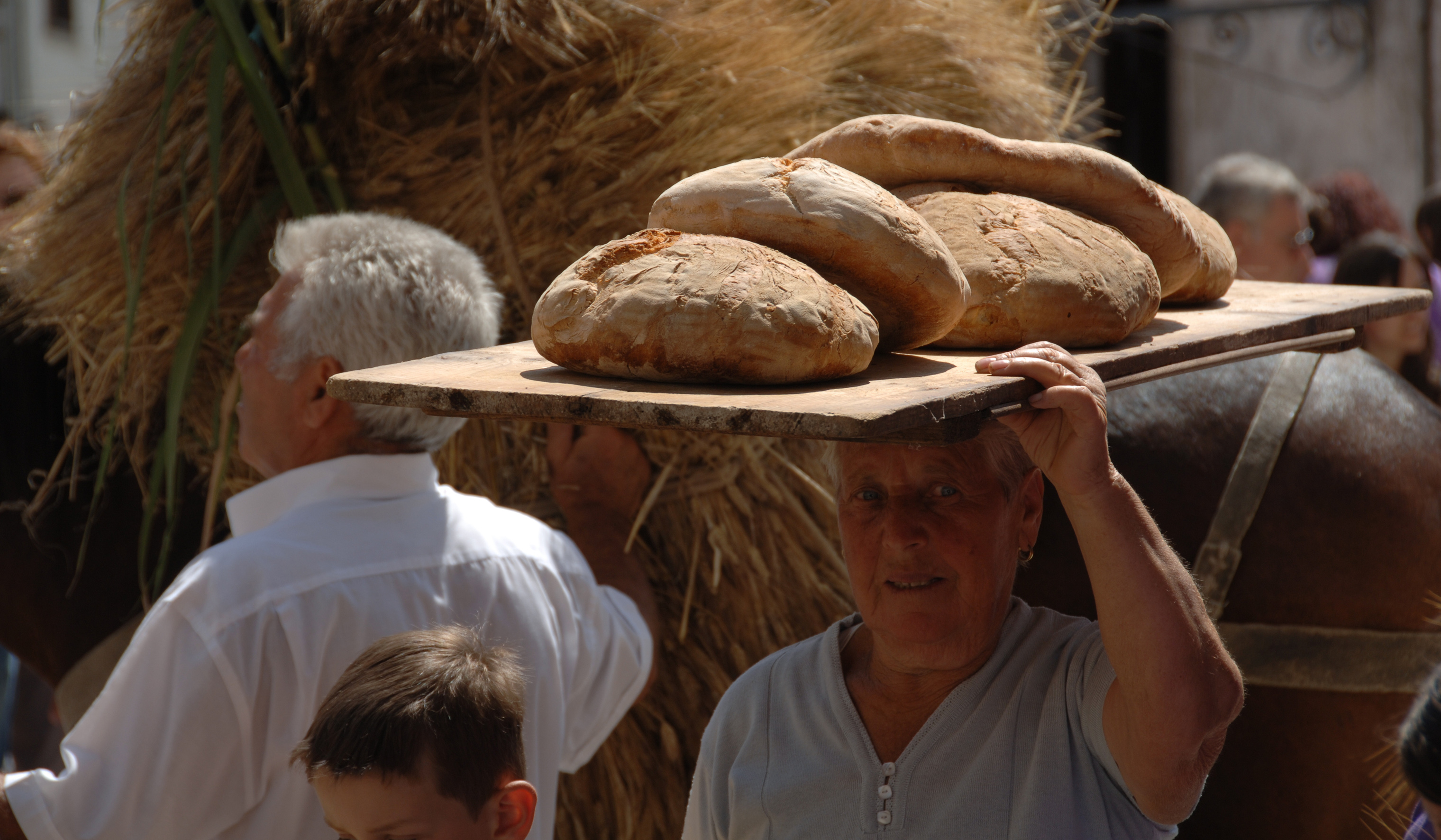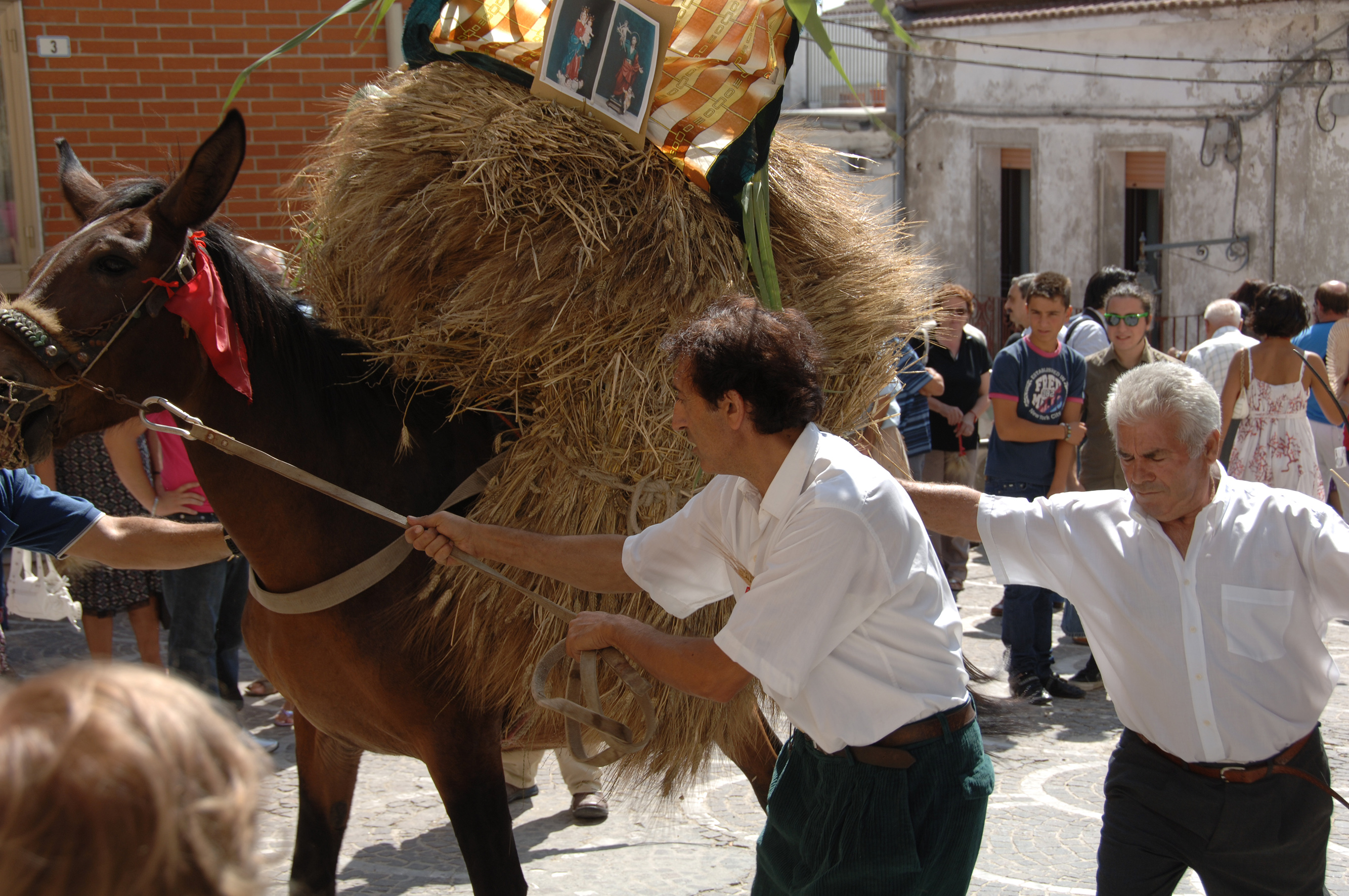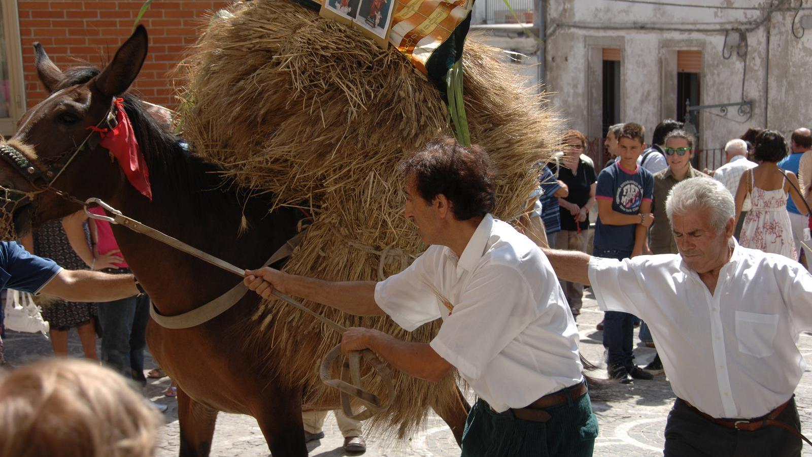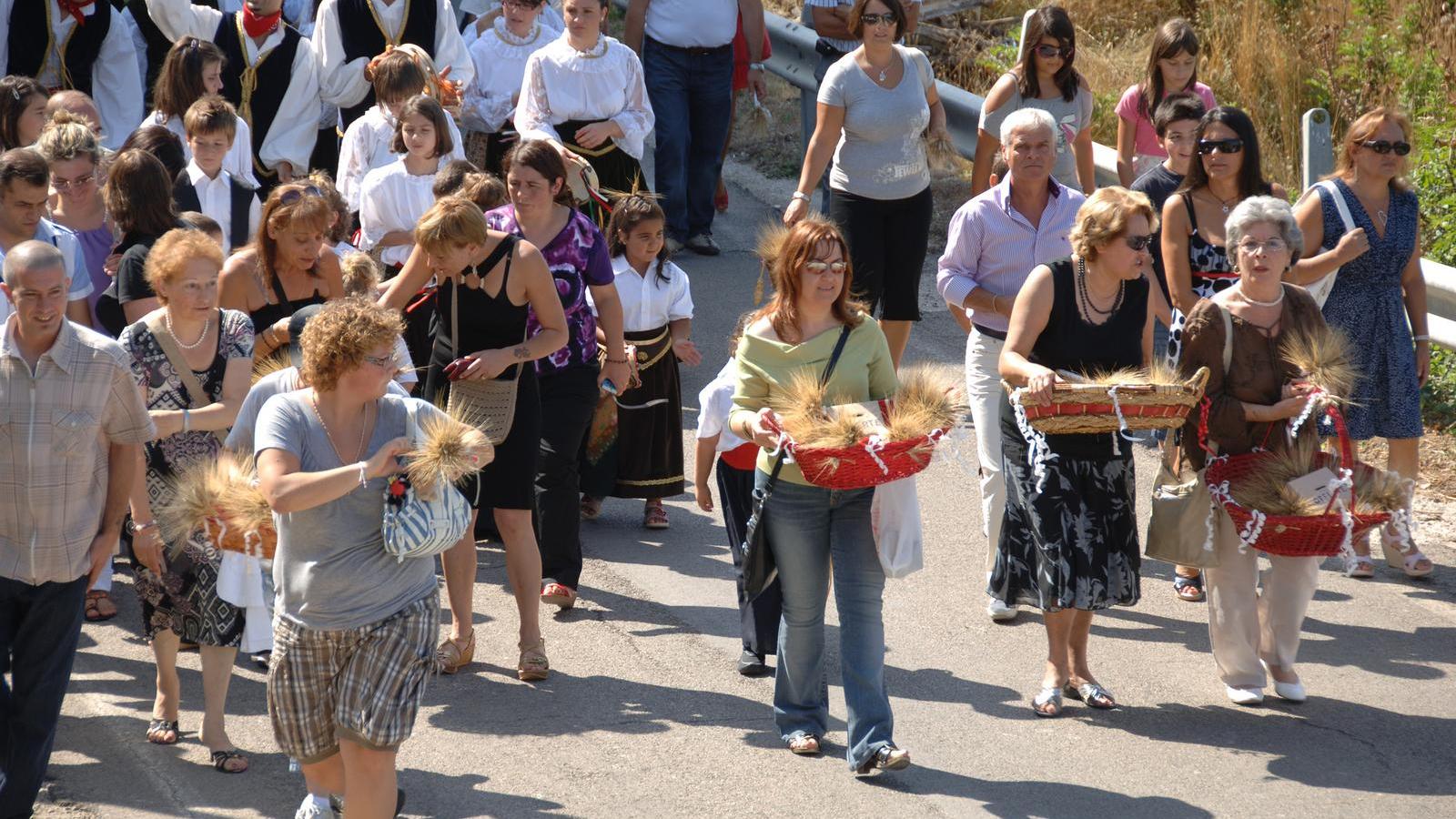 Per omaggiare la Madonna del buon raccolto, vengono addobbati numerosi carri con le spighe nei modi più bizzarri e portati in processione per le vie del paese.
