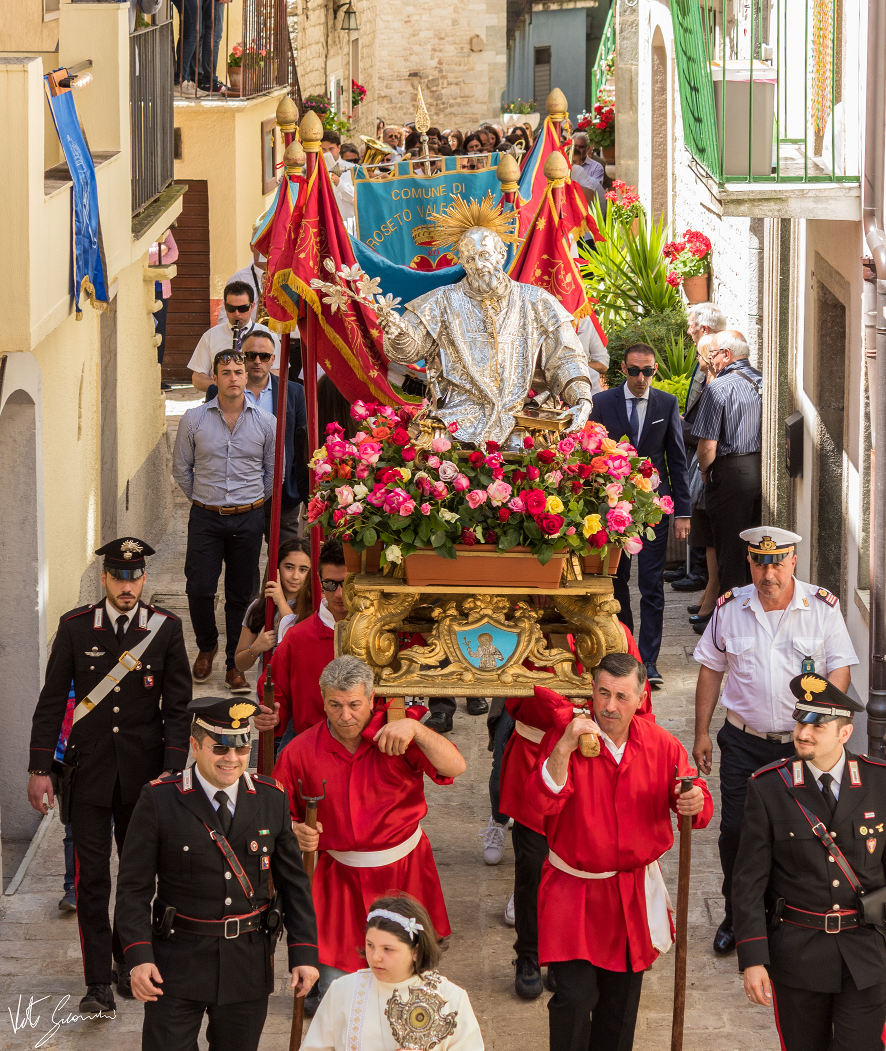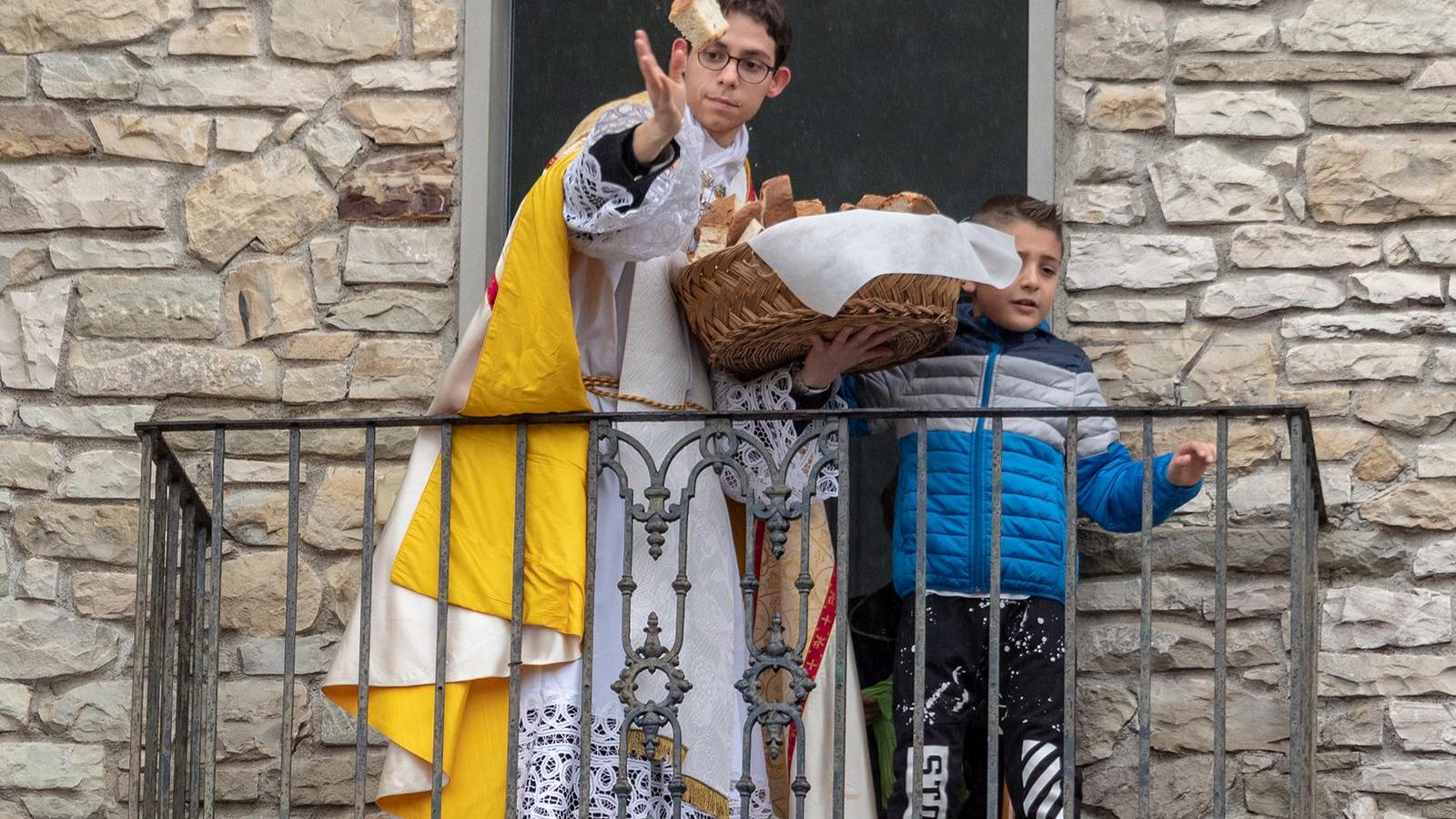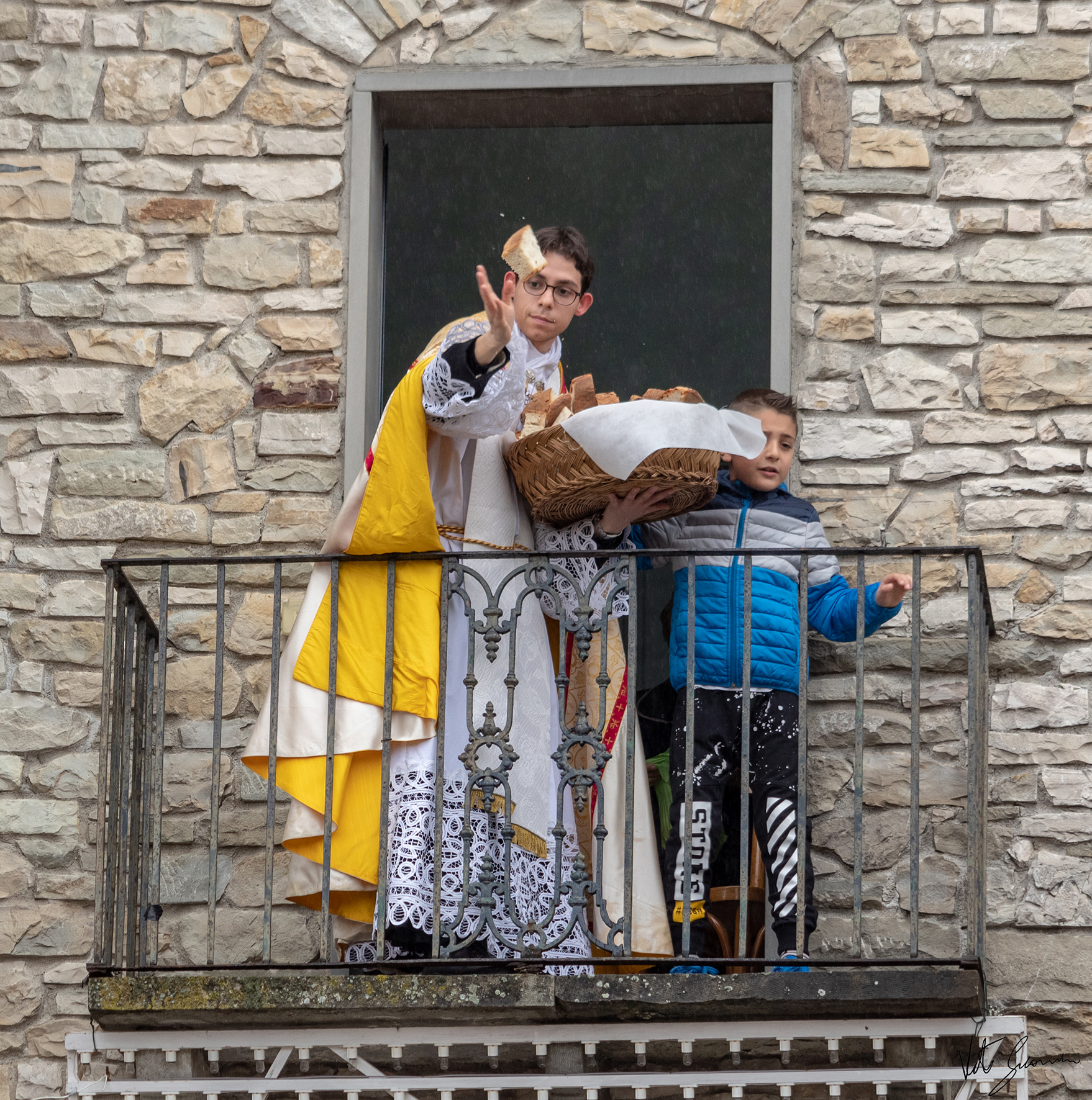 San Filippo Neri viene ricordato soprattutto per la dedizione che riservò a poveri e abbandonati, che accudiva amorevolmente; il Santo trascorreva infatti il suo tempo alla ricerca di pane ed ortaggi da donare agli affamati. Per ricordare questa sua lodevole attività, ancora oggi al termine della processione il prezioso busto in argento del Santo Patrono, le donne della congrega lanciano sulla folla, dal balcone della Chiesa di San Filippo Neri, pane, ortaggi e formaggio. Nel frattempo invece, in Piazza Castello, si predispone uno speciale "zampillo" da cui sgorga alternativamente acqua, vino e latte.
