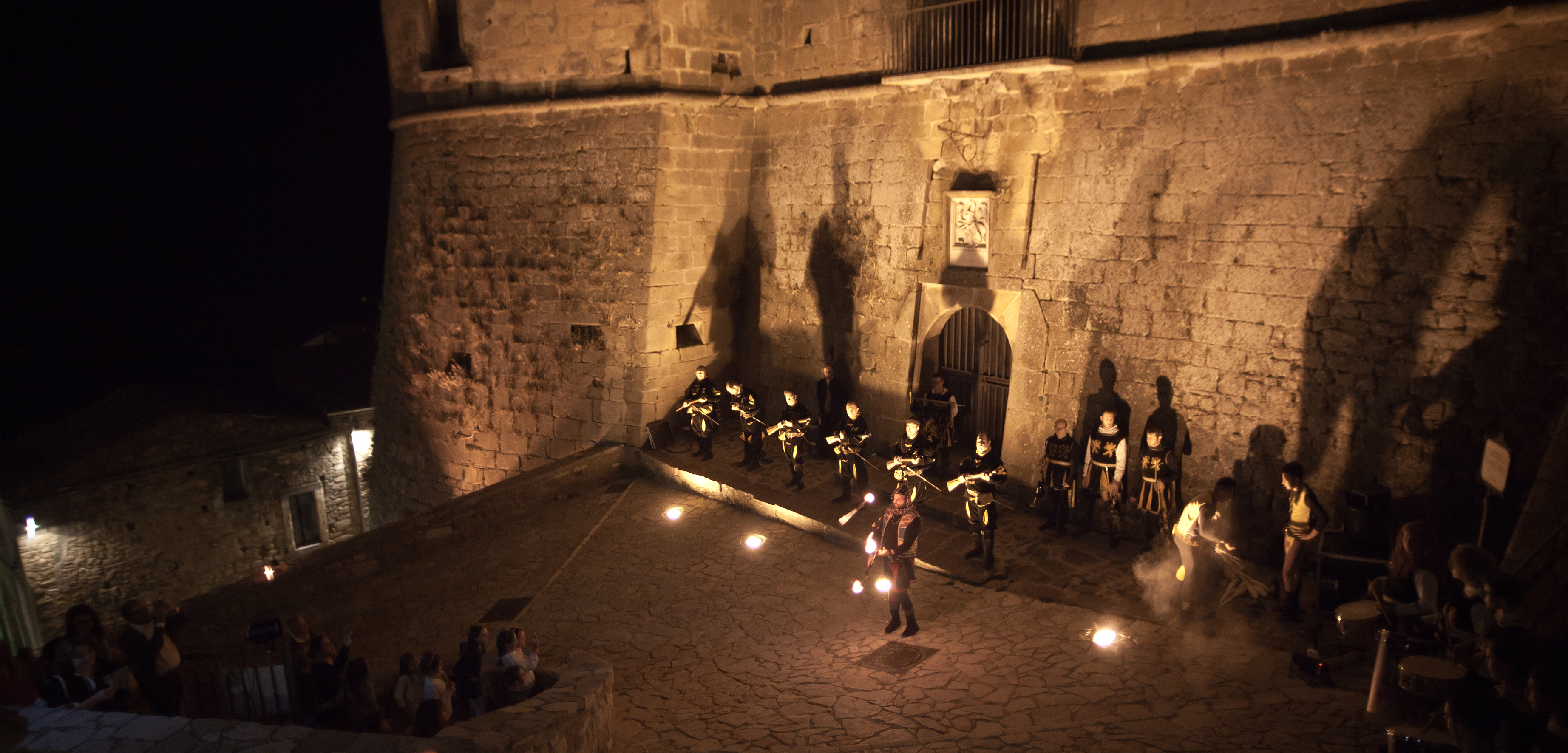 Una vera e propria macchina del tempo dove poter viaggiare indietro di 500 anni nel feudo del marchese D’Aquino, per assaporare i profumi e le pietanze dell’epoca e poter vivere i suggestivi spettacoli che allietavano la corte.