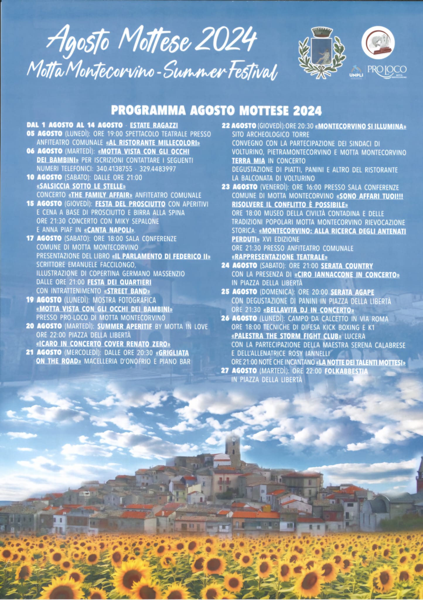 Anche quest'estate è ricca di eventi a Motta Montecorvino! Non mancare