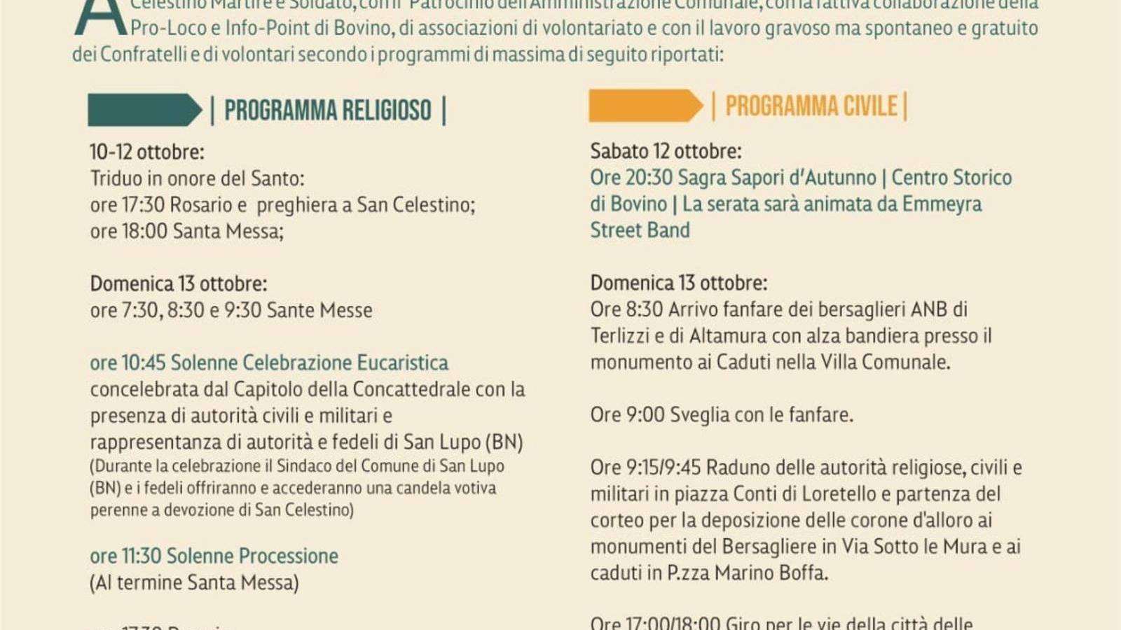 Il 13 ottobre 2024 si svolge la Festività di San Celestino Soldato e Martire.