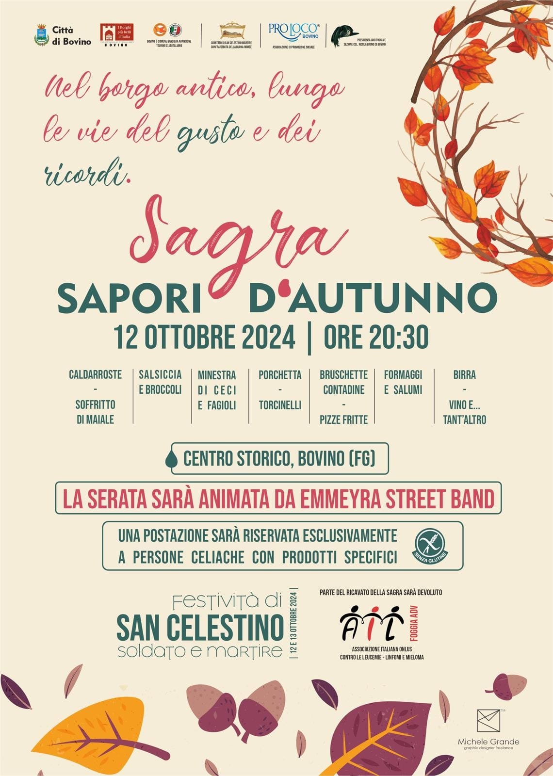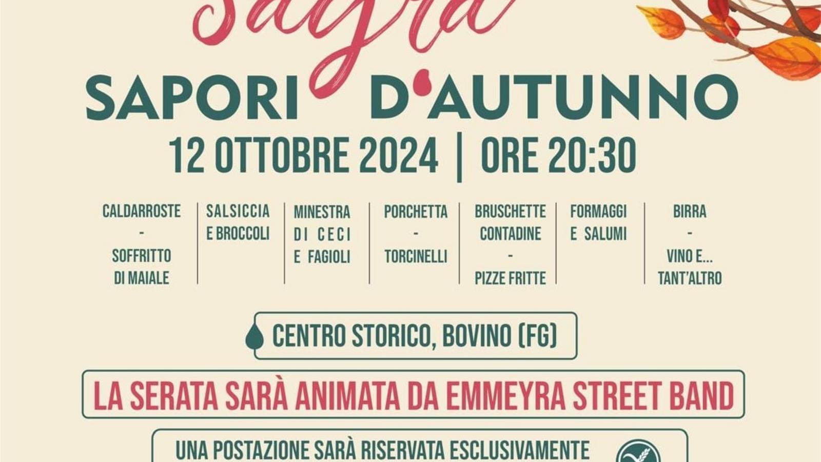 Il 12 ottobre 2024 vi aspettiamo a Bovino con la tradizionale Sagra dei Sapori d'Autunno.