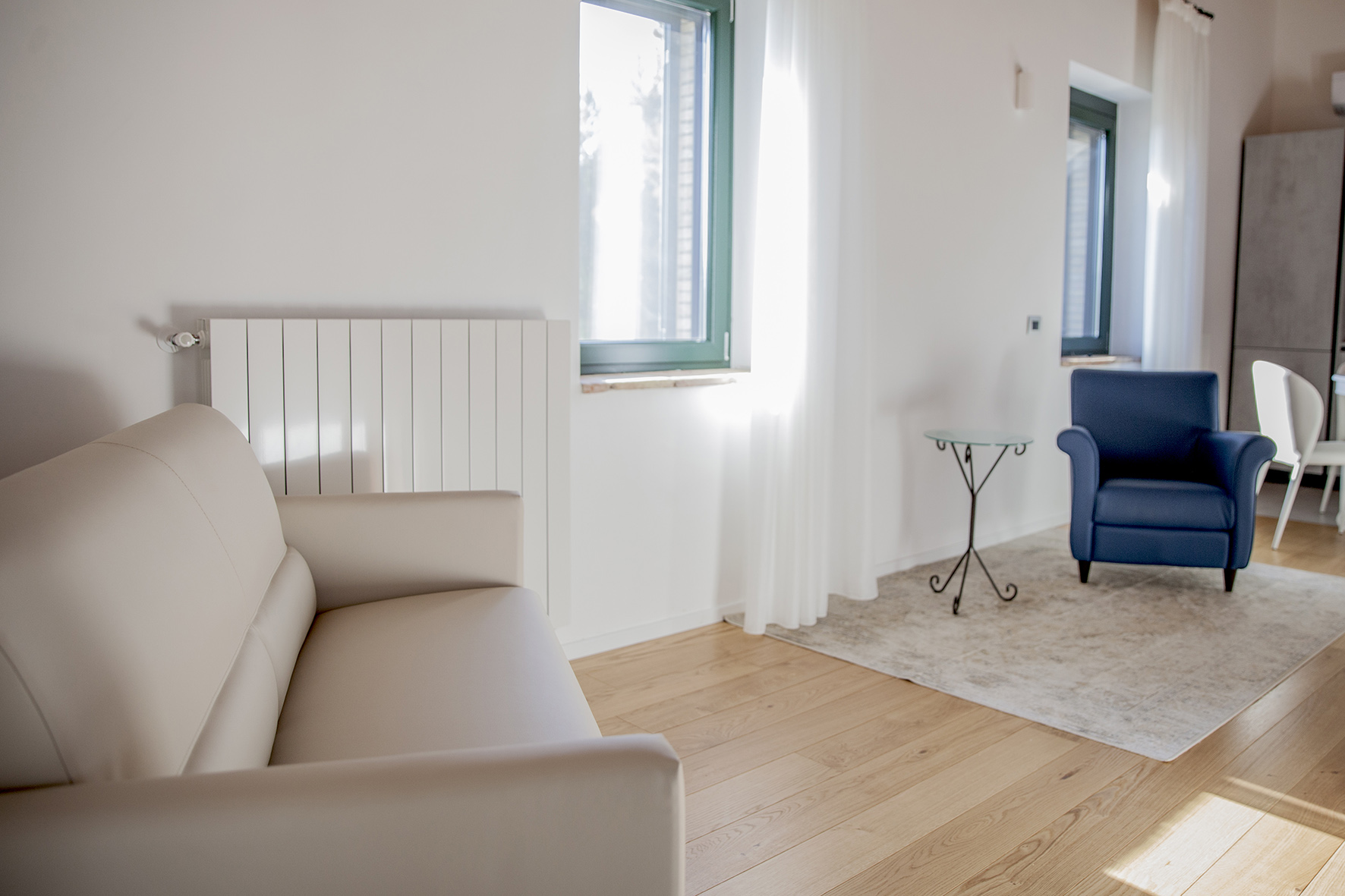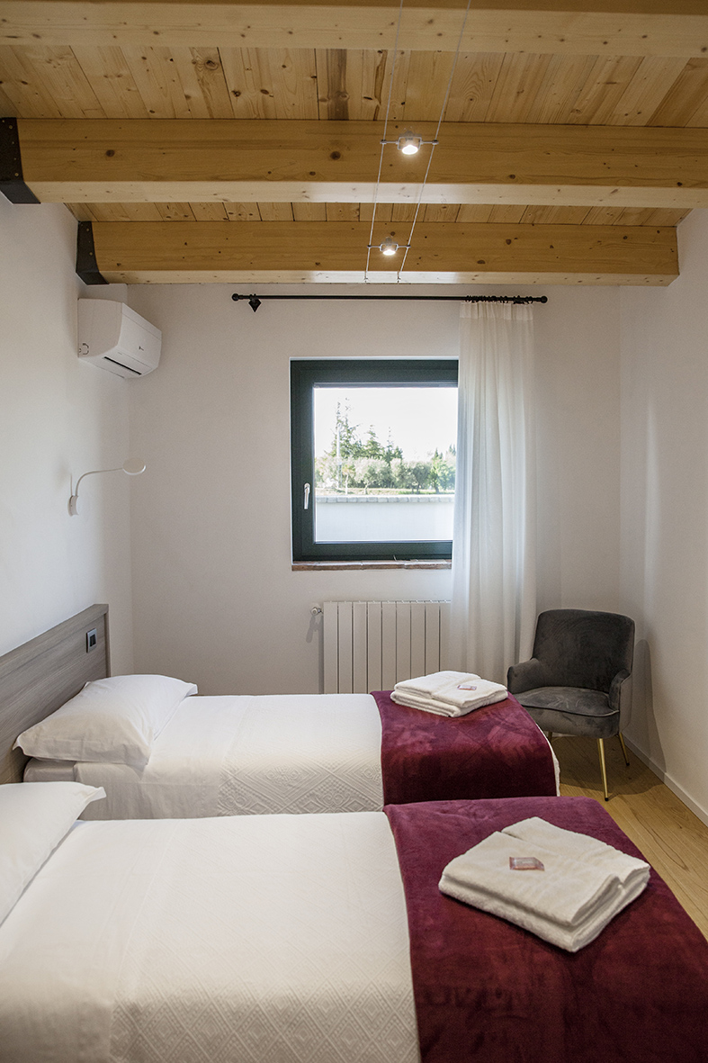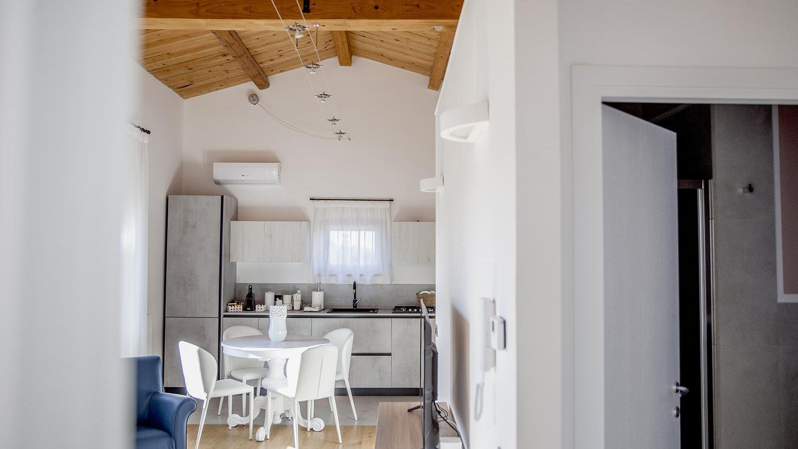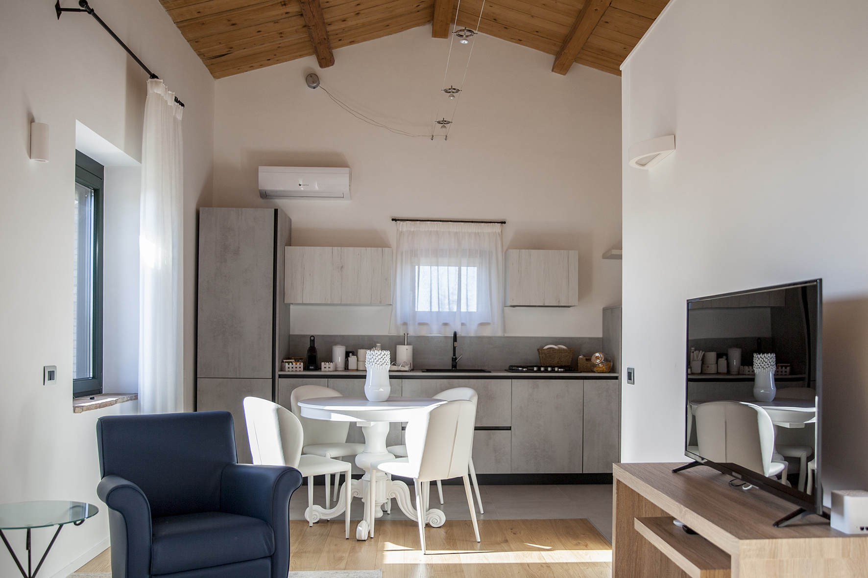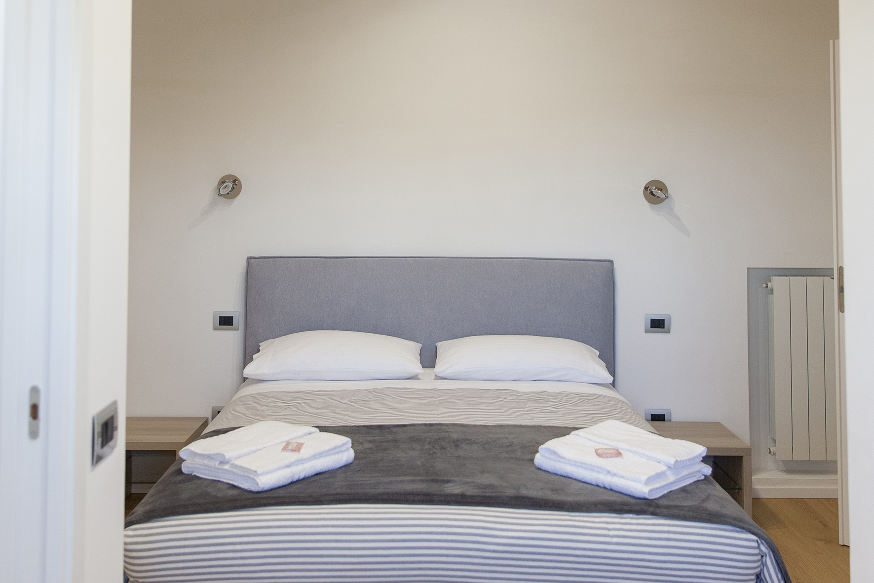 2° blocco: una camera matrimoniale e una camera doppia con i rispettivi bagni, un ampio soggiorno (con cucina e divano letto), e una camera open space con divano letto e possibilità di aggiunta di altri 2 posti letto con bagno esclusivo ideale anche per comitive fino a 8 persone.