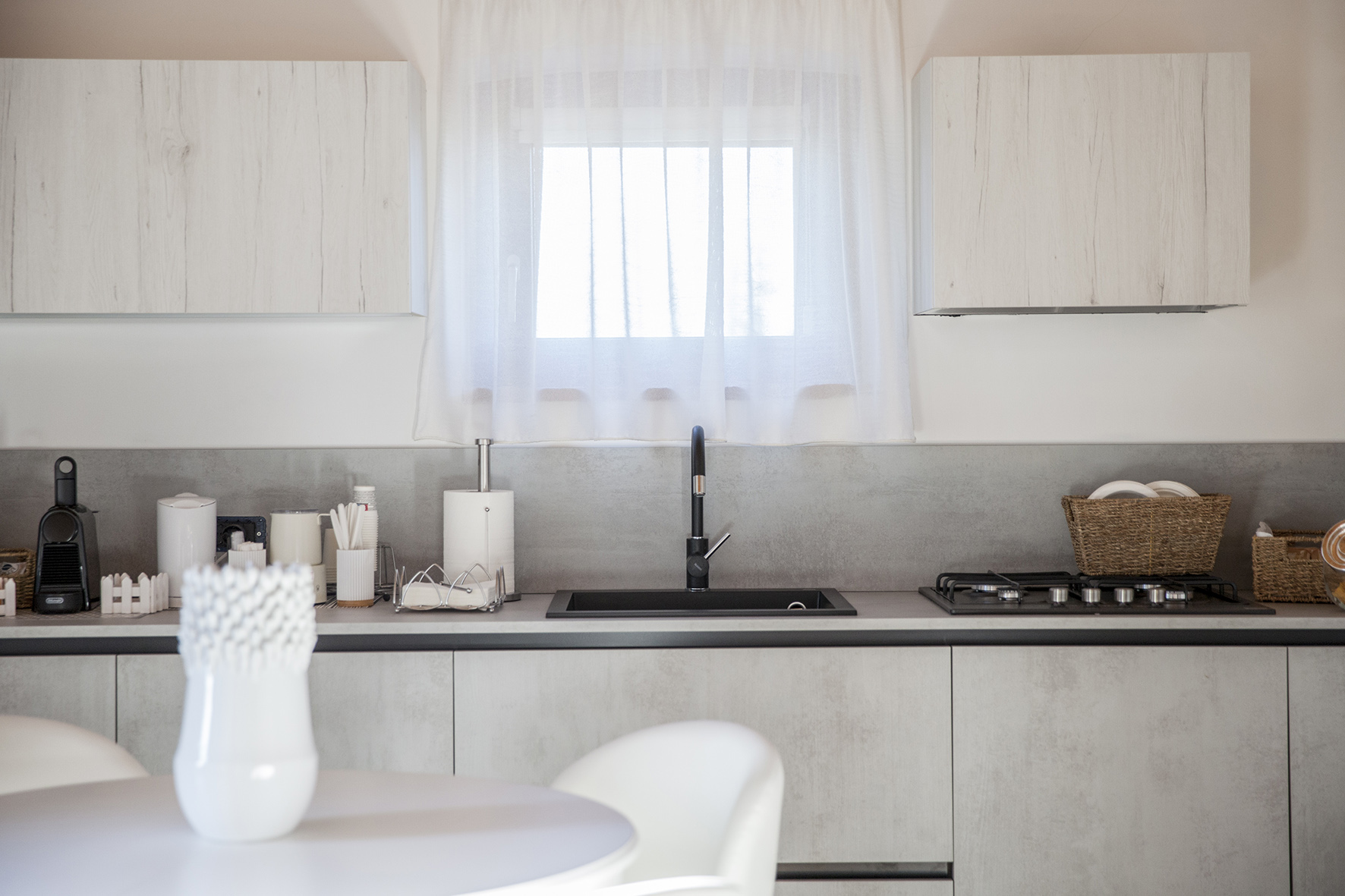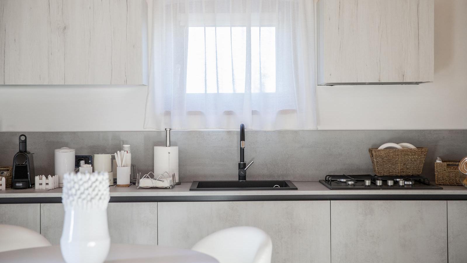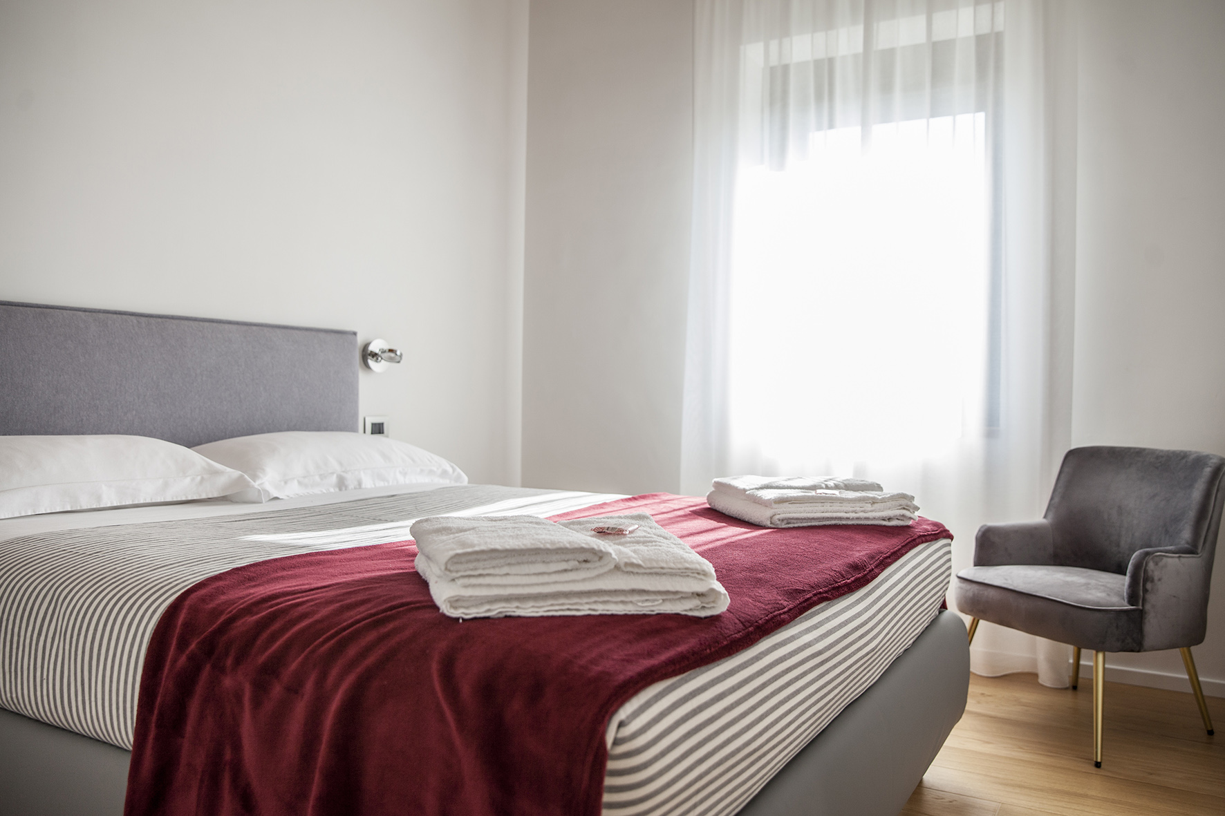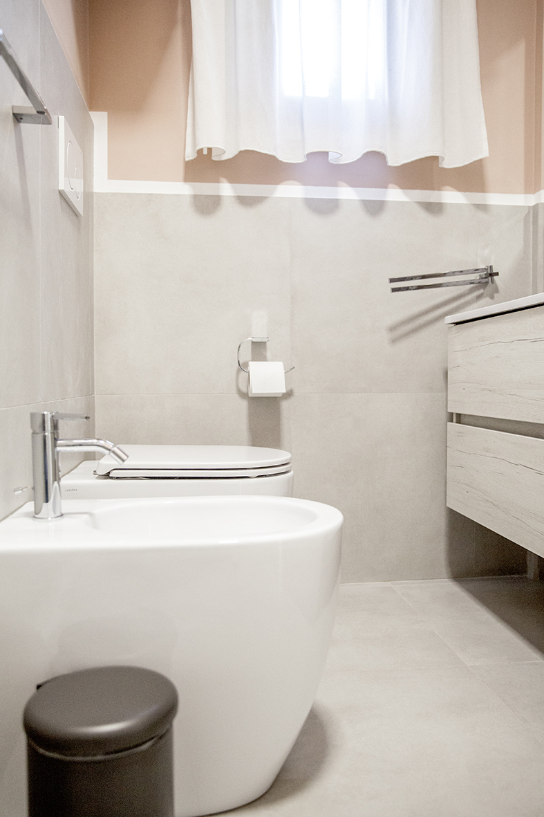 2° blocco: una camera matrimoniale e una camera doppia con i rispettivi bagni, un ampio soggiorno (con cucina e divano letto), e una camera open space con divano letto e possibilità di aggiunta di altri 2 posti letto con bagno esclusivo ideale anche per comitive fino a 8 persone.