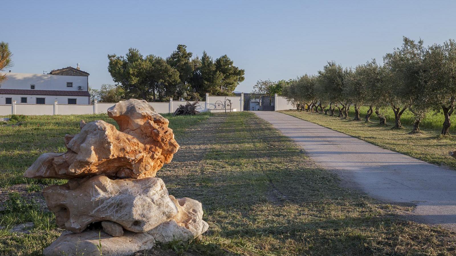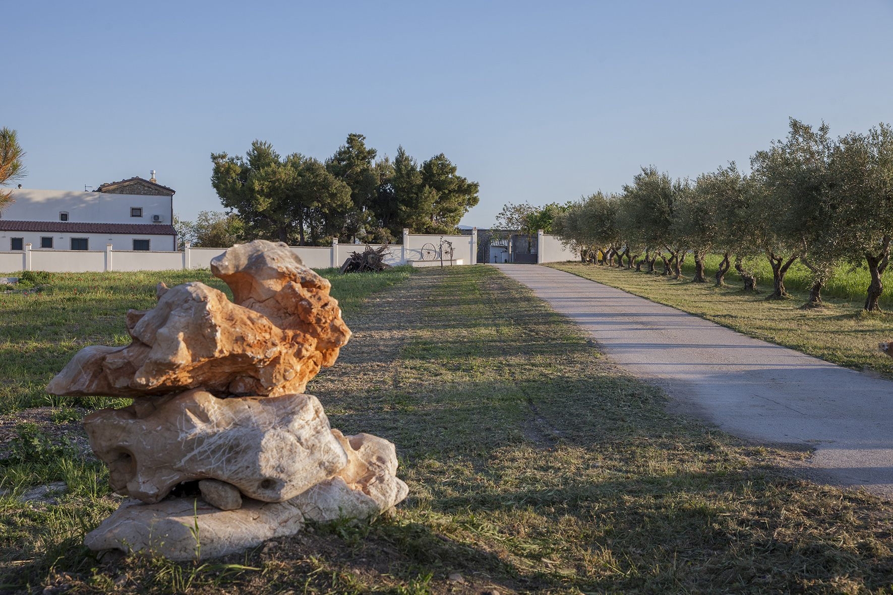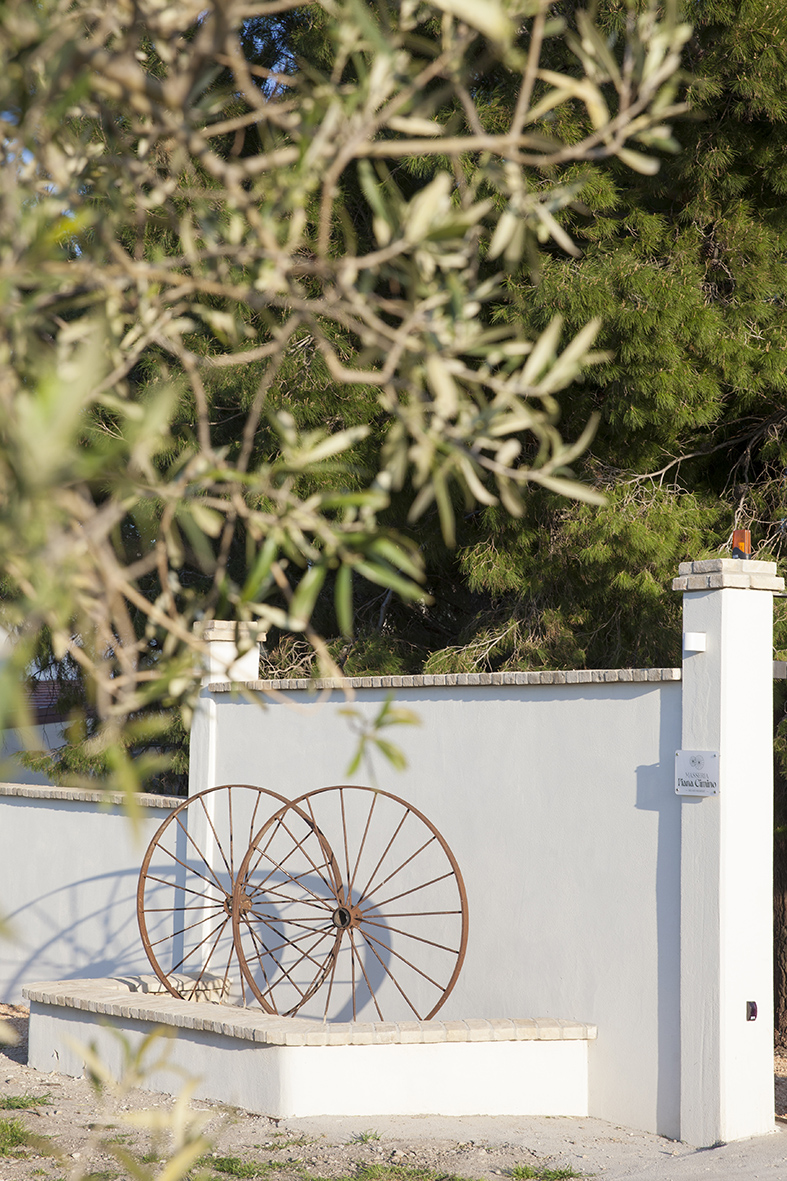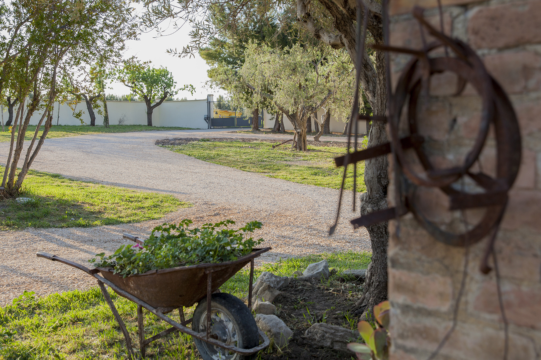 Tra gli ulivi e gli oleandri, la masseria si compone di tre piccoli blocchi indipendenti con un’unica struttura: