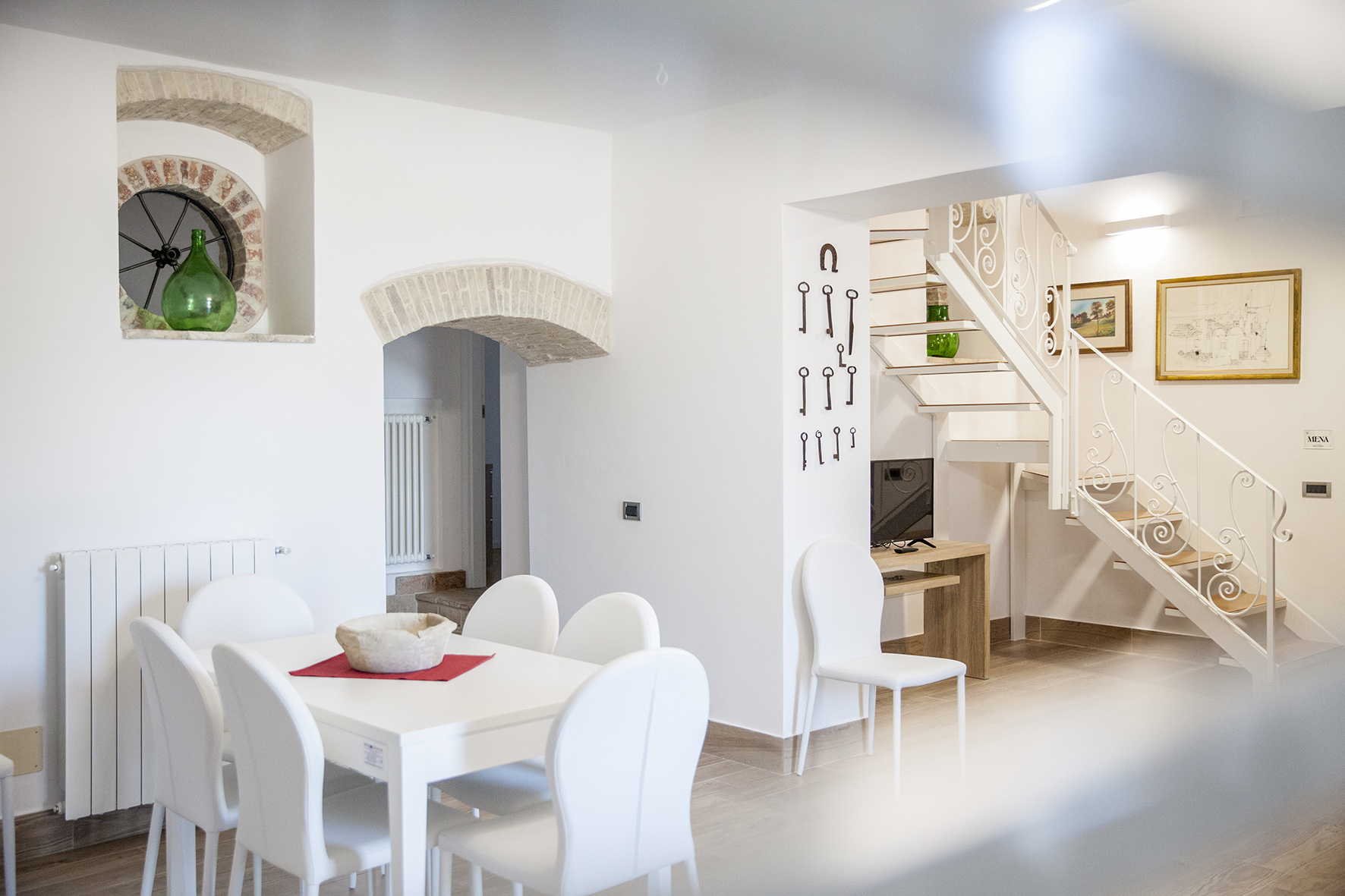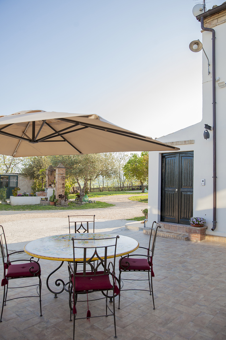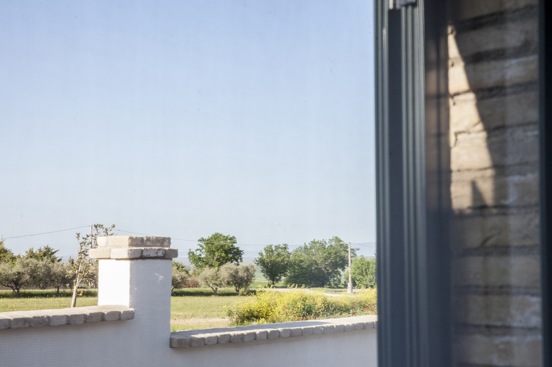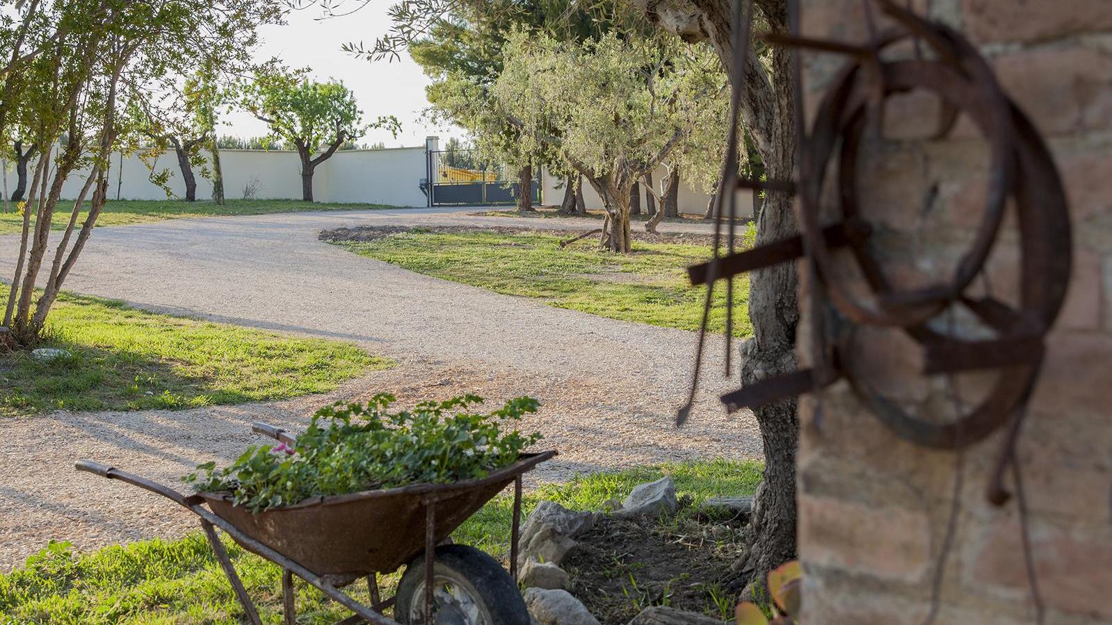 Tra gli ulivi e gli oleandri, la masseria si compone di tre piccoli blocchi indipendenti con un’unica struttura: