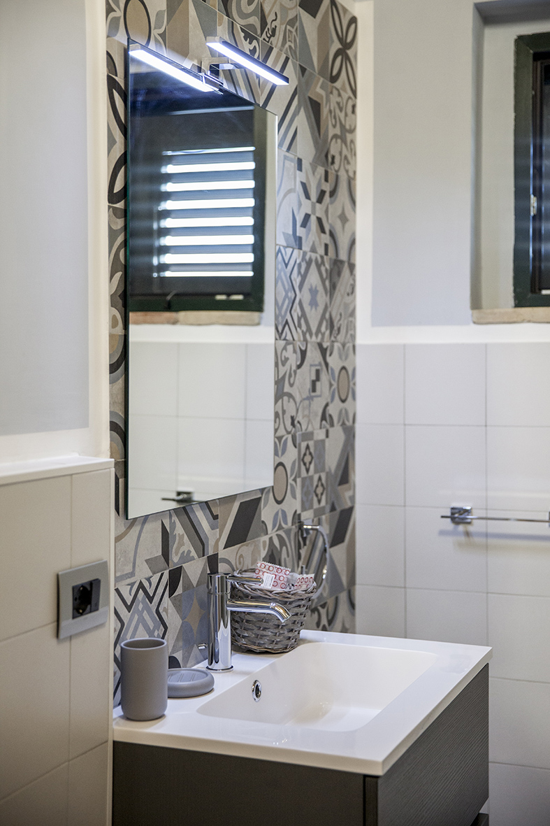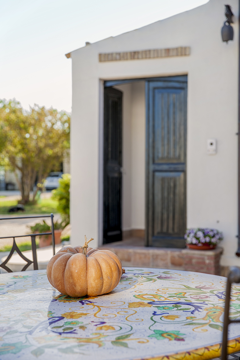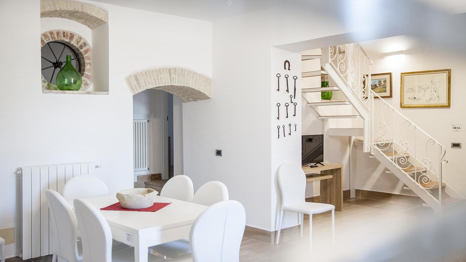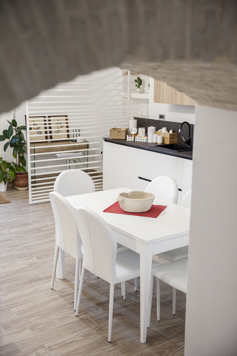 Tra gli ulivi e gli oleandri, la masseria si compone di tre piccoli blocchi indipendenti con un’unica struttura: