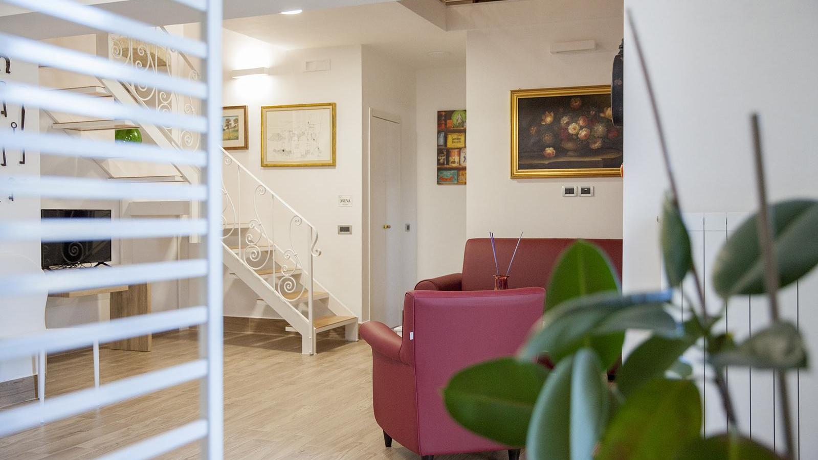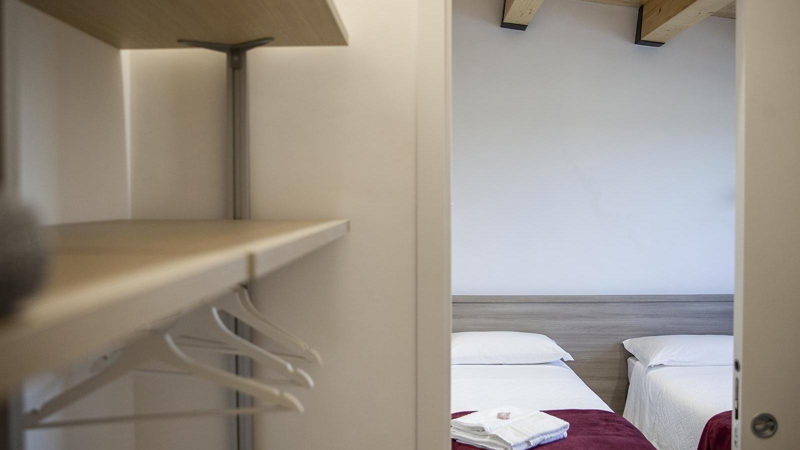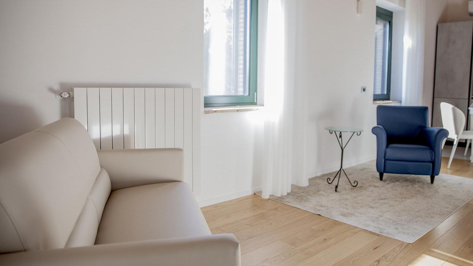3° blocco: mini appartamento al 1° Piano con una camera matrimoniale, bagno e soggiorno (con cucina e divano letto) ideale per 2-3 persone.