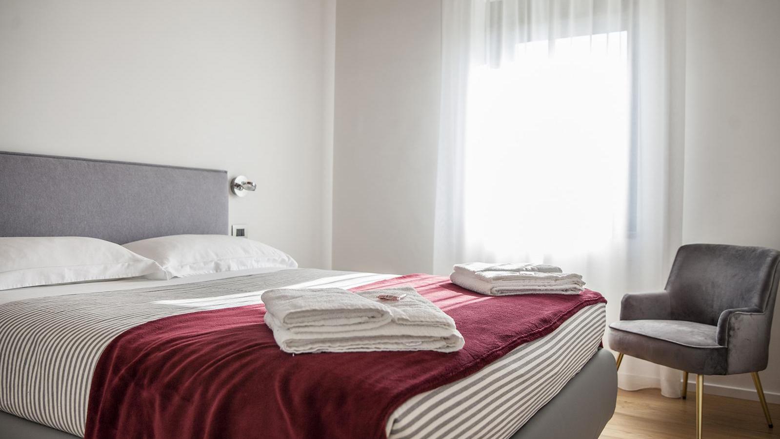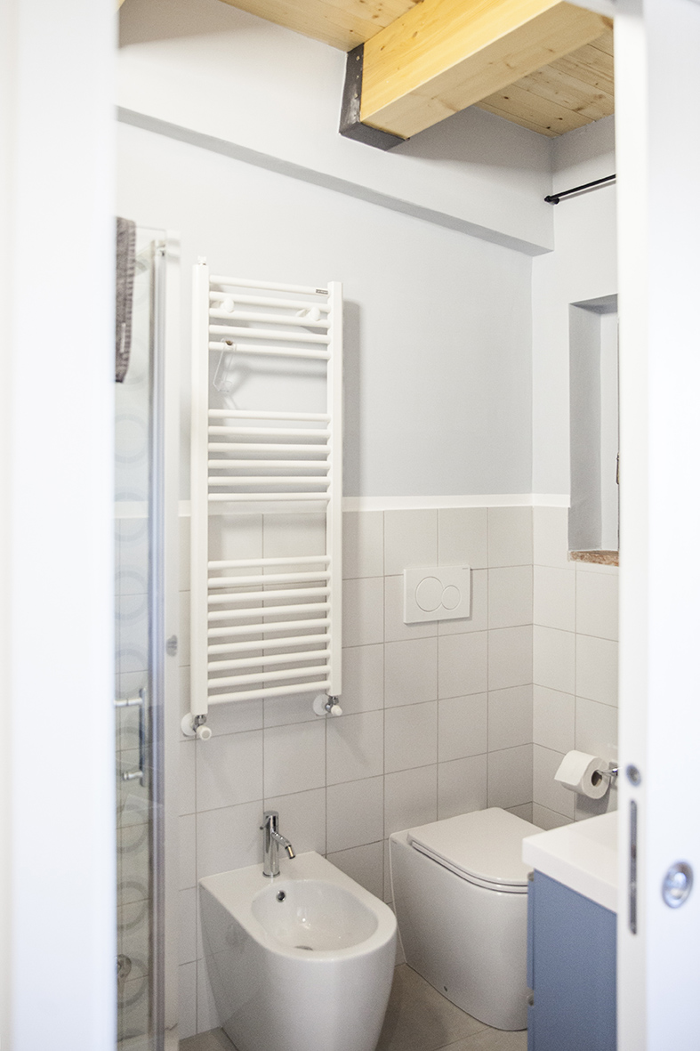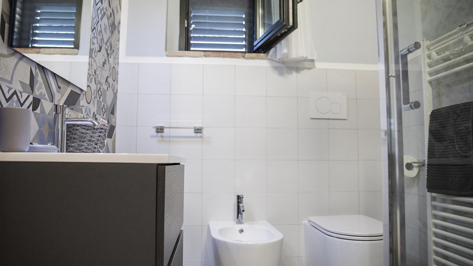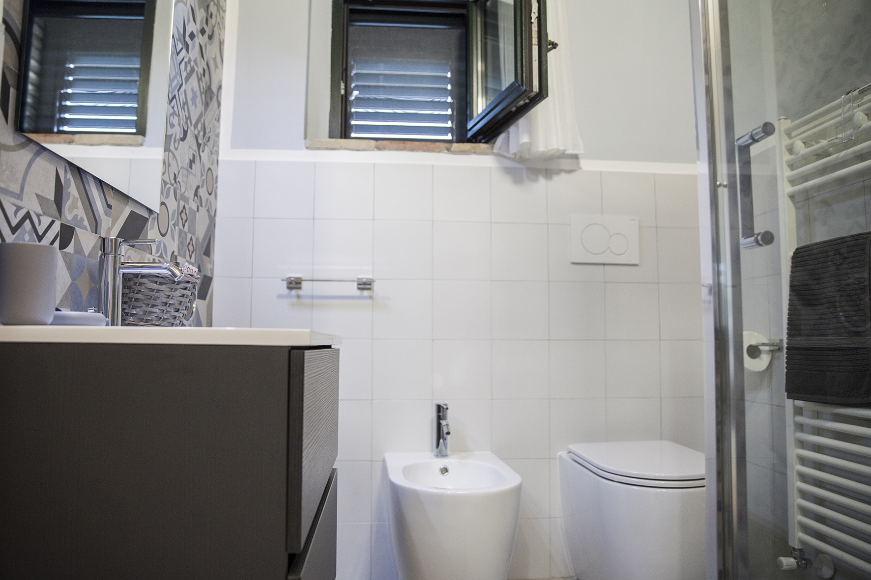 3° blocco: mini appartamento al 1° Piano con una camera matrimoniale, bagno e soggiorno (con cucina e divano letto) ideale per 2-3 persone.