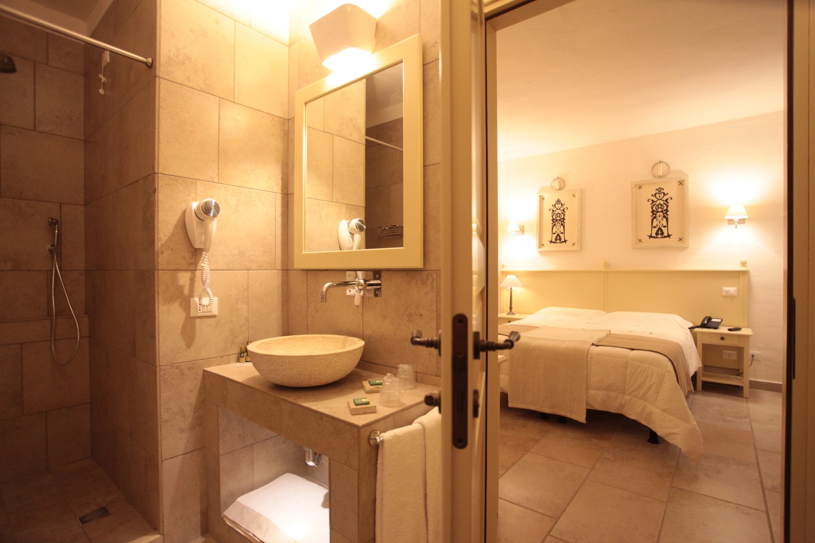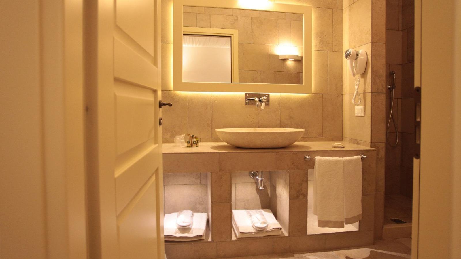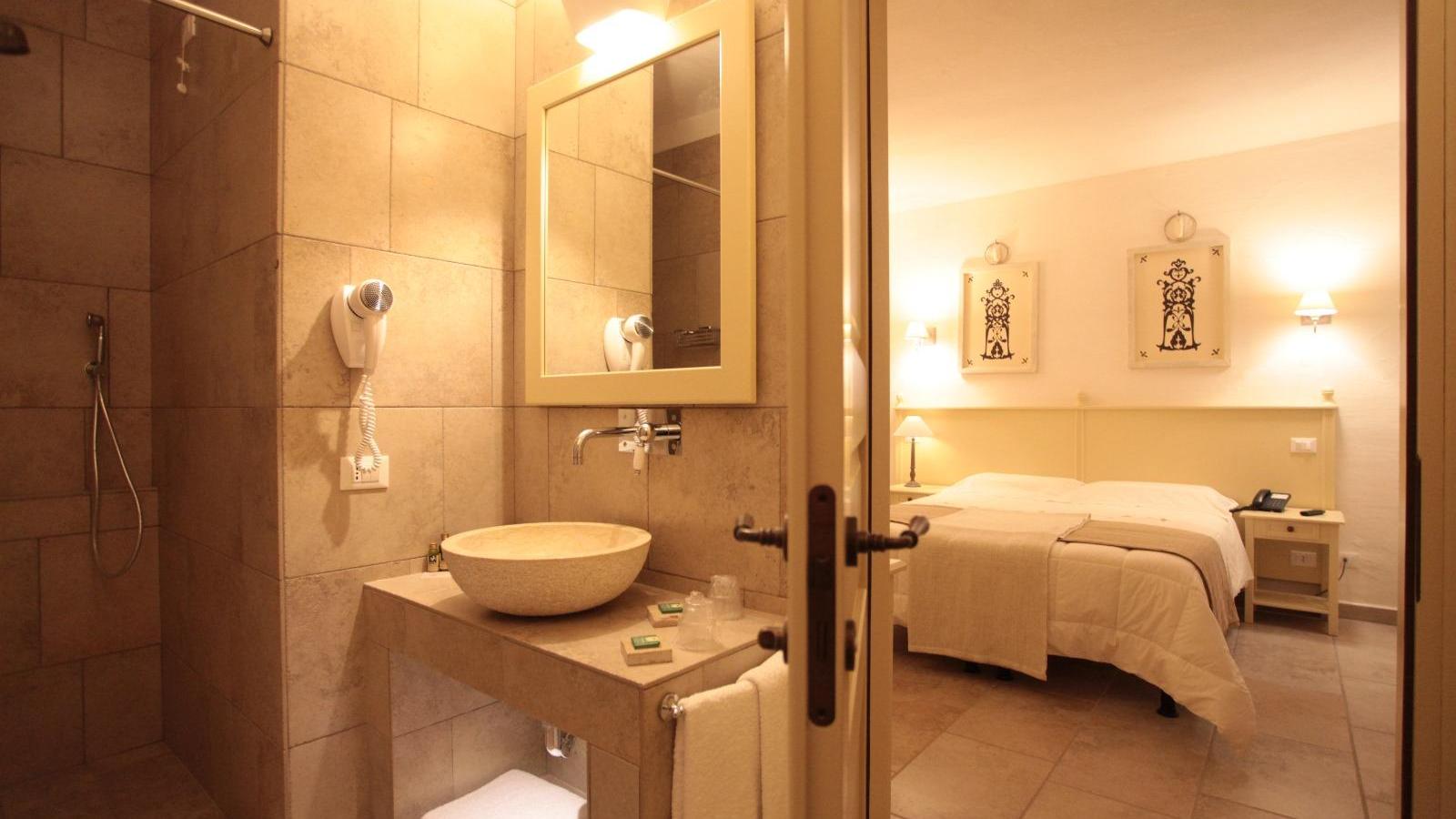 Questo affittacamere appena fuori Lucera ha camere standard dai nomi evocativi: la Finamunno fa pensare a qualcosa che sta alla “fine del mondo”; la Percettore invece azzera le distanze e ci ricorda che la contrada in cui ci troviamo si chiama così. Sono le camere cosiddette del Massaro, anche se nessun massaro ne ebbe mai sicuramente una tanto bella con vista a perdita d’occhio sui colori del Tavoliere, climatizzatore, specchi, smart tv, wifi, telefono, cassetta di sicurezza, minibar, doccia e lavabo in pietra. La Torrebianca invece è la camera signorile, quella che nelle masserie di una volta sarebbe stata riservata agli ospiti di riguardo: il letto è riparato dal baldacchino di tela arricciata; le quattro finestre si aprono su un mezzo ottagono; le nicchie ricavate nello spessore dei muri sono illuminate; il bagno sarebbe meglio chiamarlo stanza da bagno, viste le dimensioni. E infine c’è la camera padronale, la Quadrofico, che si apre su un’ampia veranda ed ha un angolo-salotto con scrittoio che sarebbe piaciuto ai viaggiatori dell’Ottocento.