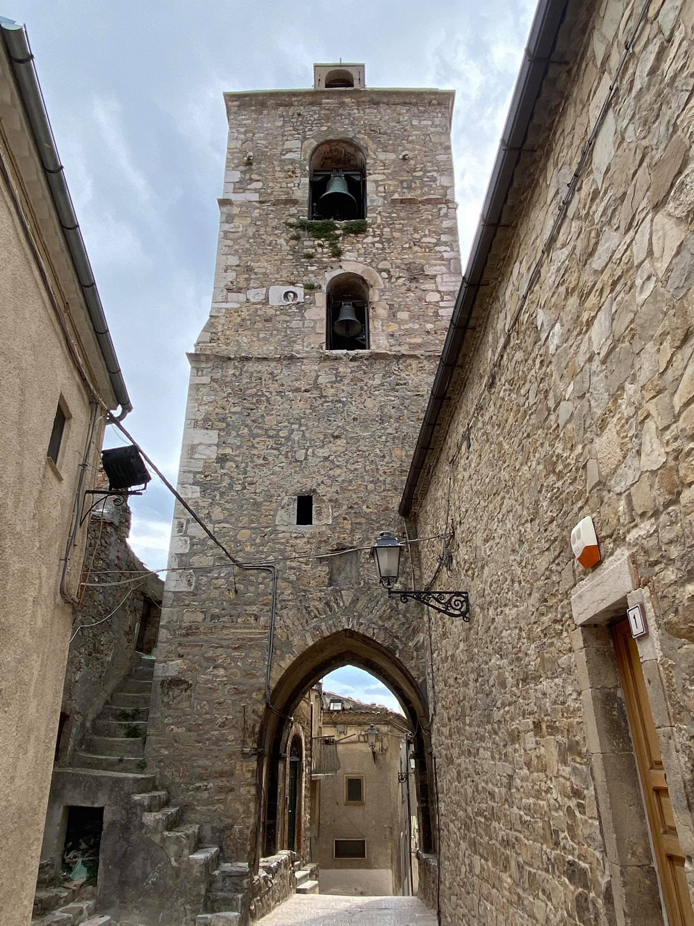 Il Campanile medievale svetta sul borgo a tal punto che lo si può individuare da molto lontano. La sua posizione e il suo dominare il territorio circostante non sono casuali: in origine infatti si trattava di una delle torri della pentagonale cinta muraria medievale.