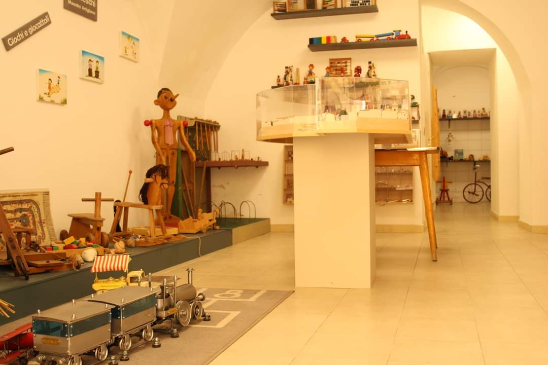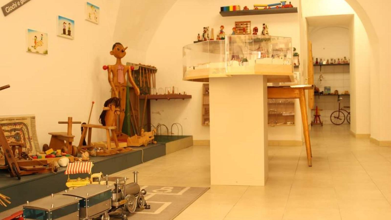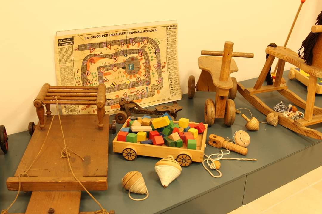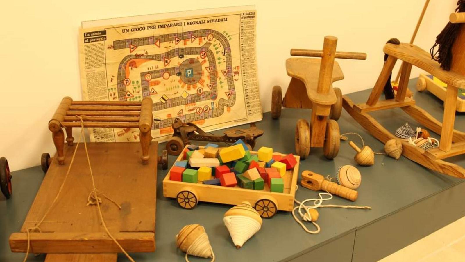 Tra il materiale esposto si trovano soldatini in piombo, trottole, biglie, bambole, aeroplanini, elicotteri, etc...