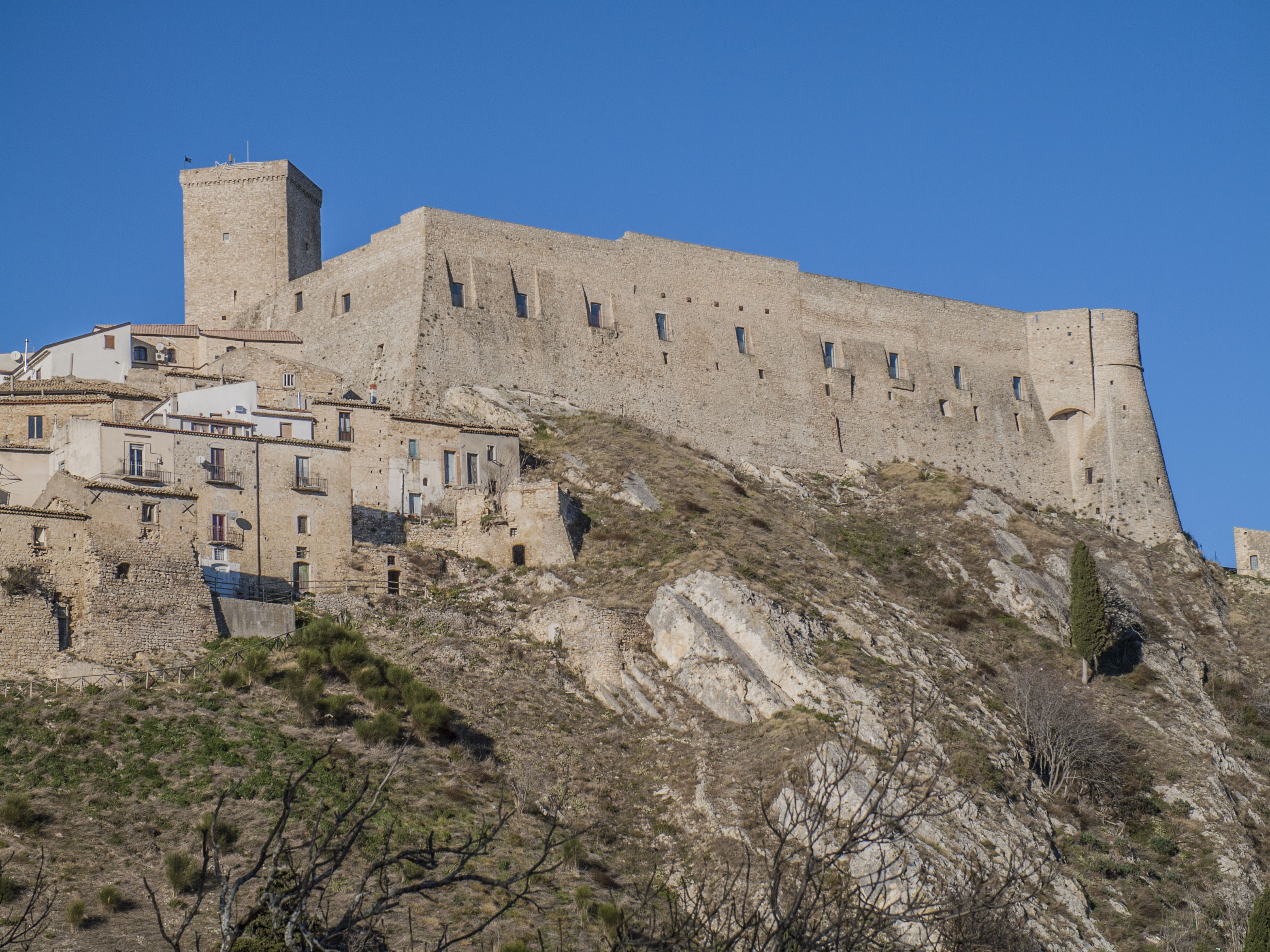 Il nucleo originario della rocca fortificata è di origine longobarda, su di essa avvenne l'edificazione del castello nel primo periodo della dominazione normanna all’inizio del XI secolo. La fortezza ha subito diverse trasformazioni ed ampliamenti nel tempo. Gli interventi più sostanziali avvennero nel corso del XIII secolo per volere di Carlo I d’Angiò, che lo fece risistemare in seguito ai danneggiamenti subiti a causa di un’incursione saracena. La ristrutturazione angioina modificò profondamente la struttura originaria del castello: la pianta da triangolare divenne trapezoidale, mediante l’aggiunta a sud-est, a lato del mastio, di un vasto corpo di fabbrica; si edificarono gli imponenti torrioni circolari.