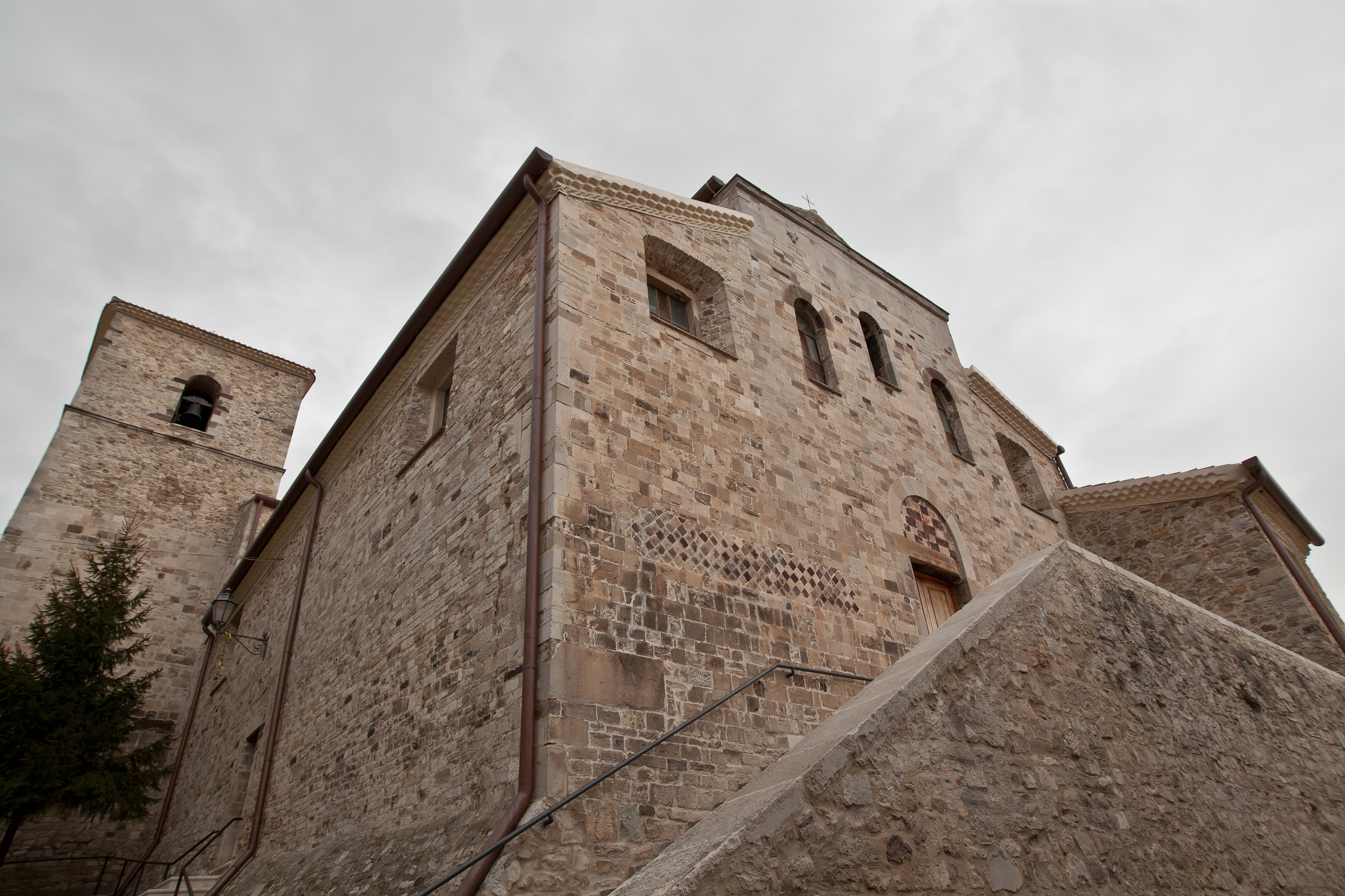 Notevolmente rimaneggiata nei secoli, la Chiesa è tornata al suo antico splendore, grazie ad un restauro che ha restituito la decorazione bicroma della facciata, sopraelevata rispetto al prospiciente piano stradale a cui si raccorda mediante scalinata. Il prospetto della chiesa è composto con pietre di differente colore, disposte in maniera alternata o a comporre geometrie, in un caso una croce.