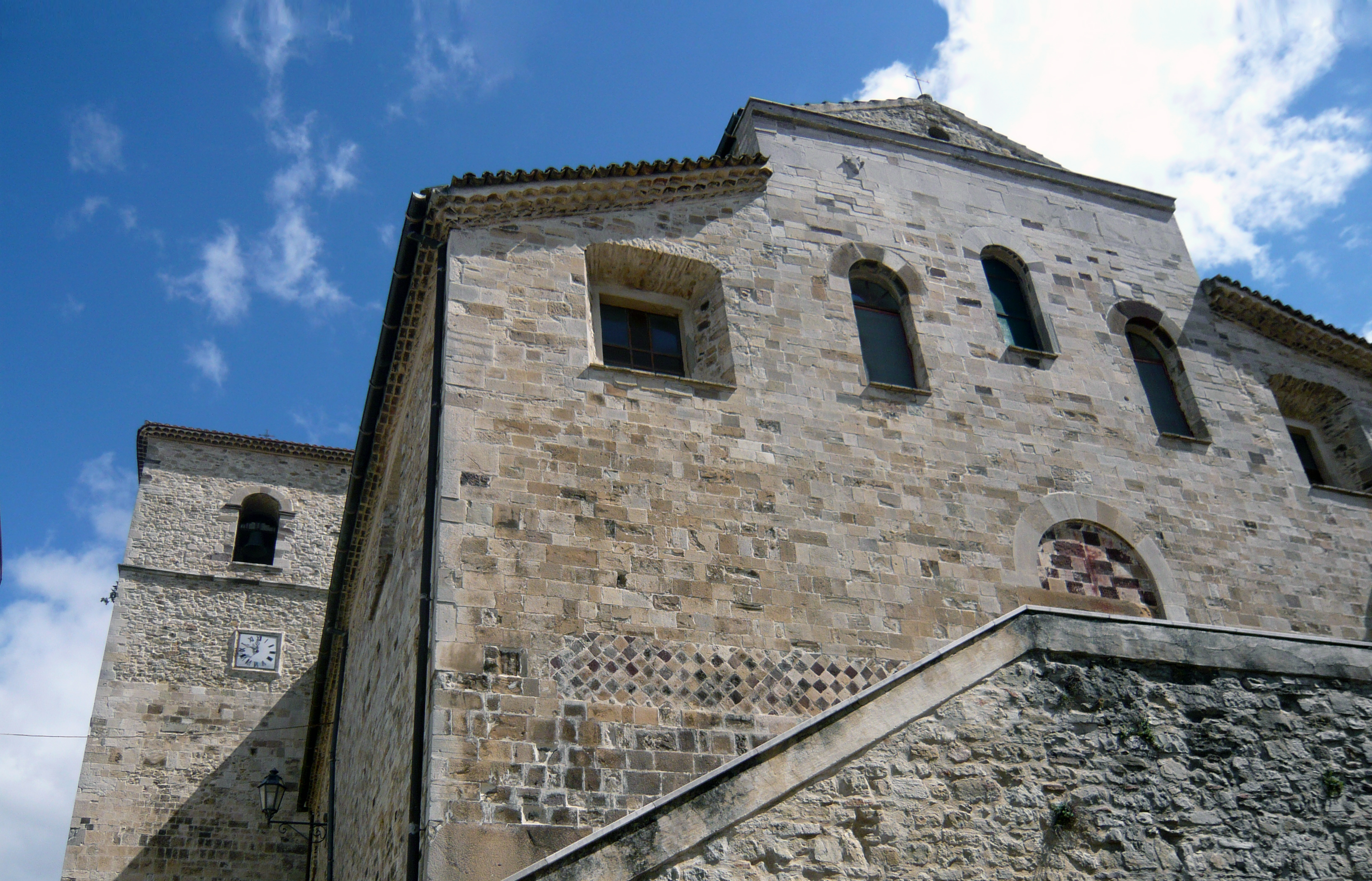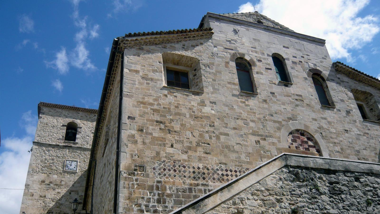 Alla sinistra del corpo principale e in posizione ritirata sorge un bel campanile a torre, che ospita tre campane bronzee attribuite all'officina di Avignone.