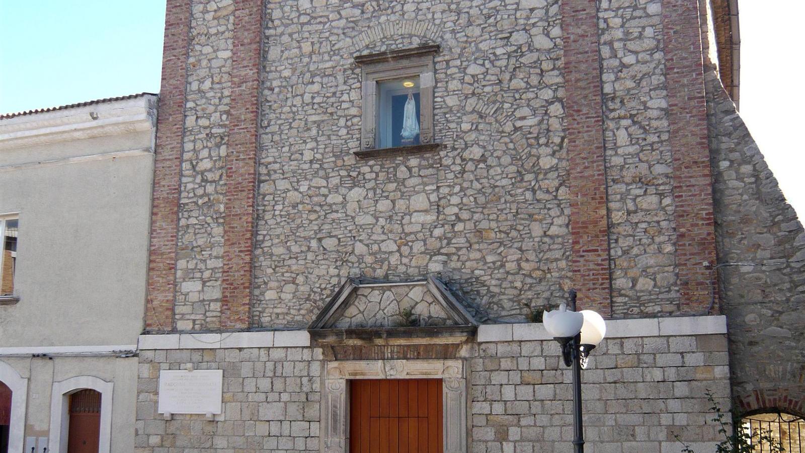 Eretta nel 1703, la Chiesa presenta una facciata barocca in pietra a vista e mattoncini che alle estremità della stessa disegnano due pseudo torre campanarie in corrispondenza dei graziosi campanili a vela. La presenza sul lato destro della chiesa, quello non addossato ad altri edifici, di possenti contrafforti, lascia immaginare che la costruzione possa essere avvenuta inglobando resti di un edificio precedente. Lo spazio interno è a navata unica e nei pressi dell’altare maggiore sono poste due epigrafi in ricordo della consacrazione della Chiesa avvenuta nel 1717 dal Cardinale Orsini vescovo di Benevento. Qui sono custodite le preziose pale settecentesche raffiguranti "la Vergine Incoronata tra i Santi Donato Vescovo e Filippo Neri" e "il Sangue Sparso". Si può inoltre ammirare la Statua lignea della Madonna realizzata pare dallo scultore Di Zinno.