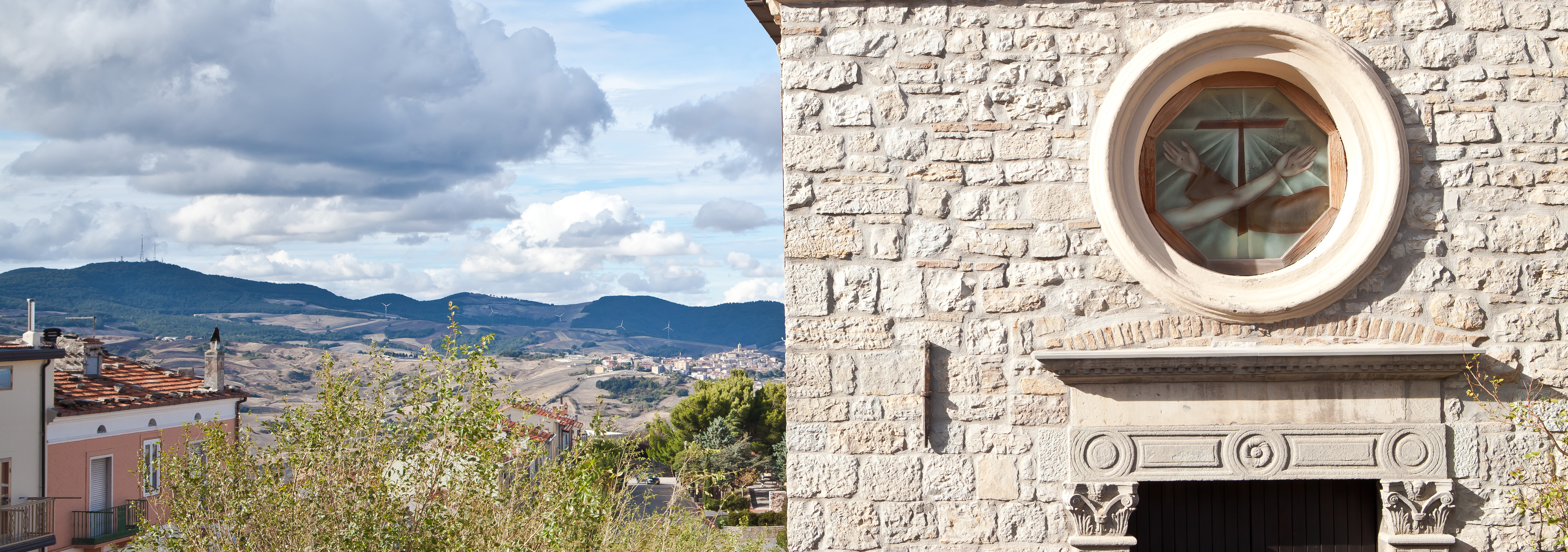 La vista migliore dell'edificio ce la offe la terrazza sovrastante Largo Ariella, da cui si inquadra la facciata della minuta chiesa, con alle spalle l'estensione urbanistica più recente di Volturino e la veduta in lontananza di Motta Montecorvino. La chiesa ha un un prospetto in pietra a vista dalle linee pulite, impreziosito da un piccolo portale in pietra, rialzato dal piano stradale tramite alcuni gradini; sovrasta l'ingresso un minuto rosone. Il tetto a capanna è invece sormontato da un campanile a vela. L’interno, lineare come l’esterno, custodisce un antico altare in marmo e alcune statue di San Francesco, San Giuseppe e San Pietro Apostolo, oltre all'antico stendardo della Confraternita del Rosario lavorato con ricami d’oro e d’argento e le due effige della Vergine.