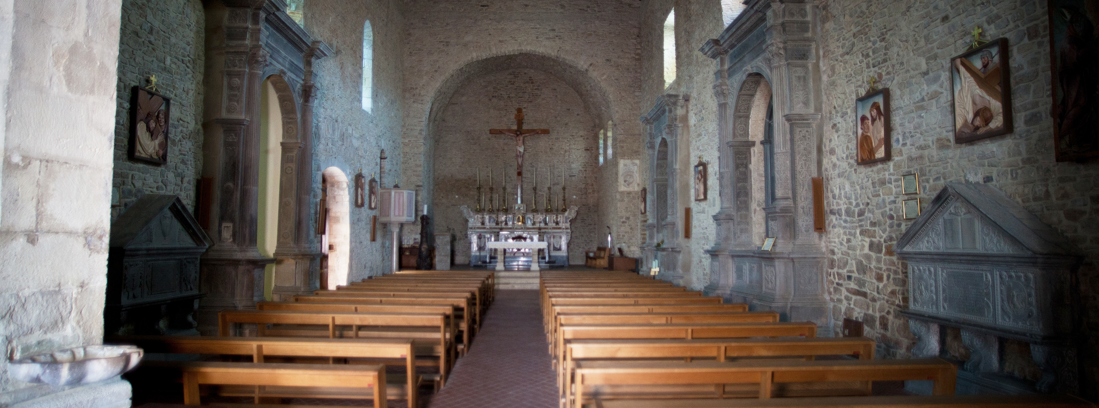 L’edificio sacro risale probabilmente al XII secolo, come testimonia il portale laterale, che originariamente ne costituiva l'ingresso, caratterizzato da triplice arco ogivale e bassorilievo dell'Agnus Dei.