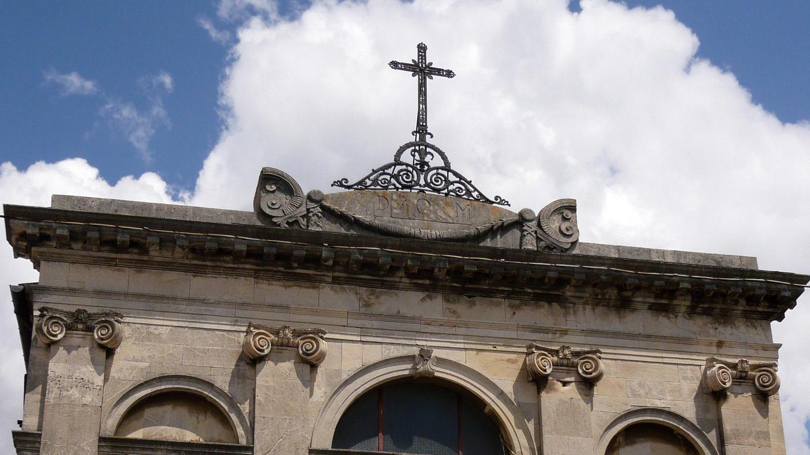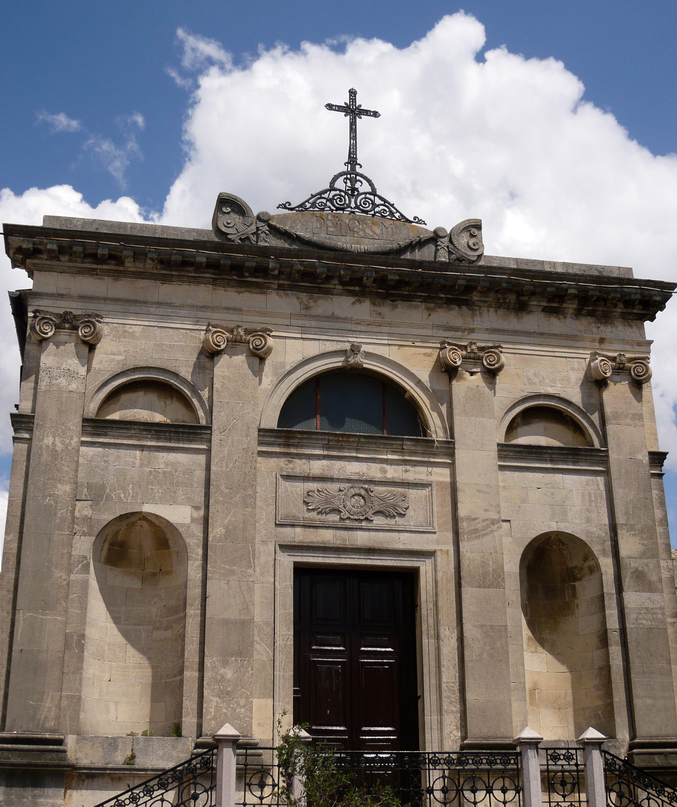 Detta anche "Chiesa dei Morti", in quanto un tempo ospitava la Confraternita della Buona Morte, l'edificio religioso possiede una cripta, che in passato veniva usata per le sepolture. La chiesa è caratterizzata da un bel prospetto in travertino a un solo ordine, con nicchie e paraste ioniche, e da un'ampia scalinata di accesso . Altri elementi caratterizzanti sono il campanile in pietra con punta arrotondata, la cella campanaria in mattoni rossi e il bassorilievo raffigurante un teschio sormontato da una croce.