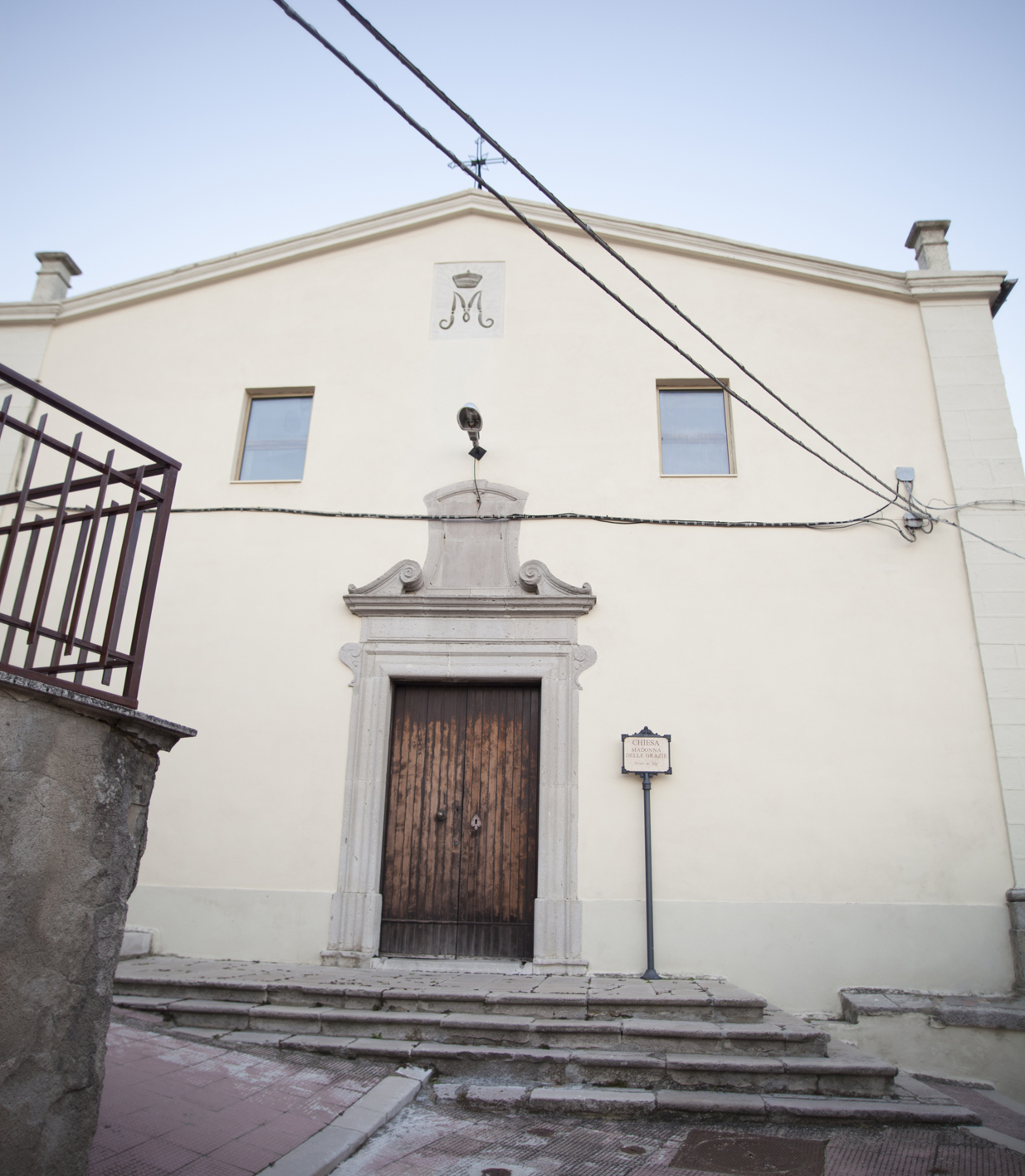 L'edificio religioso è di origine cinquecentesca e presenta una semplice facciata intonacata impreziosita da un portale lapideo, sulla cui sommità si trova un fastigio con volute, in stile tardo barocco, e quindi aggiunta successiva.