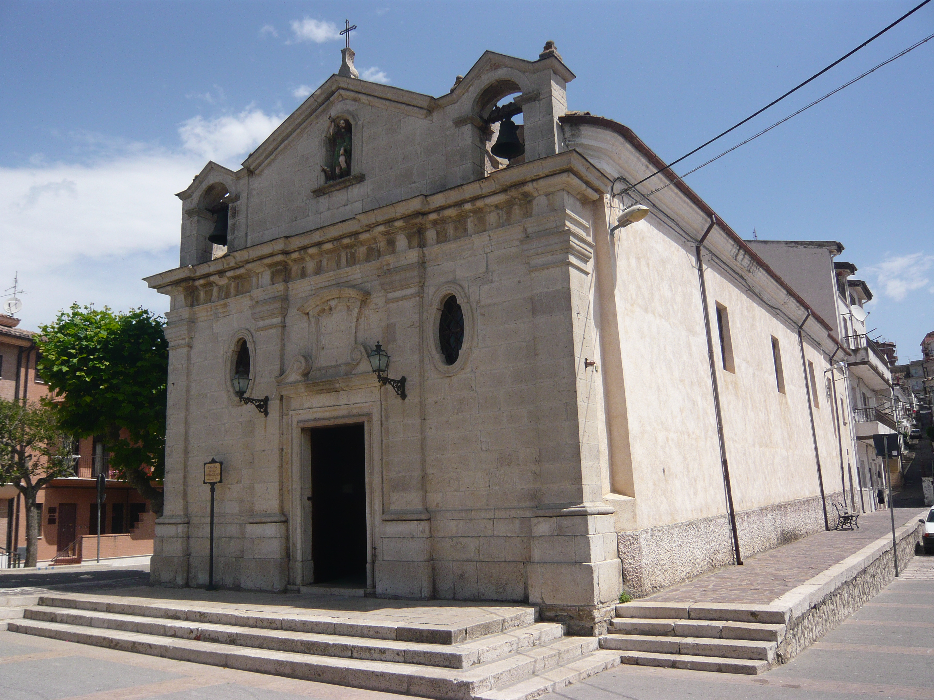 La graziosa chiesa sorge nella parte più recente del borgo e nello slargo che la Città a voluto dedicare alla sua più illustre figlia: la scrittrice Maria Teresa Di Lascia.