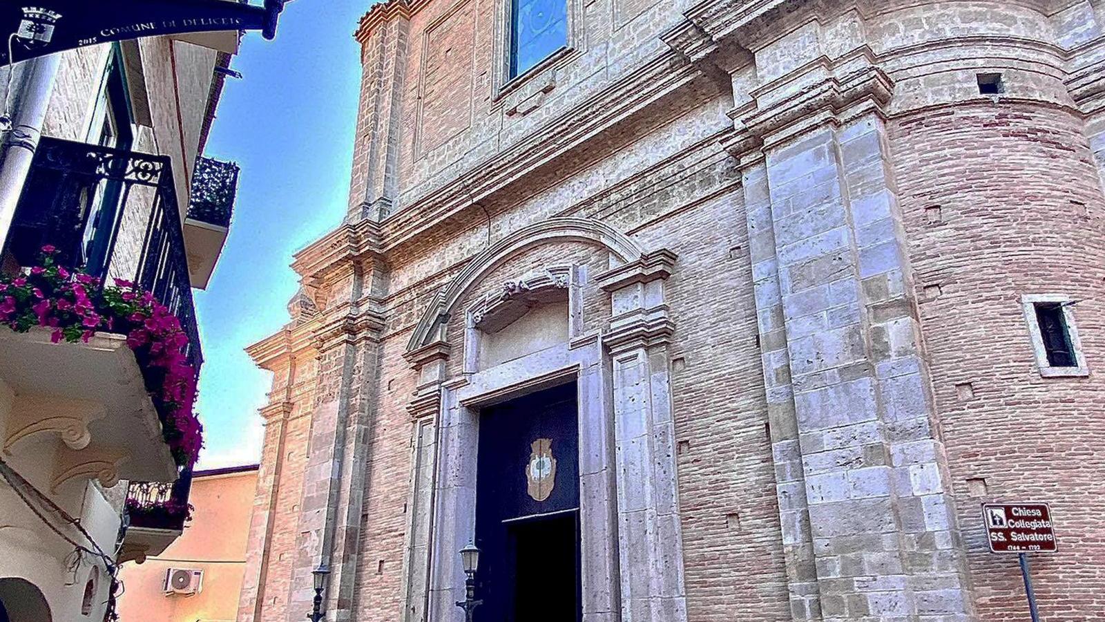 La Chiesa più antica di Deliceto risaliva a secolo VII e fu eretta, probabilmente in stile protoromanico, in onore del Santissimo Salvatore, per essere rimaneggiata più volte nei secoli; ma l'edificio attuale risale al 1744 ed è caratterizzato da un maestoso stile barocco con incursioni neoclassiche e dall'uso esterno della pietra viva. La facciata principale, a due ordini, si caratterizza per il dinamismo creato dall'aggetto della parte centrale, raccordata alle ali laterali mediante elementi curvilinei convessi. Su di essa domina un portale lapideo impreziosito da lesene e frontoni, rialzato rispetto al piano stradale, grazie ad una scalinata con due rampe simmetriche. In posizione ritirata, oltre il transetto, di eleva la torre campanaria in stile romanico. L'edificio ha pianta basilicale a croce latina con tre navate divise da pilastri ad arco a tutto sesto; l'incrocio tra navate e transetto è raccordato da una cupola, oltre la quale sorge l'abside, che ospita un bel coro ligneo.