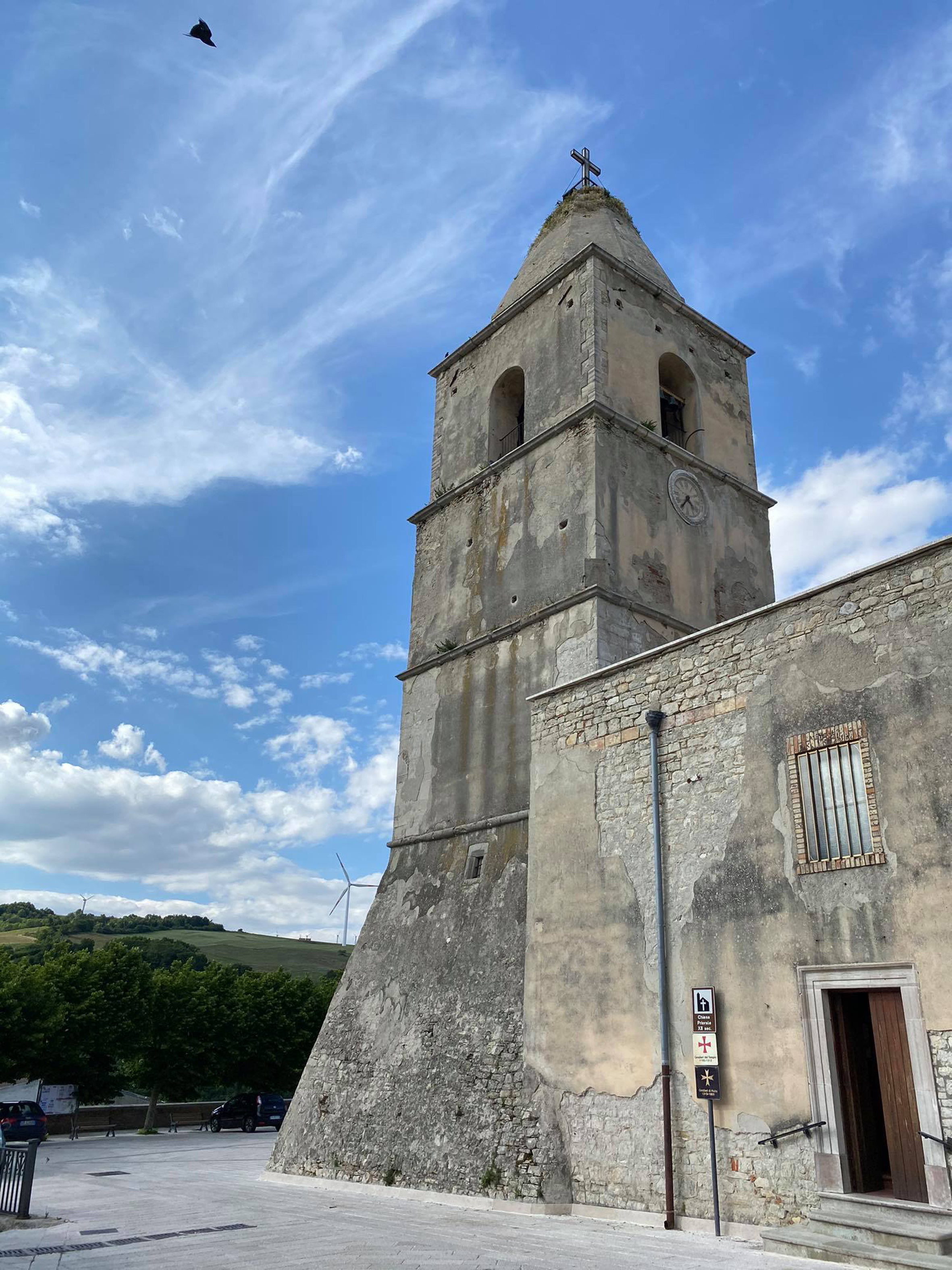 Agli inizi dell’800 tuttavia la chiesa era caduta nuovamente in rovina, tanto che furono necessari nuovi interventi. Alle spalle della Chiesa si trovava il Palazzo del Gran Priore e lateralmente le Carceri. L'imponente campanile ingloba al piano terra e al primo piano i resti di una delle due torri del Palazzo Priorale: sono ben visibili tracce dei templari nella base e dei Cavalieri di Malta nelle lastre di pietra con fregi incisi.