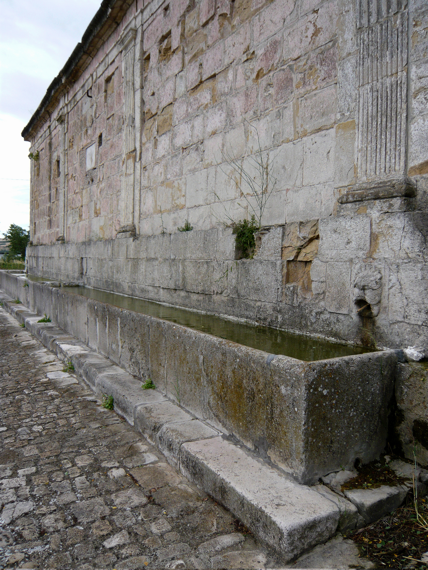 Pregevolmente strutturata come un grande parallelepipedo, presenta alla base delle lunghe vasche destinate all’abbeveramento dei cavalli ed alimentate da cannelle che sbucano da mascheroni. Restaurata nel 1836, e più recentemente nel 2009, la fontana era adornata con grande stemma del Regno delle Due Sicilie che purtroppo è stato trafugato da ignoti nel 2001.