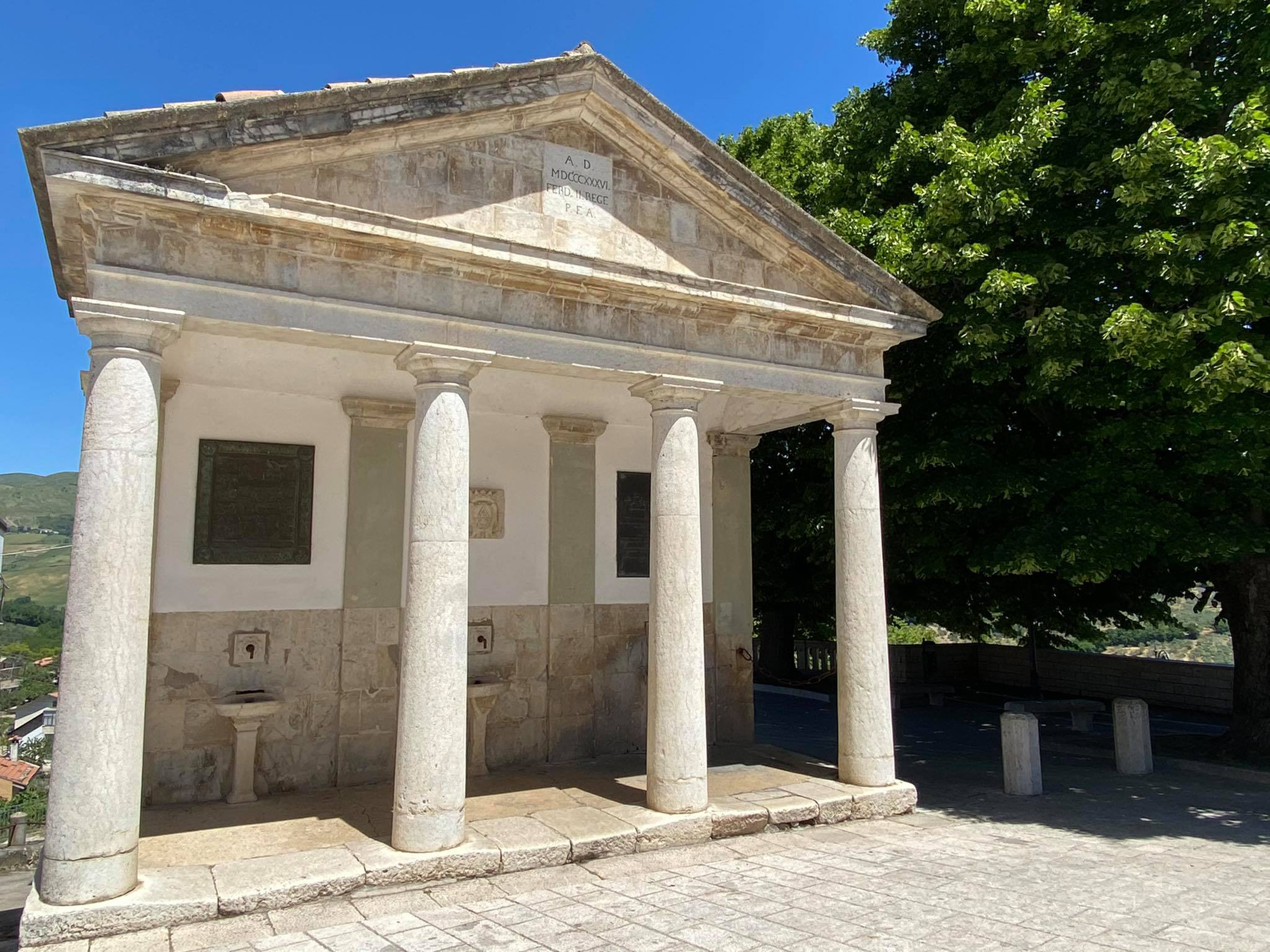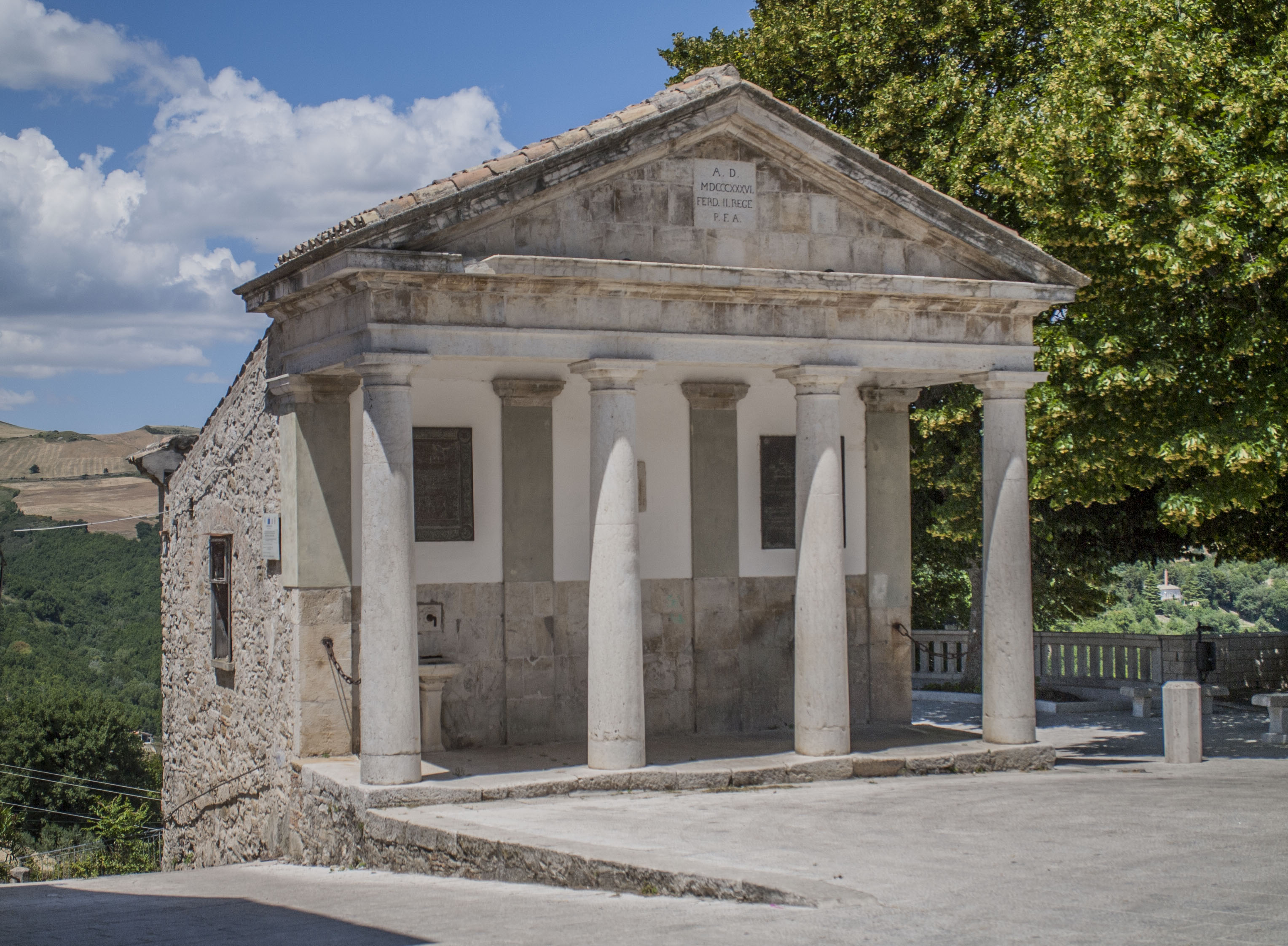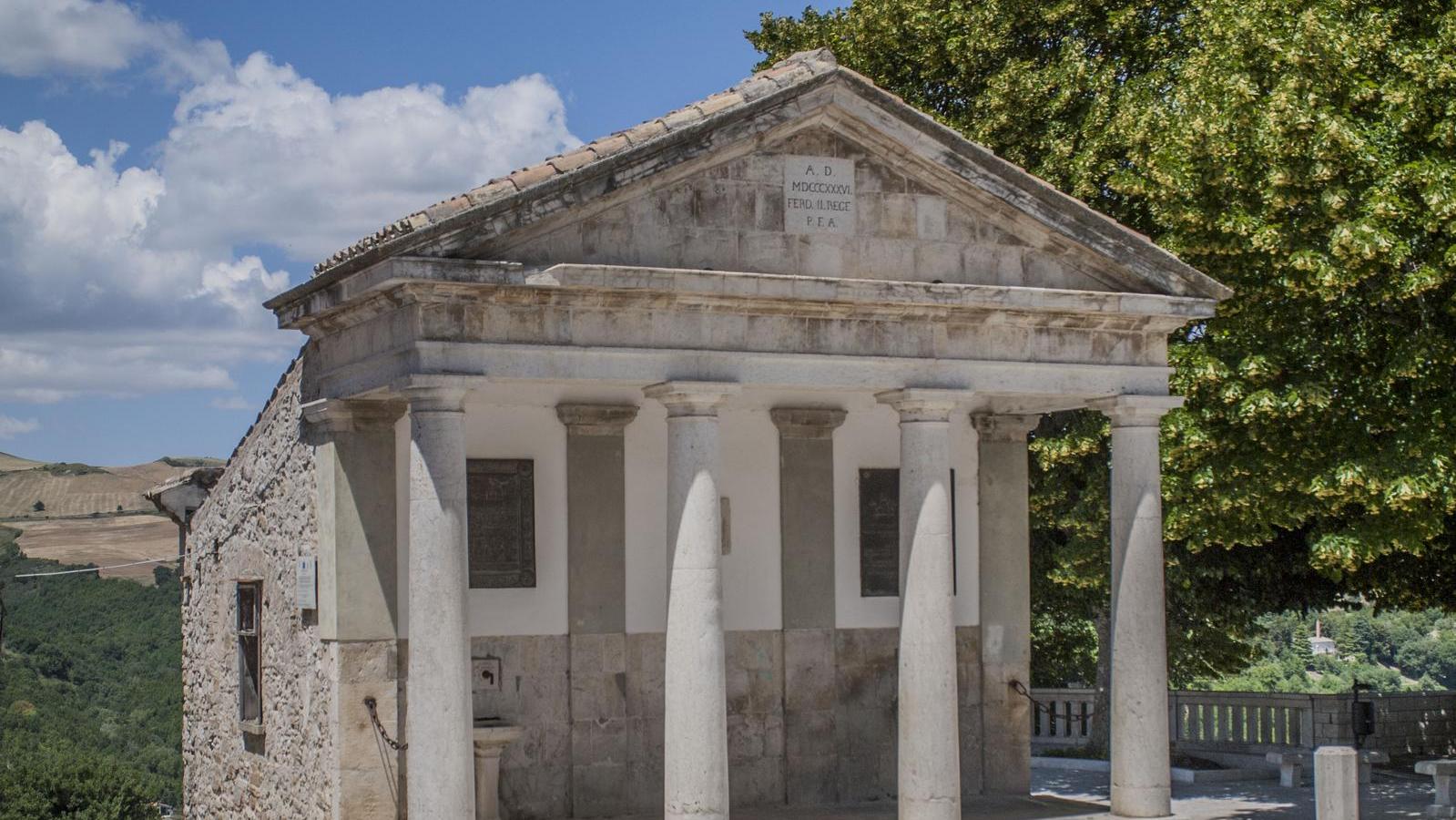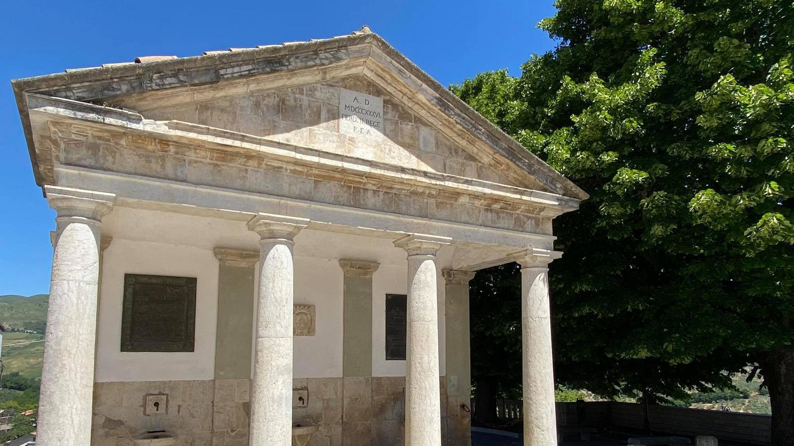 Una delle opere architettoniche che arredano la Piazza dell’Orologio (già Piazza Enrico Ferro) è la Fontana Monumentale, un piccolo gioiello in stile neoclassico edificata nel 1836 per volere di Ferdinando II di Borbone. Sorta come momento celebrativo dell’inizio del funzionamento dell’acquedotto locale, divenne un fulcro centrale nella vita quotidiana del borgo: qui le donne si recavano quotidianamente per l'approvvigionamento domestico di acqua.