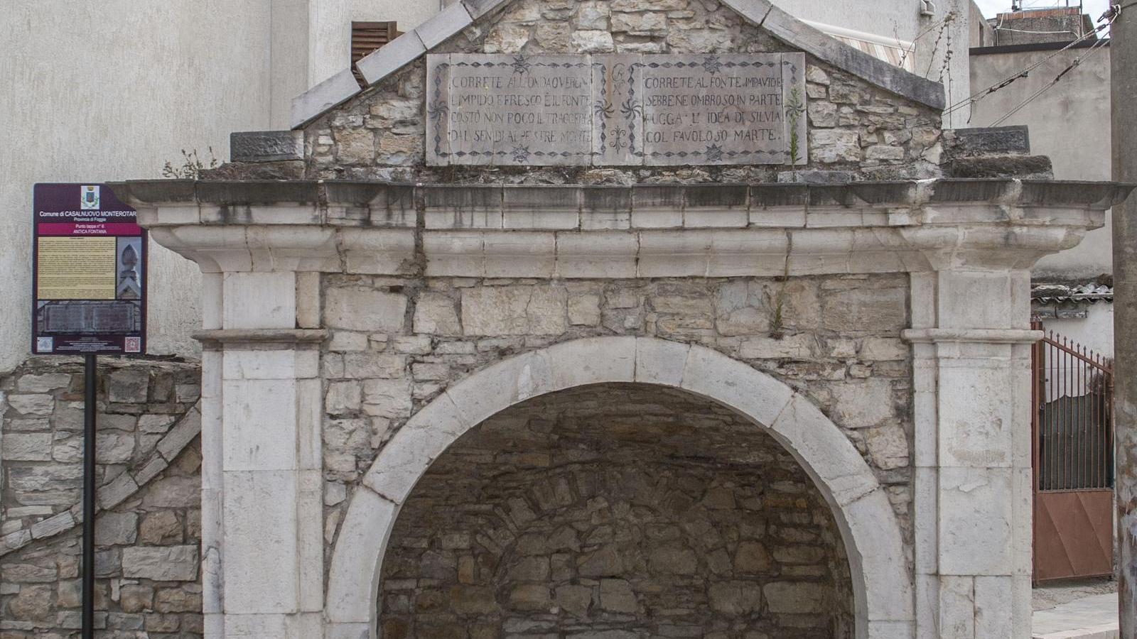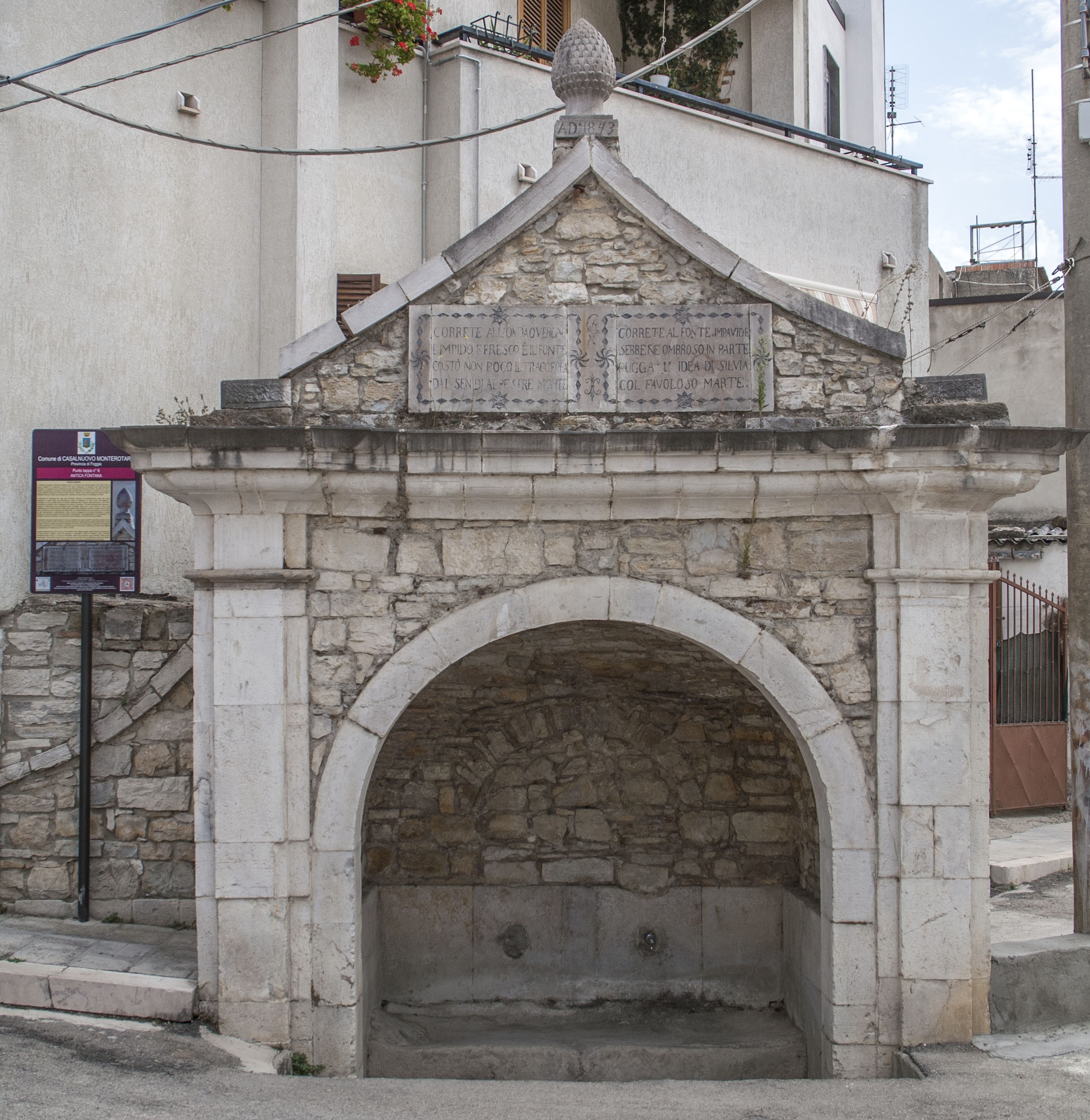 Il progetto della Fontana risale al 1824 è si deve al san severese Girolamo d'Amico, mentre la sua costruzione avvenne a cura degli artigiani Donato Minchillo e Raffaele Parente. La costruzione venne completata nel 1843. La fontana si presenta solida, protetta da una copertura con volta a botte e timpano dagli spioventi leggermente curvi. Sul timpano si trova un'epigrafe il cui testo è un poetico incitamento alla popolazione femminile all'utilizzo della fonte: "Correte all'onda o vergini, limpido e fresco è il fonte, costò non poco il traccerla dal sen di alpestre monte. Correte al fonte impavide, sebbene ombroso in parte fugga l'idea di Silvia col favoloso Marte". In sommità della copertura è sita una pigna decorativa (altre due, poste in corrispondenza della fine degli spioventi, furono trafugate). La struttura risulta sottoposta rispetto al piano stradale, ma con ogni probabilità in origine era sopraelevata. Questo notevole elemento di arredo urbano è stato per oltre un secolo il centro della vita sociale del borgo, fino a quando l'avvento dell'acqua nelle abitazioni cambiò le abitudini degli abitanti del borgo.
