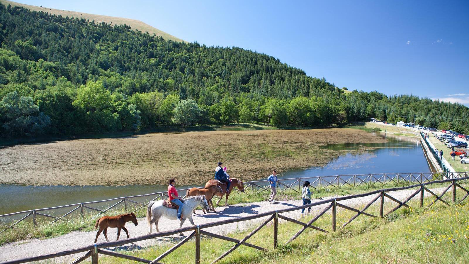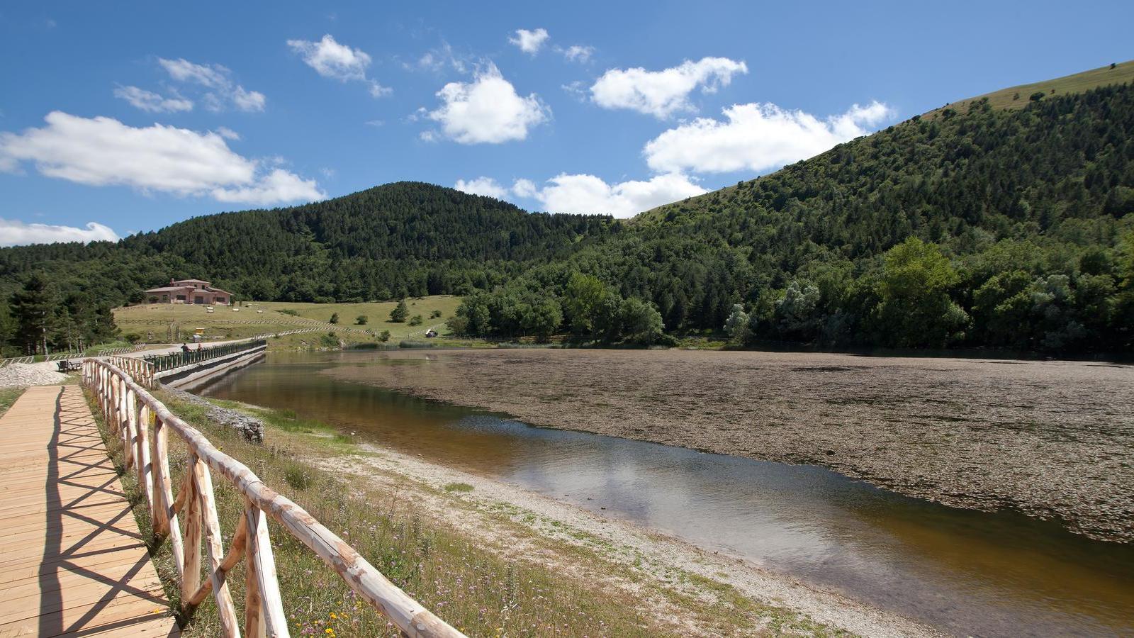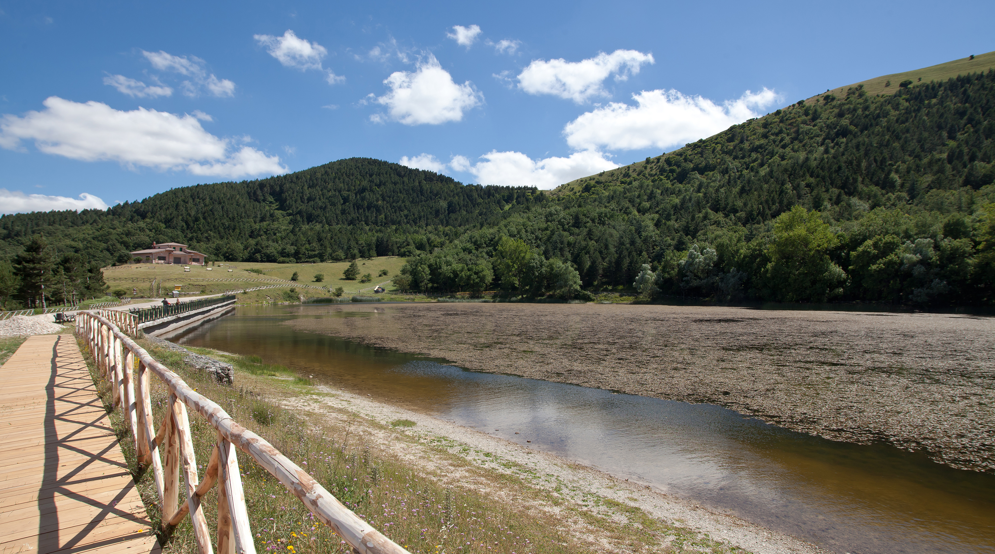 Esteso per circa 40.000 metri quadrati, il Lago Pescara ha una profondità massima di 6 metri. Privo di emissari naturali, le sue acque sono alimentate da sorgenti e da ruscelli formatisi dopo le precipitazioni e dopo lo scioglimento delle nevi.