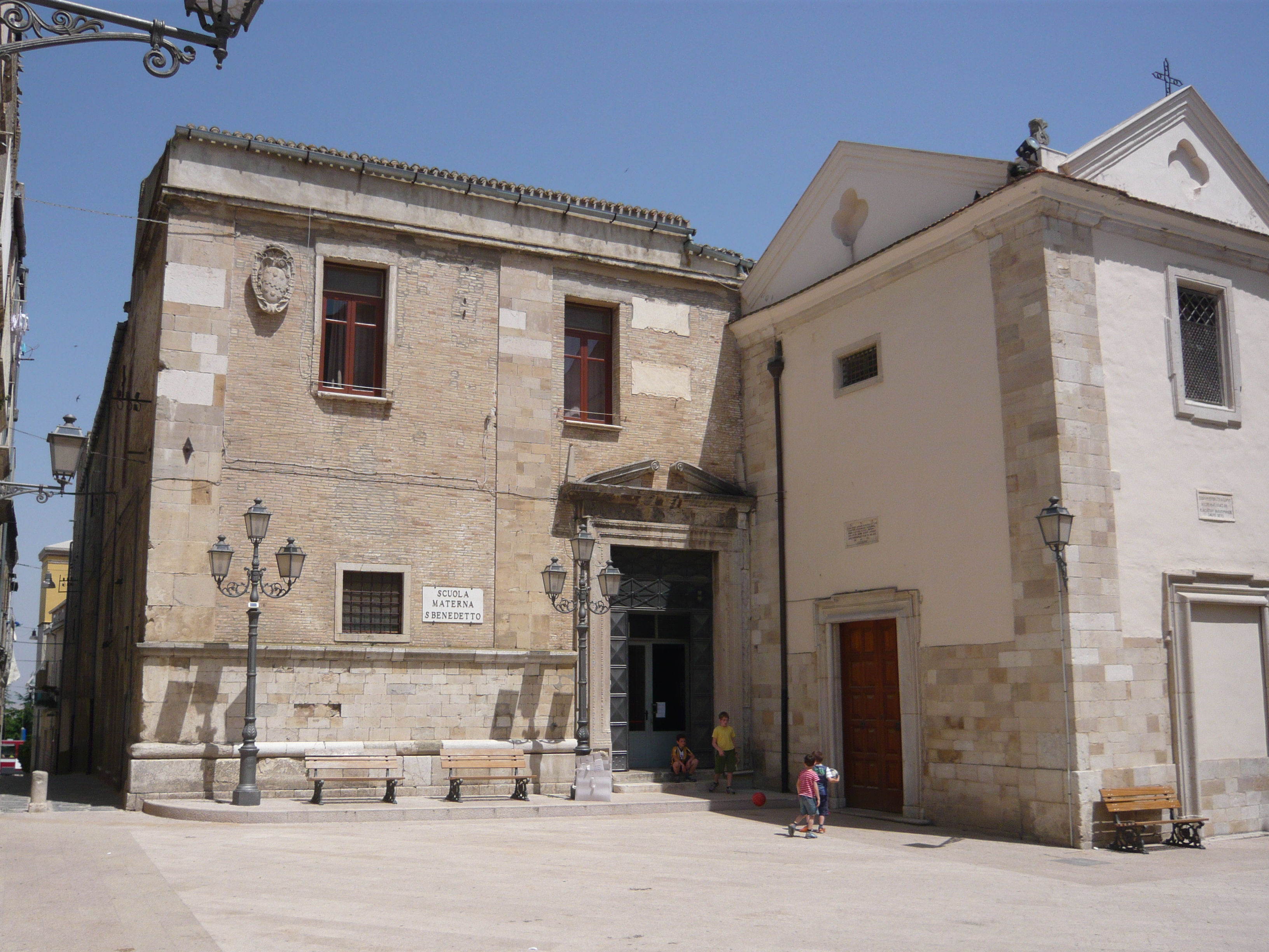 Il Convento di San Benedetto venne edificato nel 1605 per volontà del vescovo Giacomo Aldobrandini, per ospitare le sorelle benedettine. Al suo interno sono ambienti degni di nota la Cripta che custodisce l’altare maggiore, la balaustrata barocca che caratterizzava un tempo l'ingresso principale della Cattedrale e una tela grandissima detta Madonna del Rosario di scuola fiamminga; il chiostro invece ospita una pavimentazione in opus spicatum rinvenuta in occasione di alcuni scavi per la costruzione di un palazzo. I locali dell'ex convento offrono dettagli interessantissimi, come le porte in noce intagliate in gusto barocco che permettono l’ingresso alla chiesa dell'Addolorata (già Chiesa di San Benedetto).