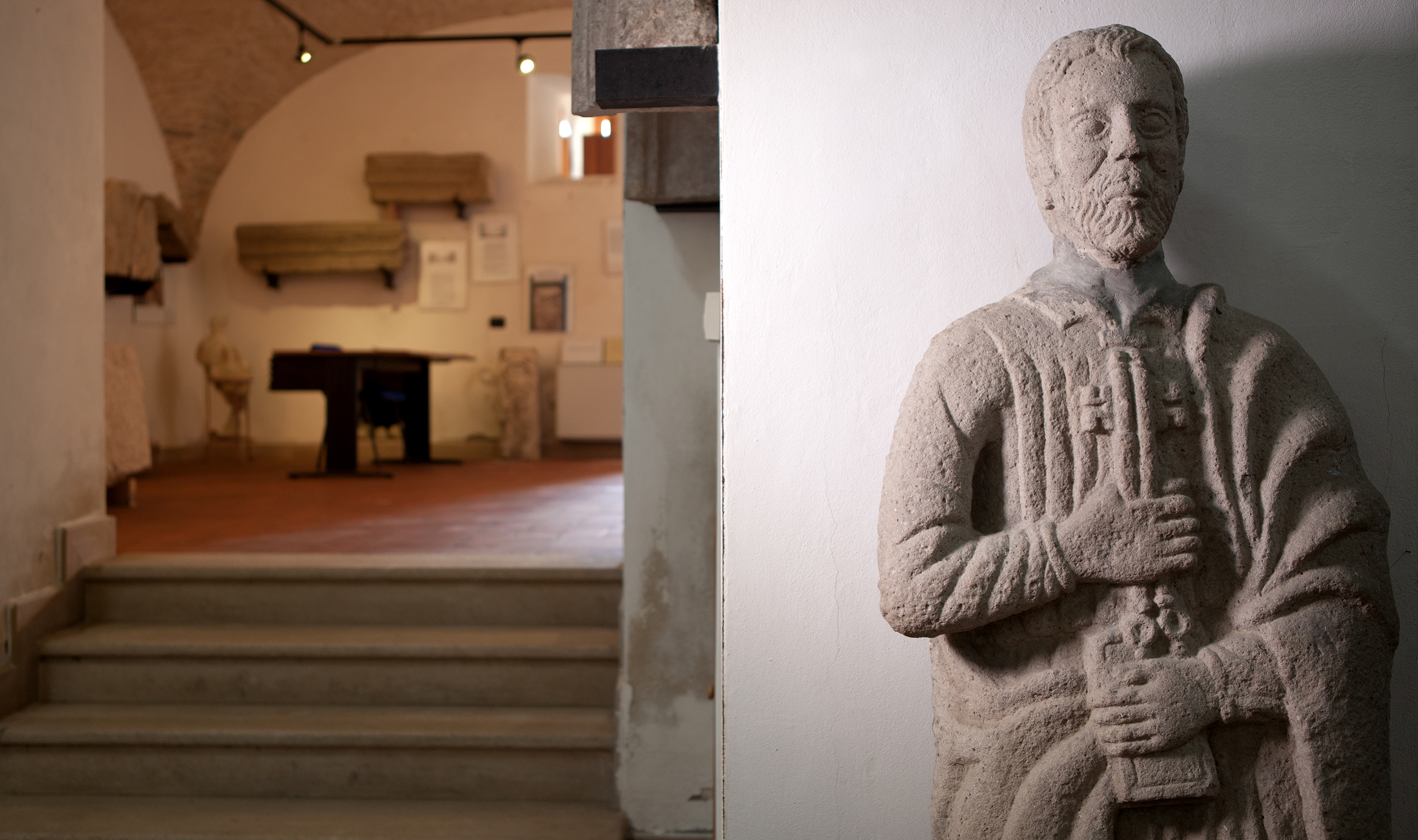 La collezione archeologica classica è costituita da steli, cippi, vasi, statuette e utensili. Tra i reperti di età medievale notevoli le due statue dei Santi Pietro e Paolo di epoca bizantina, provenienti dalla distrutta Chiesa di Rione Fossi.