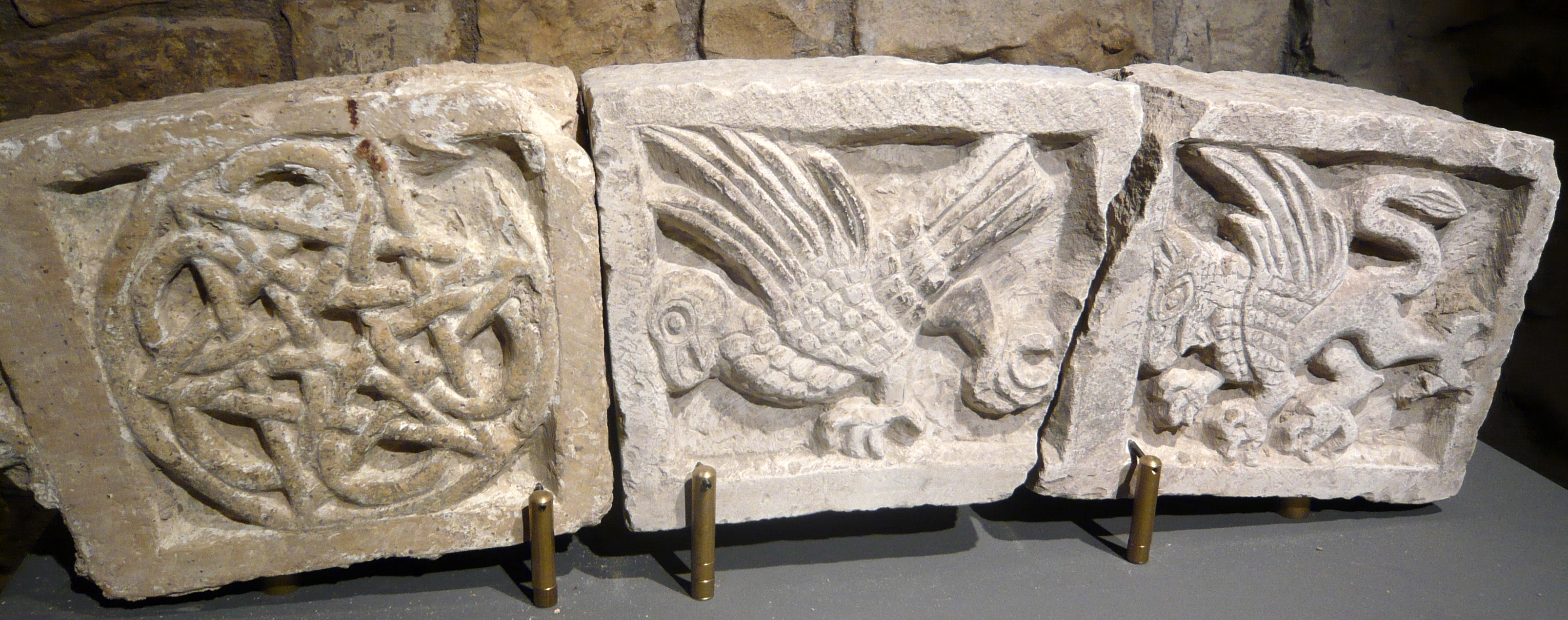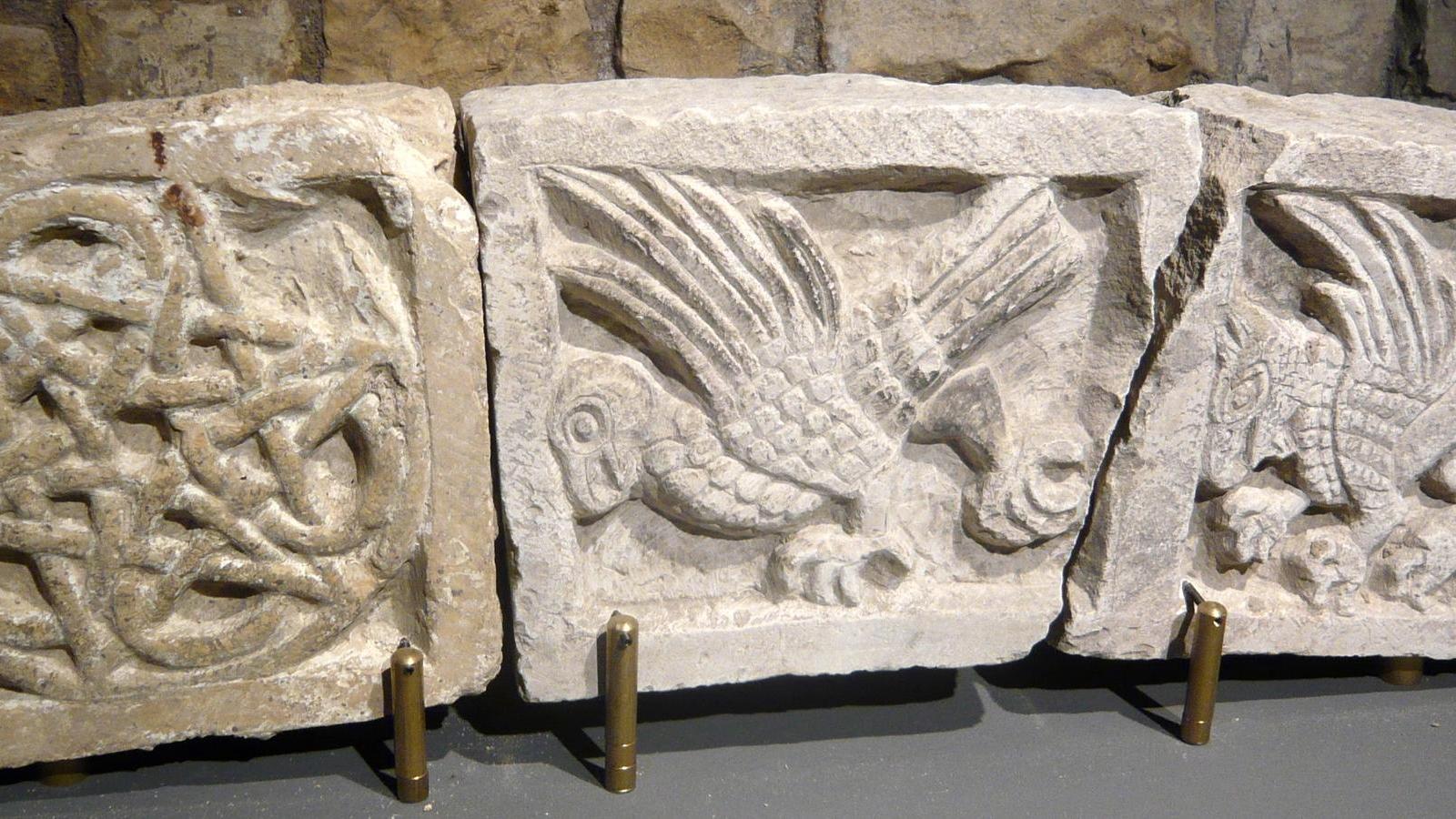 Tra i reperti più notevoli: una statua acefala con veste a drappi ondulati, una macina, un imponente otre in terracotta, e varie epigrafi; nonché i resti della lastra sepolcrale dell'Abate Pietro, i conci di un arco con scolpiti una stella, un'aquila e un grifone. Curiosa la presenza di conci simili a questi, e quindi presumibilmente aventi la stessa origine, all'esterno dell'ex monastero dell'Abbazia. E' infatti possibile notare sull'ingresso della foresteria un concio raffigurante l'agnus dei e più in basso altri su cui sono scolpiti un drago e un giglio.