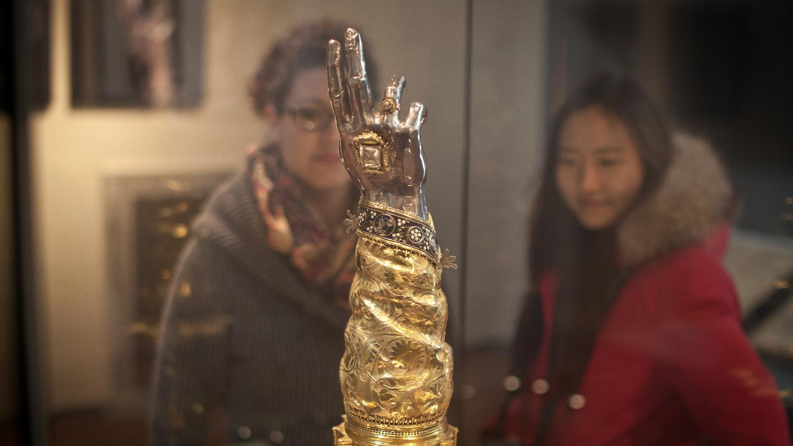 Oggetti di notevole pregio artistico sono esposti accanto a paramenti sacri, gioielli e reliquiari preziosissimi. Tra le opere di maggior prestigio qui conservate vi sono: due crocifissi, uno in rame su supporto ligneo (XIV-XV sec.) e l’altro, sempre su legno, in argento sbalzato e cesellato con pietre incastonate sui bracci, appartenuto al vescovo Tolosa; quest'ultimo presenta alla base un'ampolla di cristallo che custodisce una delle Sacre Spine della corona che cinse il capo di Gesù Cristo; un ostensorio a piramide in rame dorato e smalti del XV sec. e Il braccio reliquario in argento di San Marco da Eca, entrambi attribuiti a Pietro Vannini; un calice in bronzo dorato, rifinito con smalti, e una patena in bronzo, decorata a sbalzo, entrambi risalenti alla prima metà del XIV secolo; numerosi capi di vestiario appartenuti ai vescovi della Diocesi di Bovino (una mitra in broccato ricamato con fili d’oro, d’argento e paillettes dorate, di fabbrica napoletana della seconda metà del XVIII sec.; una pianeta in seta verde e intarsi in seta policroma della fine del XVI sec.; dello stesso periodo, un piviale in seta con ricami verdi su fondo giallo, di scuola veneziana); busti lignei policromi, che custodiscono le reliquie dei santi rappresentati e le artistiche statue di Sant’Andrea e dell’Arcangelo Michele, del sec. XVII.