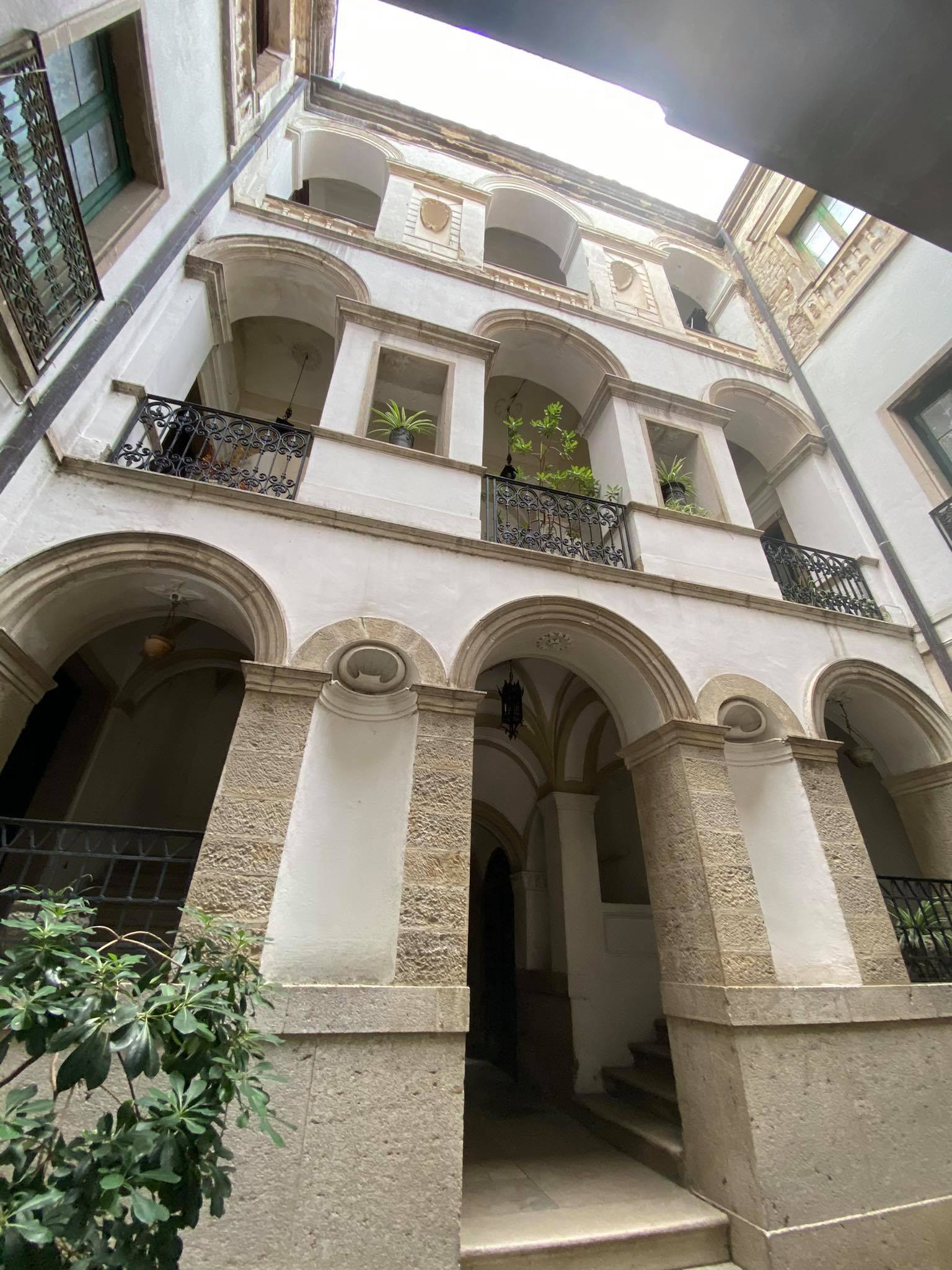 L'enorme edificio presenta oggi un prospetto di impronta neoclassica su tre livelli, caratterizzato da due ordini: al primo piano sono presenti semicolonne ioniche, al secondo paraste composite. L’interno del palazzo, di proprietà privata, non è oggi visitabile. Tuttavia sovente il portone dell'ala destra viene lasciato aperto, lasciando scorgere al passante la bella corte interna con una magnifica scalinata ad archi.