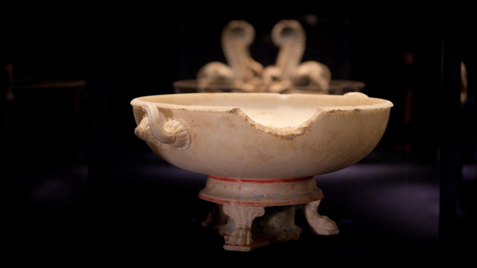 Oltre ai mirabili Grifoni qui è esposta una serie di 8 vasi, sempre in marmo, di varie dimensioni, tra i quali spicca un cratere, un tempo colorato sul quale è possibile notare le sagome più chiare lasciate dalle foglie d’oro, non più presenti. Ma a rubare l'attenzione più di ogni altra opera d'arte è un podanipter, ovvero un bacino rituale per il lavaggio dei piedi con raffigurazioni policrome.
