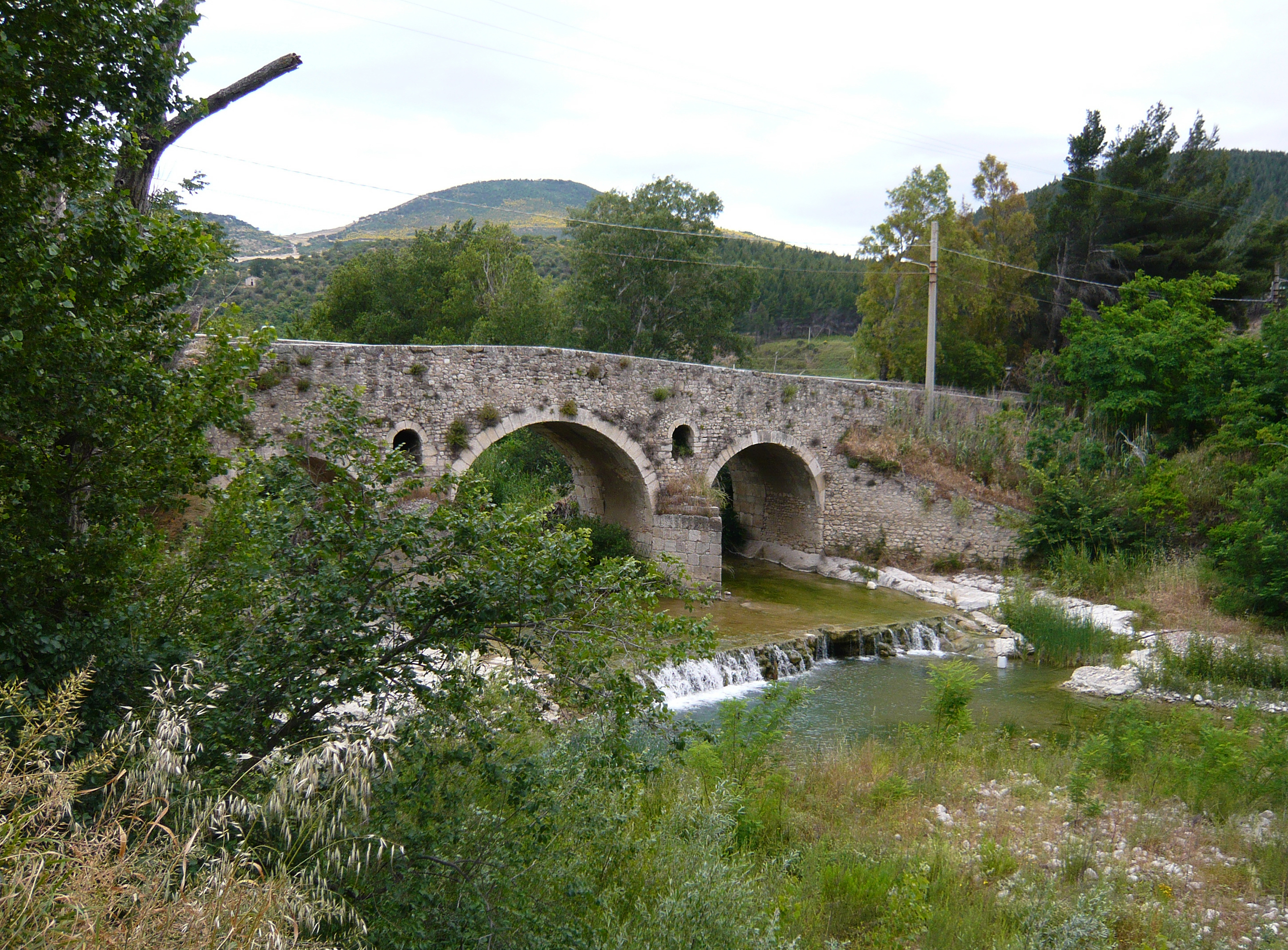 La struttura originale a pali in castagno risale all’epoca romana, e subì un crollo parziale a seguito del terremoto del 1627. La versione attuale venne costruita all'epoca del Duca Giovanni Guevara (1602-1631) per superare il fiume Cervaro e collegare più agevolmente le contrade più interne e montagnose di Bovino alla strada regia che da Napoli portava alle Puglie, oggi statale 90. Il ponte è costituito da una struttura simmetrica di 3 archi a tutto sesto e a generatrice circolare. Il piano viabile, è delimitato da parapetti su entrambi i lati con un andamento che segue quello dei bordi della carreggiata. Per la sua realizzazione, sono stati utilizzati conci di pietra, ciottoli di fiume, malta pozzolanica impastata con cemento pozzolanico, calce e sabbia di cava o fluviale e materiale litico. La parte centrale del ponte è tutt’ora fondata su palafitte di castagno.