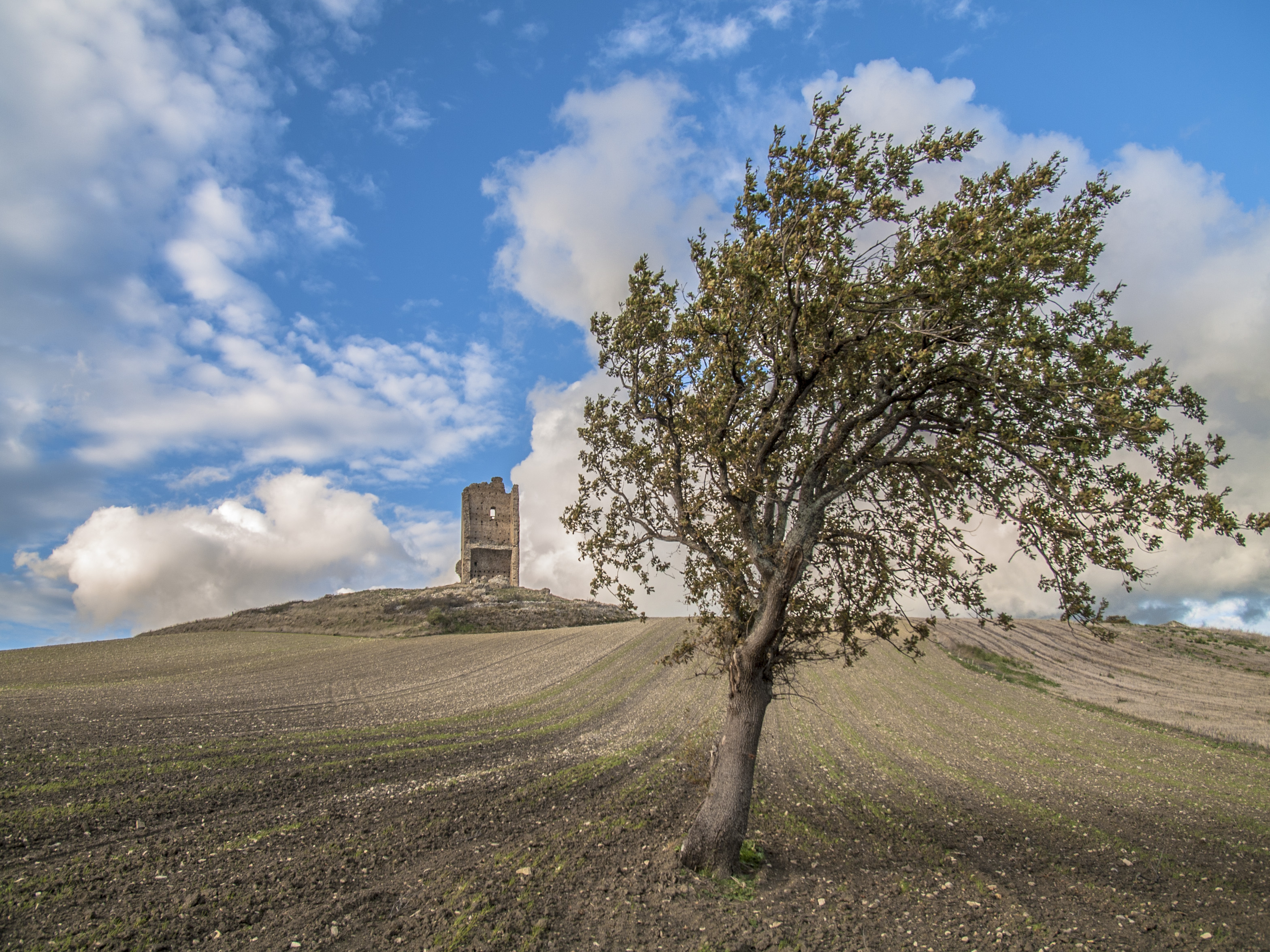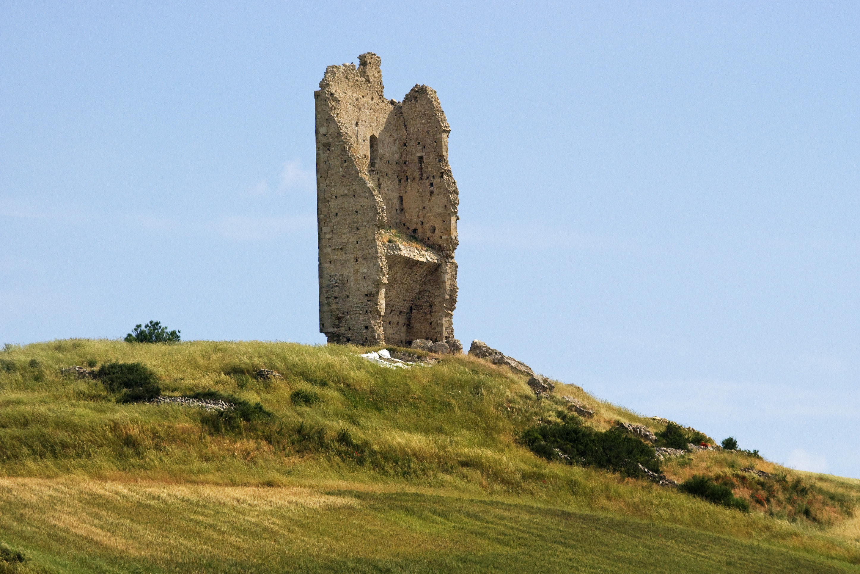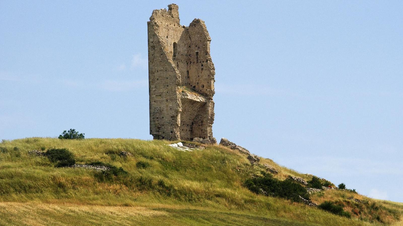 Si scorge da lontano il rudere di una splendida torre che si staglia sulla sommità della collina: è la Sedia del Diavolo.