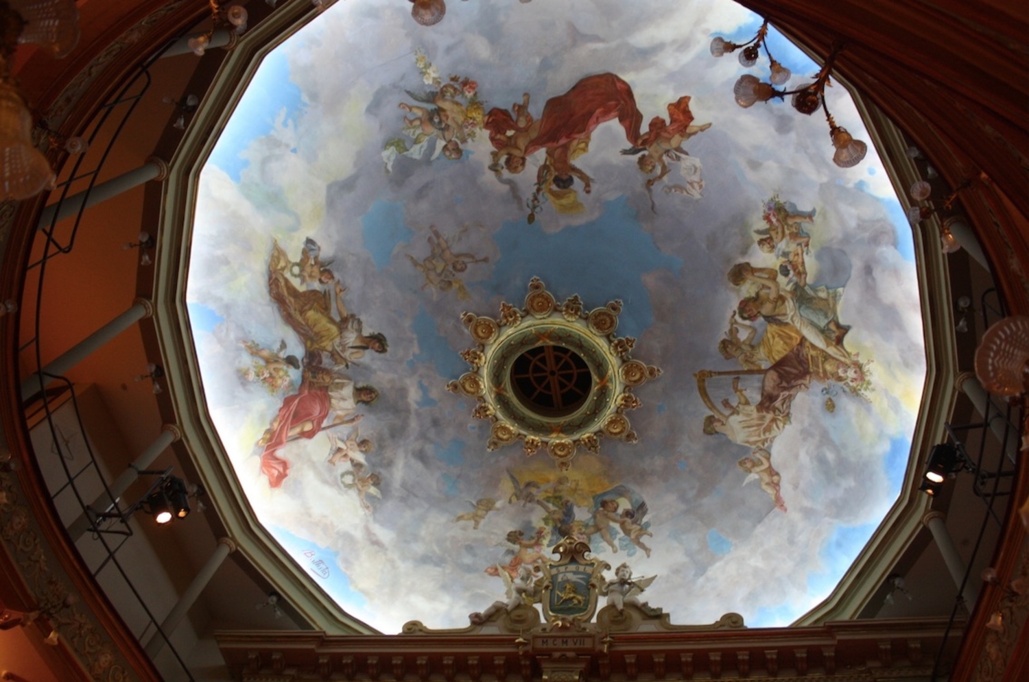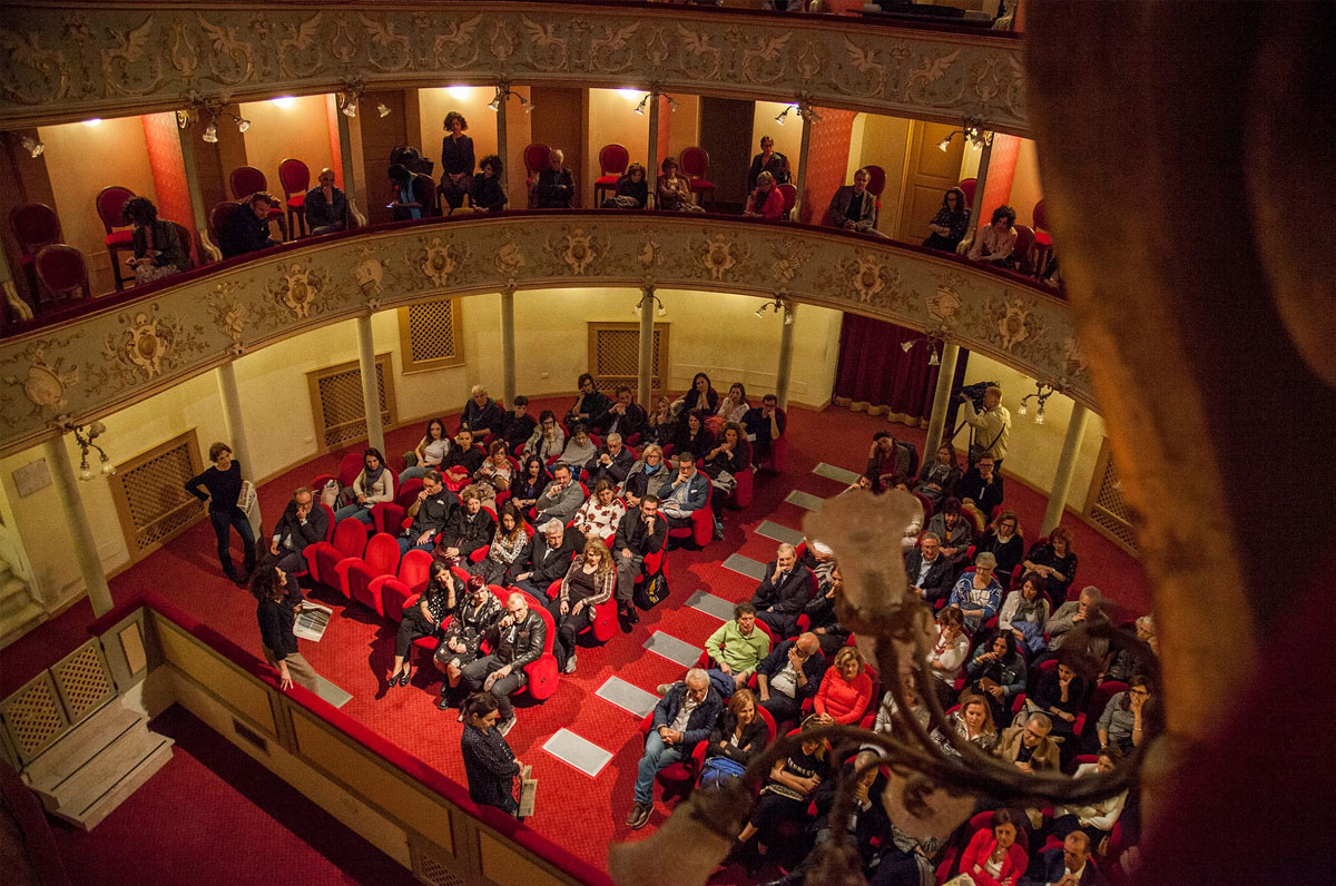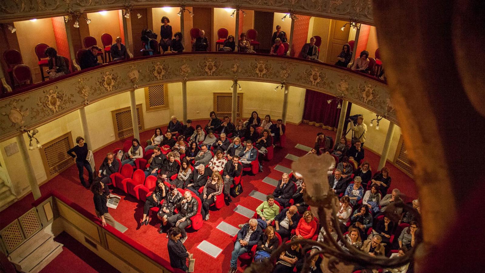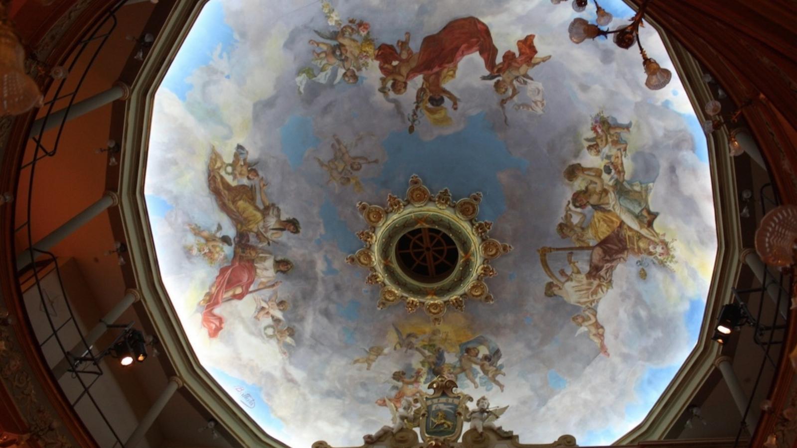 Stucchi e statue arricchirono la sala spettatori, con una volta affrescata di gusto neoclassico che raffigura scene di muse.