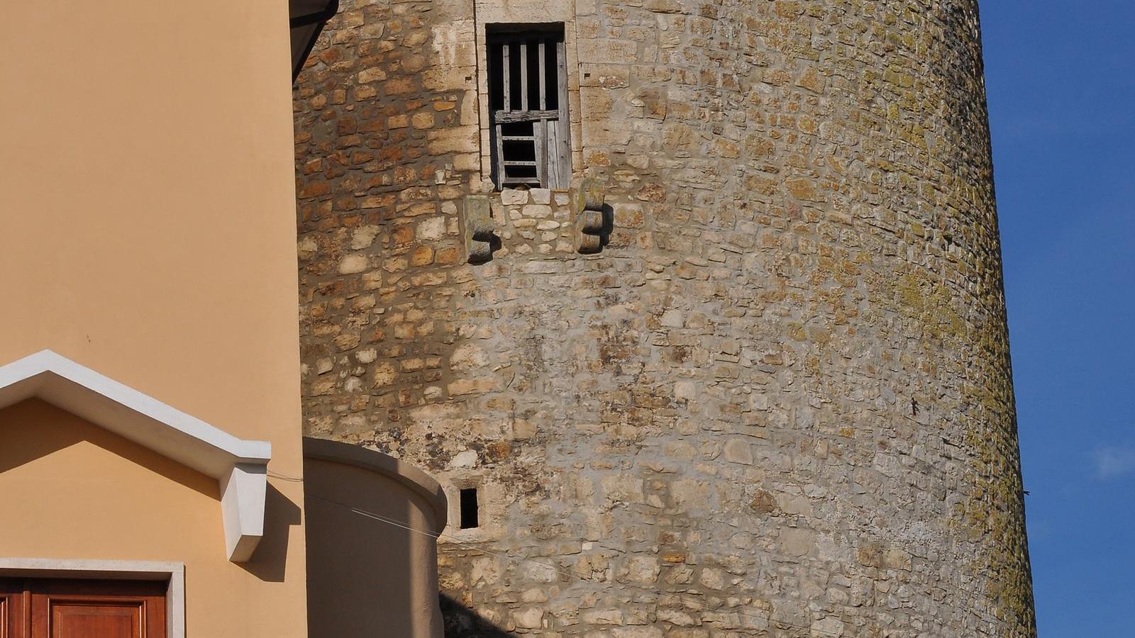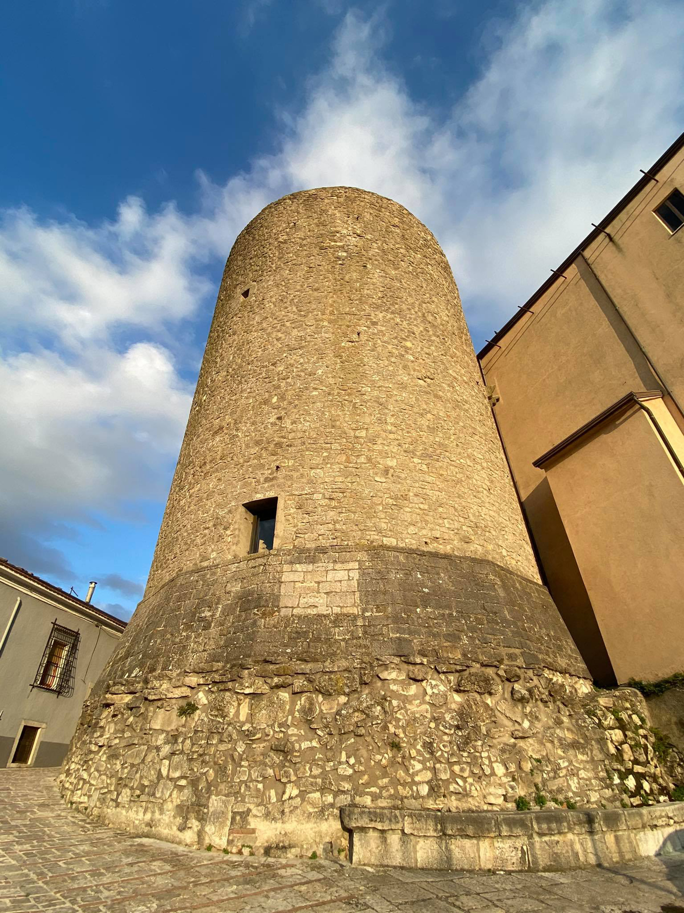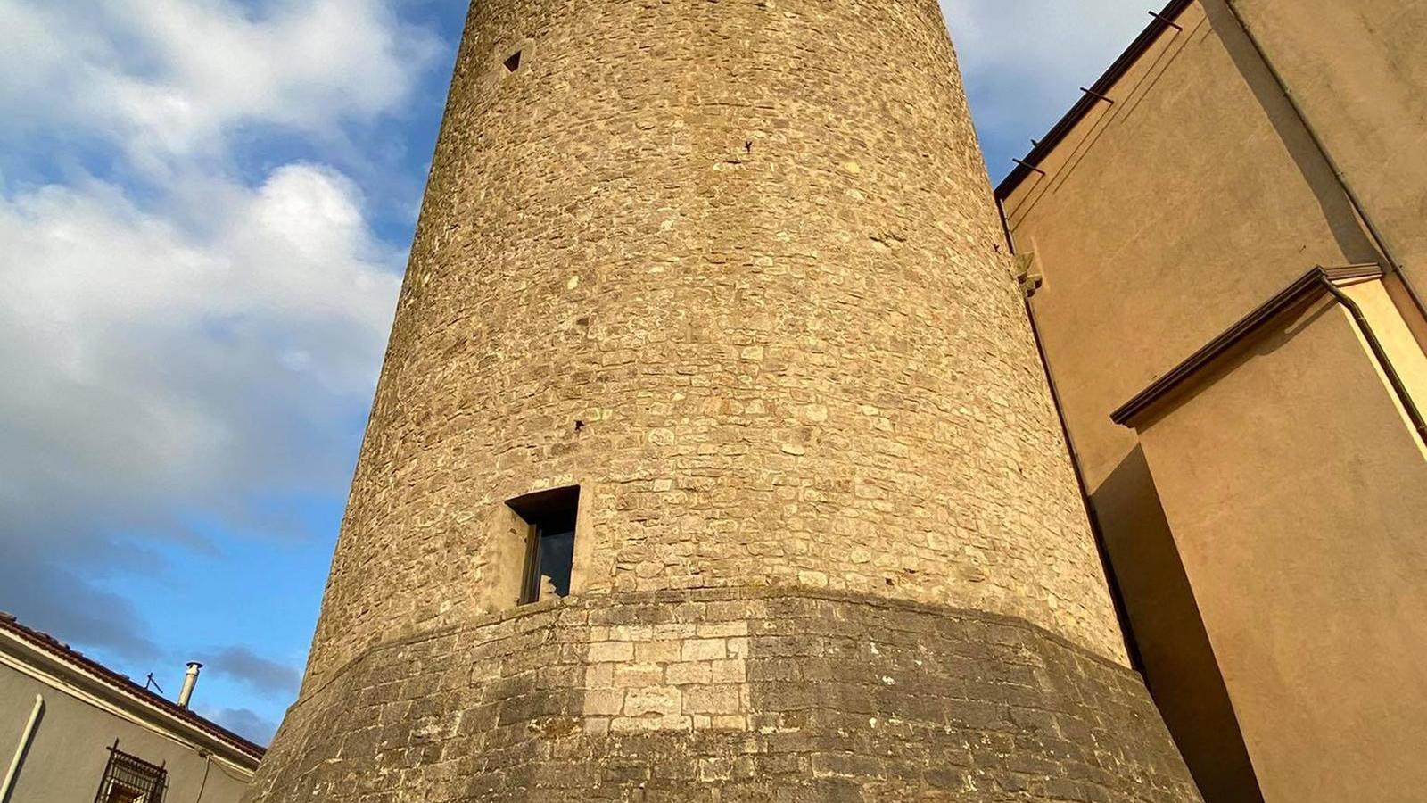 Alta 20 metri e poggiante su una base poligonale, da cui si eleva il solido cilindro alto 16 metri, la torre ha un diametro interno è di 6,20 metri e mura circolari spesse 2,50 metri. Essa si componeva di tre livelli, dei quali oggi sono sopravvissuti due. Infatti il terzo piano della Torre fu demolito ed i suoi cornicioni usati nella fabbrica del cosiddetto del Palazzo del Principe. Il primo livello, alto circa 14 metri, è posto su un piano elevato rispetto alla quota stradale e non presentava in origine alcun accesso da strada. Alla Torre si accedeva mediante scala pioli e attraverso la porta finestra nel secondo piano, alto circa 4 metri. Da qui dunque, attraverso una botola e una corda fissata ad un anello di ferro, si raggiungeva il piano sottostante, destinato a carceri e dotato solo di piccole feritoie per consentirne la scarsa illuminazione e il ricambio d'aria. Oggi una scala a pioli attraversa la volta a botte che separa i due livelli, permettendo l’accesso al secondo piano. Da qui grazie ad una scala chiocciola in muratura si può raggiungere il tetto da cui si gode di una preziosa veduta della Valle Maggiore. ù