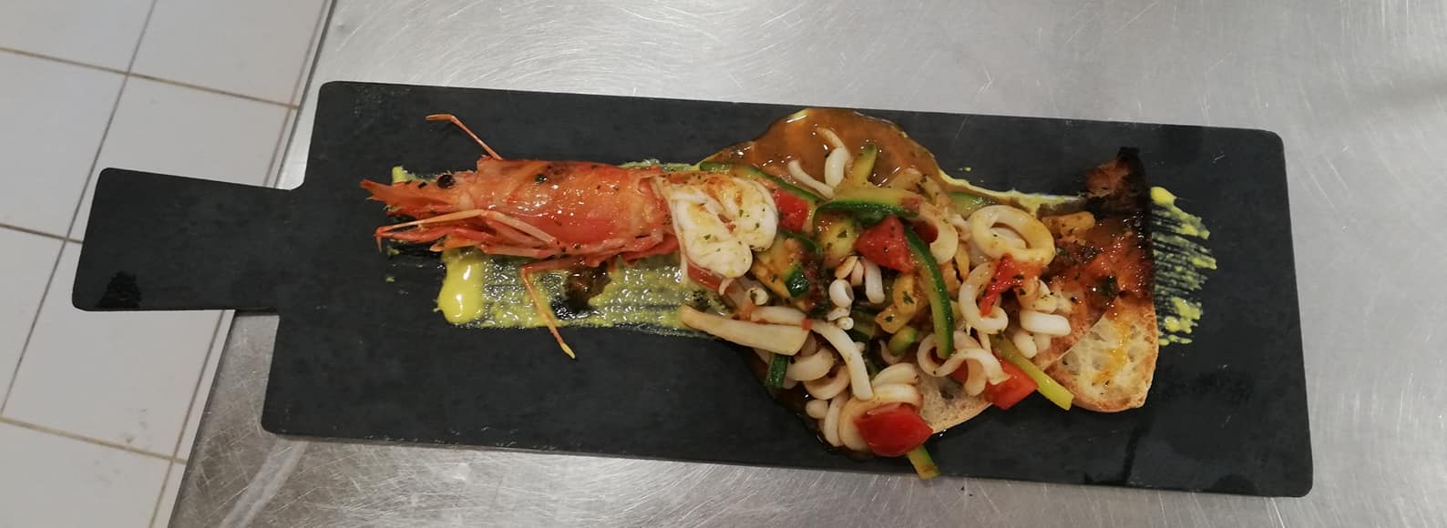 Propone ai clienti piatti ricercati nel gusto e nell'aspetto della cucina fusion, nouvelle cuisine, a base di pesce.