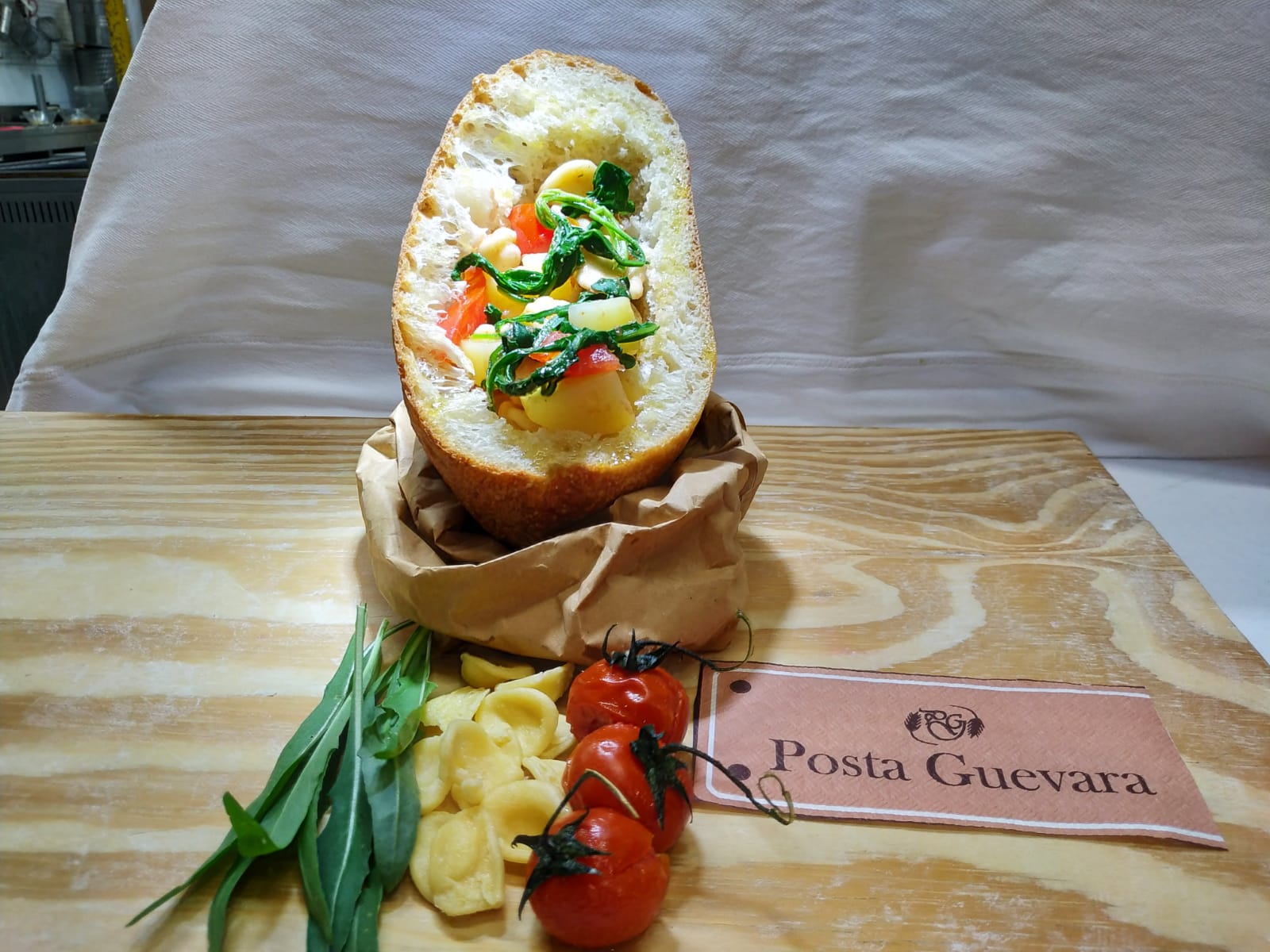 Fra dolci pendii e cieli tersi, nel pianoro che si innesta tra il Tavoliere delle Puglie e i rilievi dei monti dauni, si erge Posta Guevara, nell’originario tenimento della famiglia Guevara, duchi di Bovino, in un ambiente ricco di storia, bellezze architettoniche e tradizioni millenarie. Posta Guevara nasce all’alba del nuovo millennio, evoluzione dell’azienda agricola di famiglia, con una missione speciale: rappresentare un luogo ove memoria e prodotti del territorio si fondessero per far rivivere ai propri ospiti sapori e tradizioni dimenticati. Dal 2008 Posta Guevara è riconosciuta prima Locanda Rurale Europea di Puglia; alla Locanda, aperta tutti i giorni, si può gustare una cucina tipica rivisitata: il pane con lievito madre cotto a legna, la pasta fatta in casa, in una formula che unisce tradizione e innovazione. Tra le tipicità spiccano il pane e la pasta di grano arso, le carni e i salumi di maiale nero, i formaggi dei monti dauni, le confetture di produzione. Posta Guevara è una Scuola di cucina e Masseria didattica riconosciuta dalla Regione Puglia. Organizza corsi anche di carattere professionale e laboratori didattici rivolti alle scuole di qualsiasi ordine e grado, con particolare riguardo al “Magico mondo delle farine” e dei “Lieviti naturali”. Il complesso, totalmente immerso nella natura, con i suoi ampi spazi a giardino e orto, dispone di svariati ambienti destinati alla ristorazione, camere, laboratori didattici, sala conferenze e meeting. Esporta la cultura e la cucina pugliese nei contesti nazionali ed internazionali. Ha ricevuto numerosi premi e riconoscimenti anche attraverso la partecipazione a programmi delle più importanti reti televisive (Rai 1, Rai 3, Mela verde).
